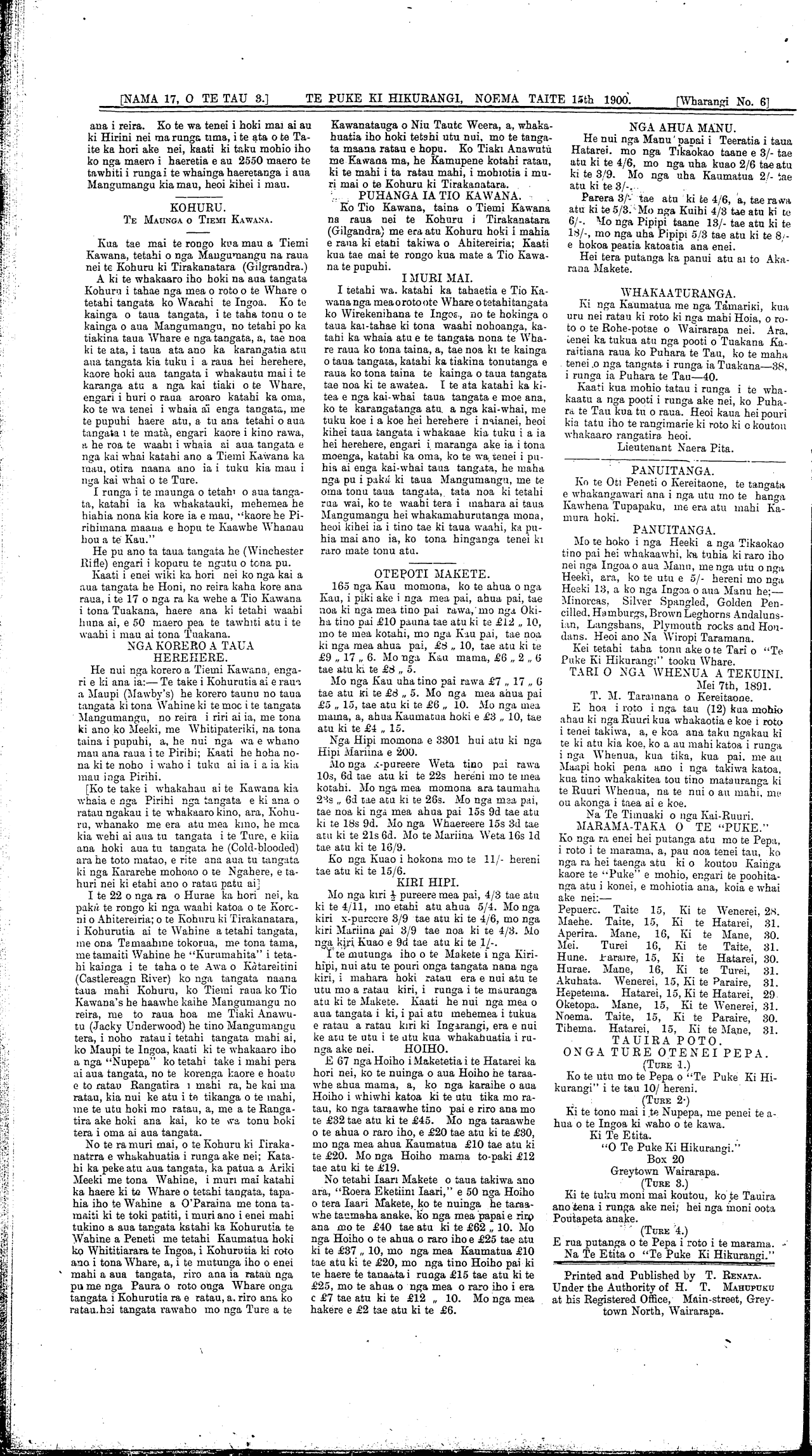 Te Puke Ki Hikurangi 1897-1913: Volume 3, Number 17. 15 November 1900 |