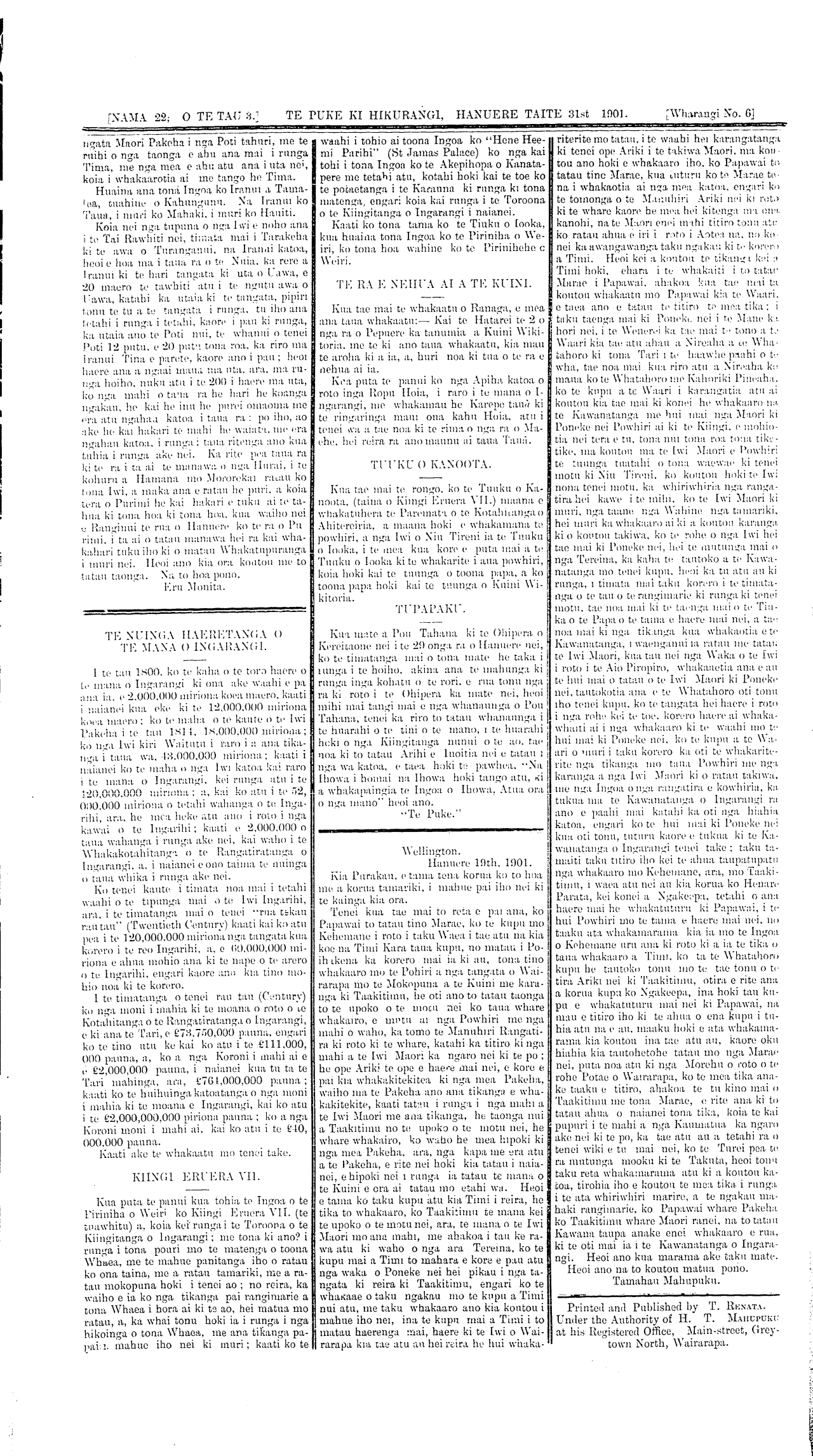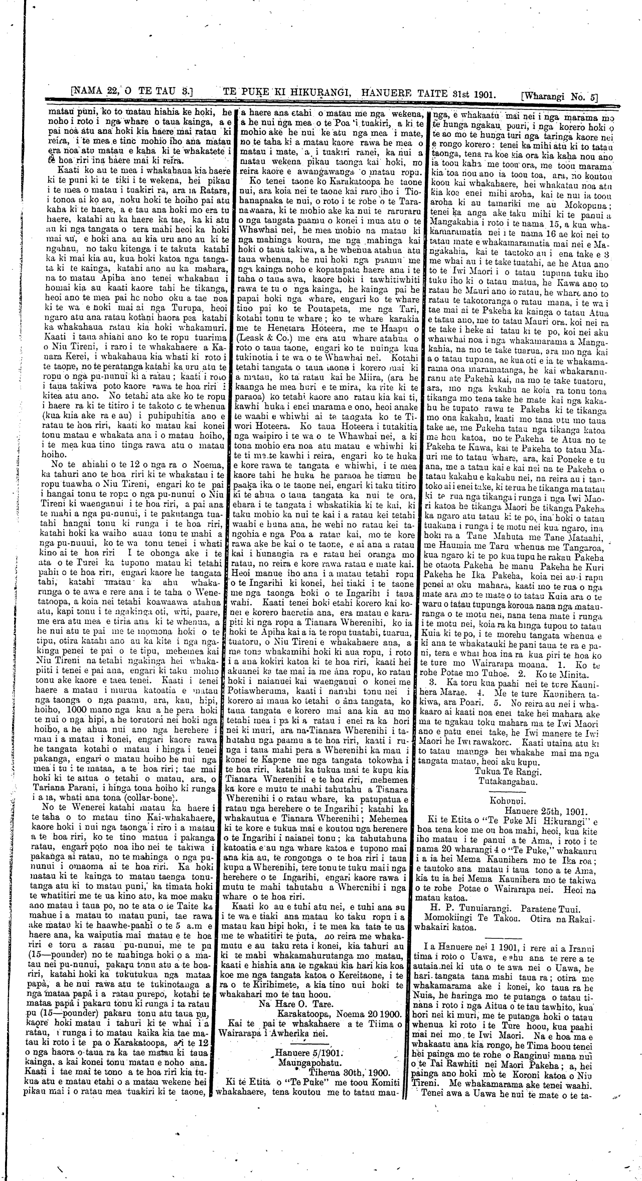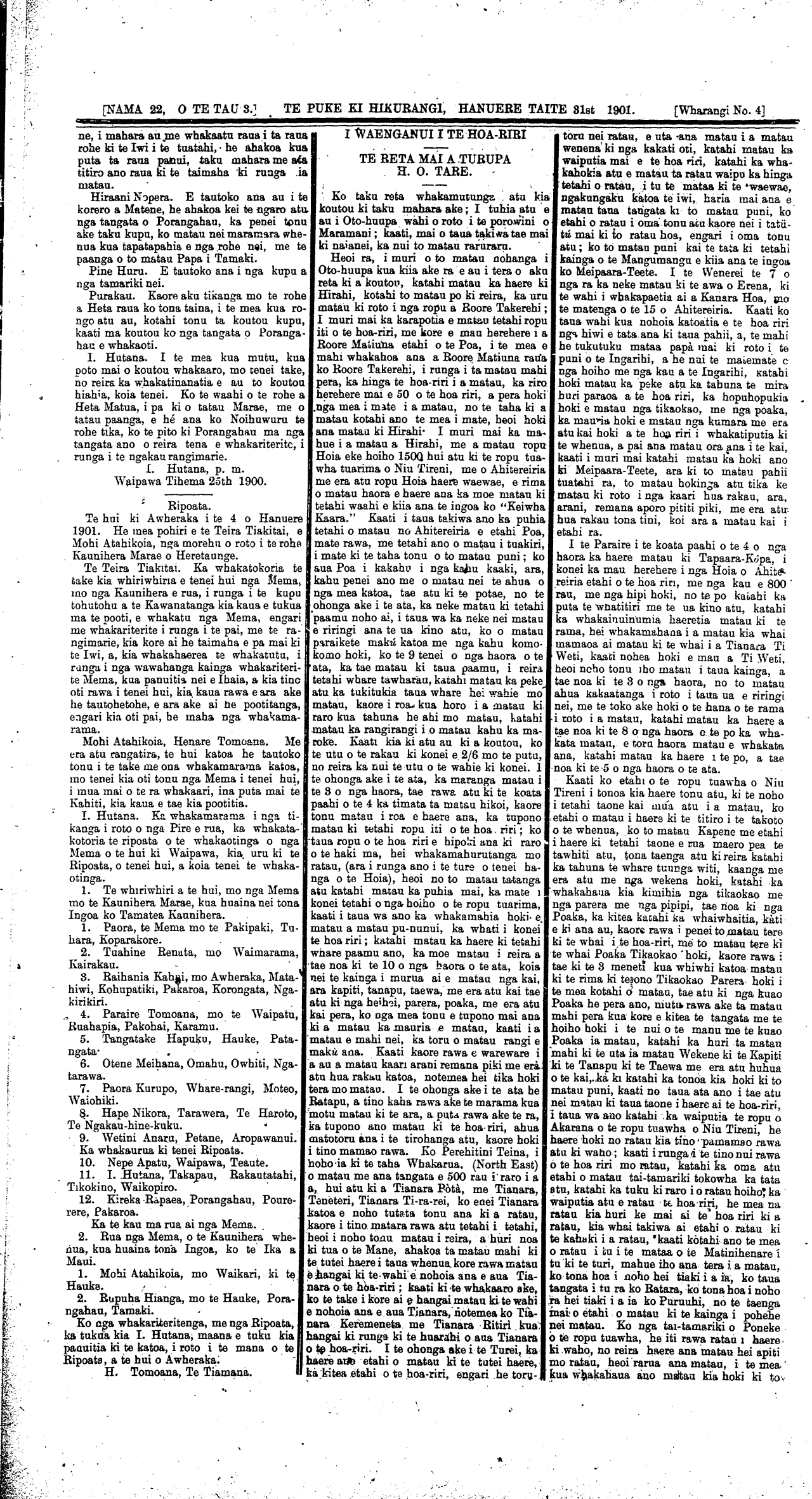 [NAMA 22, O TE TAU 3.] TE PUKE KI HIKURANGI, HANUERE TAITE 31st 1901. [Wharangi No. 4
