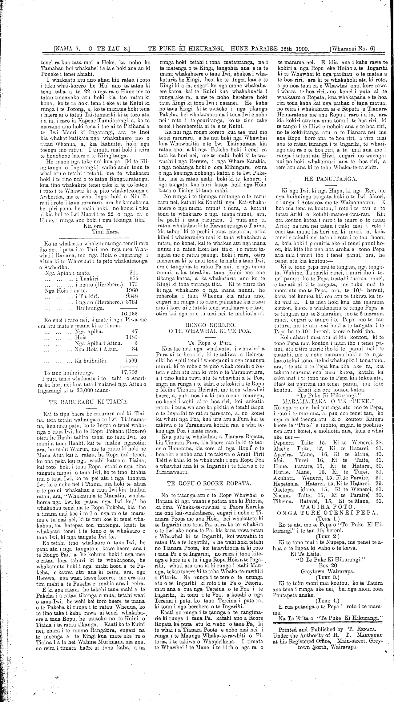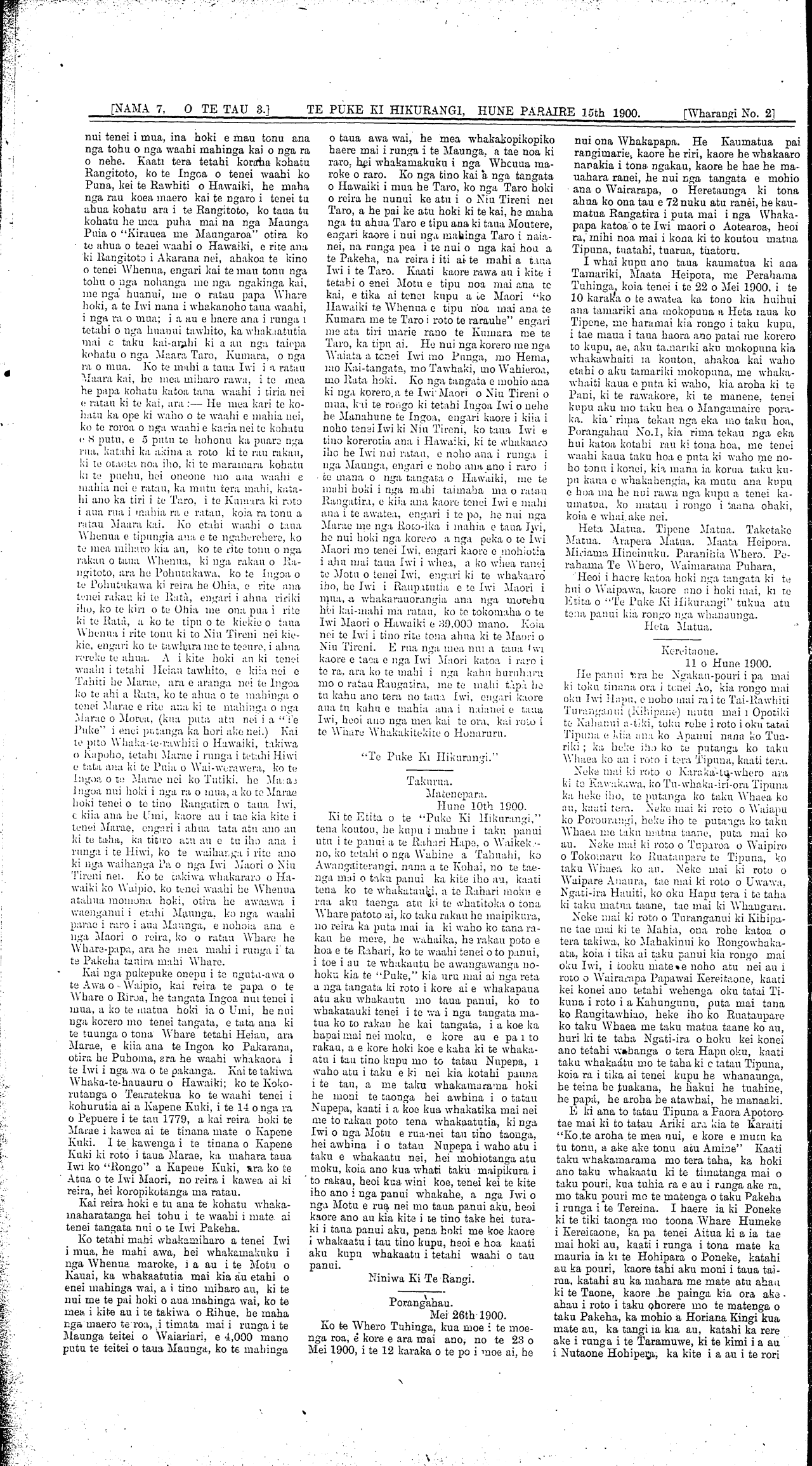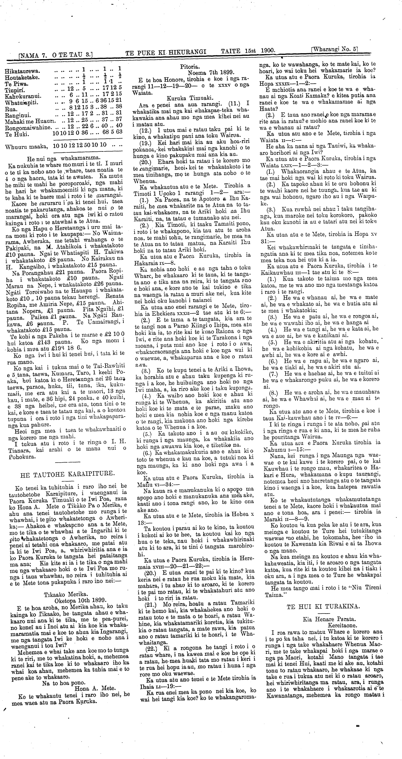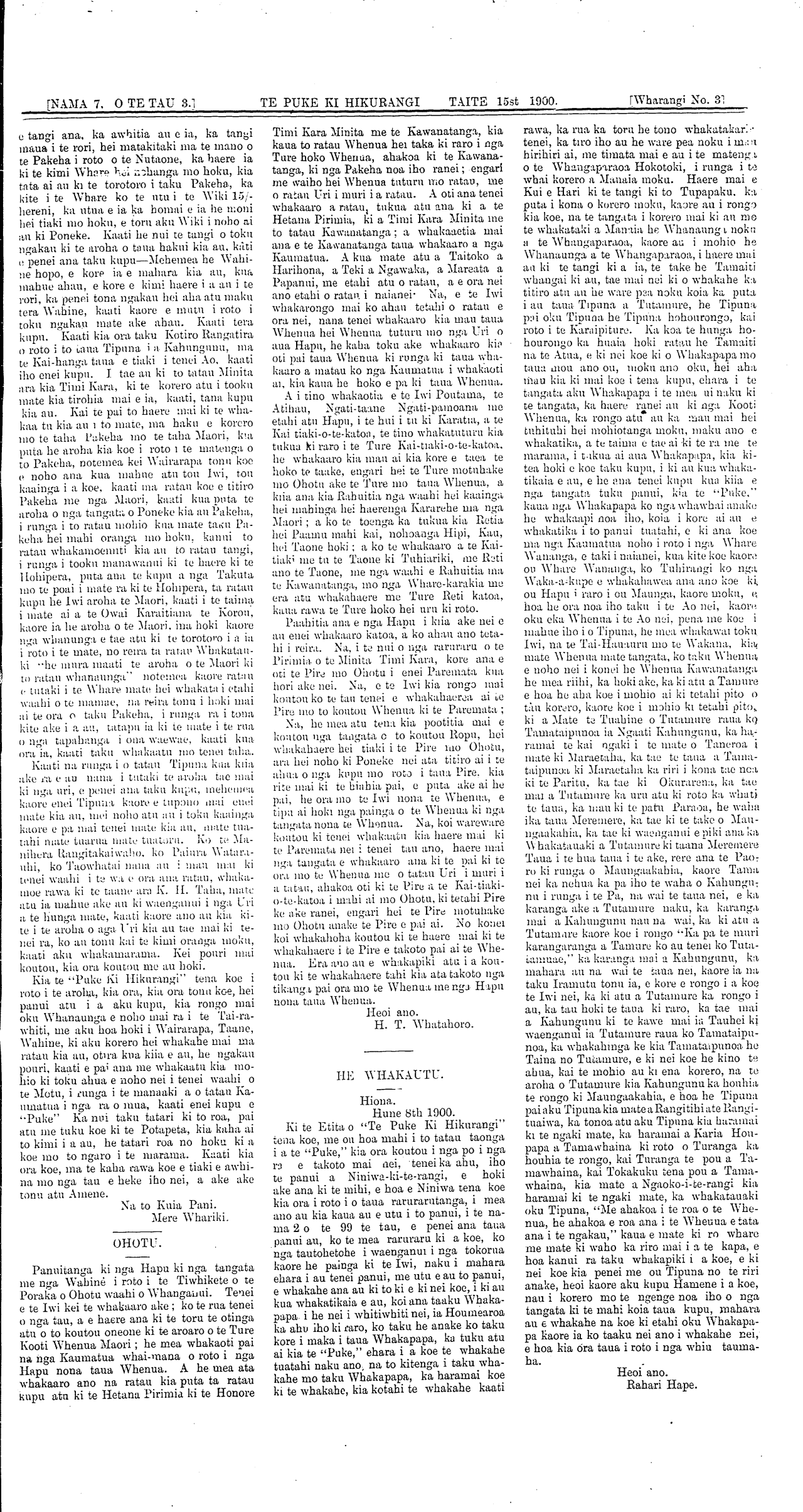 Te Puke Ki Hikurangi 1897-1913: Volume 3, Number 7. 15 June 1900 |