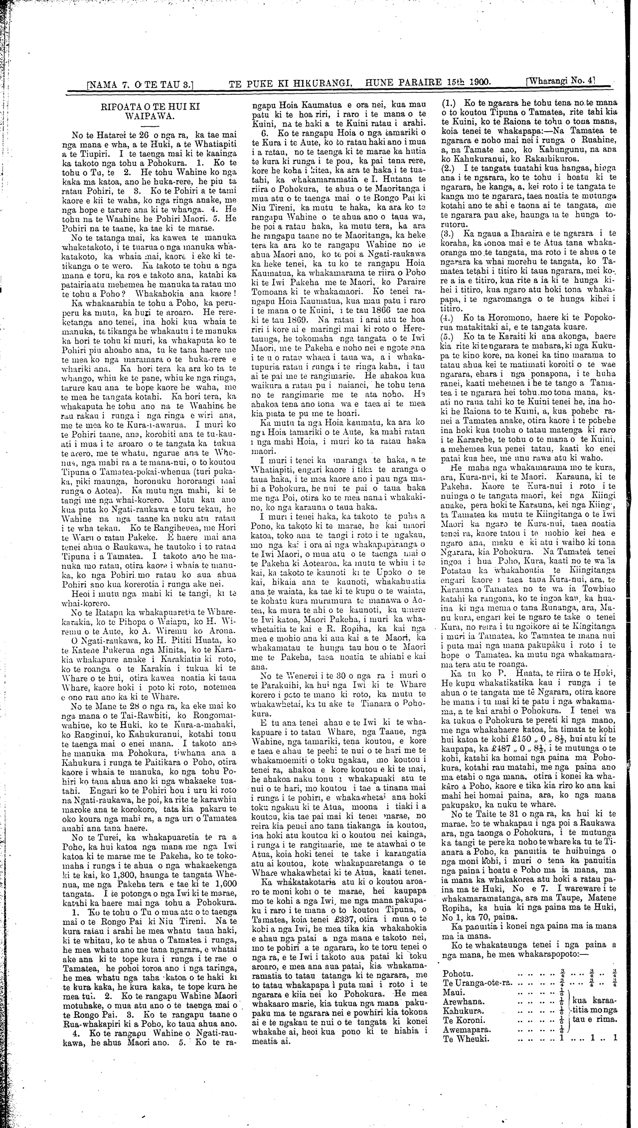 [NAMA 7, O TE TAU TUATORU.]\_\_\_\_\_\_\_WAIRARAPA. HUNE PARAIRE I5t 1900.\_\_\_\_\_[Wharangi No. 1] \_\_