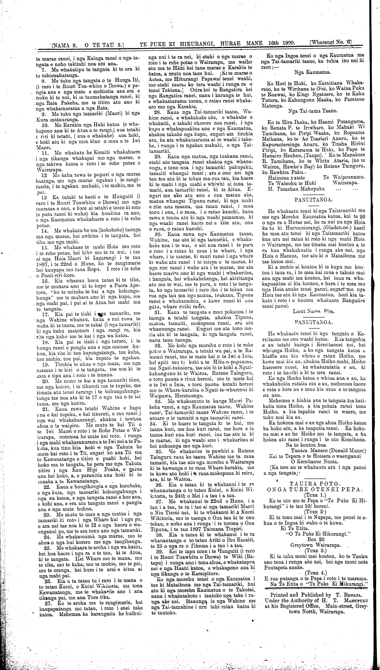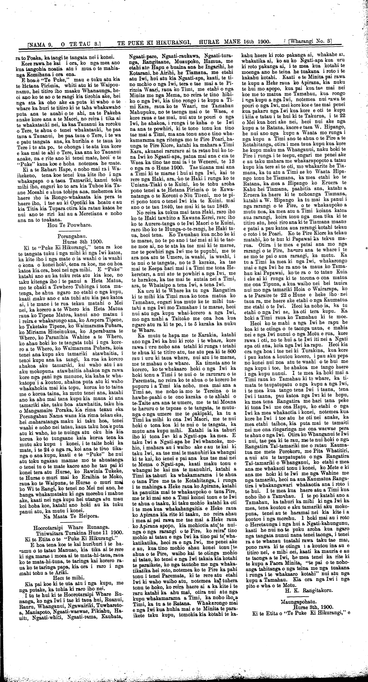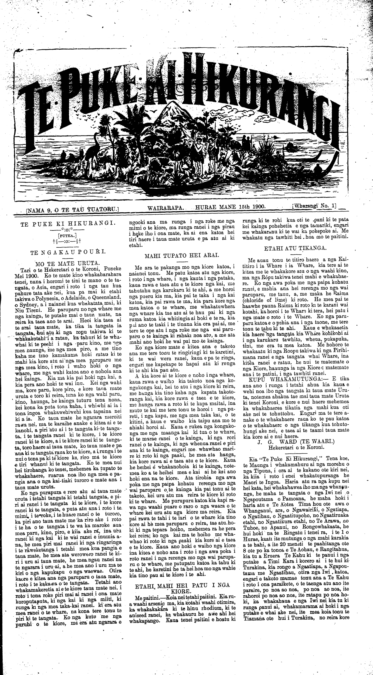 [NAMA 9, O TE TAU TUATORU.]\_\_\_\_\_\_WAIRARAPA. HURAE MANE 15th 1900. [Wharangi No. 1]