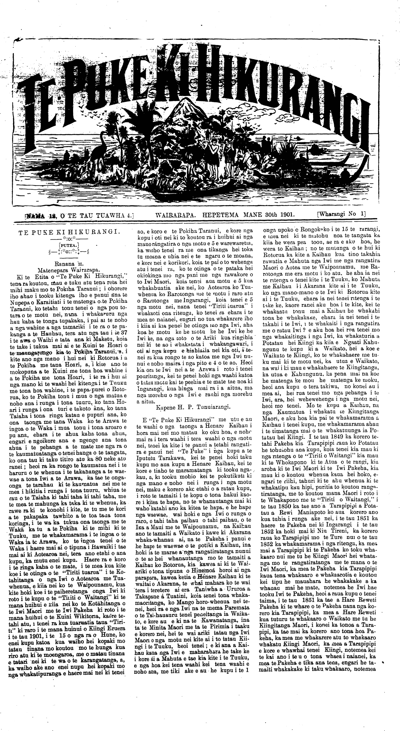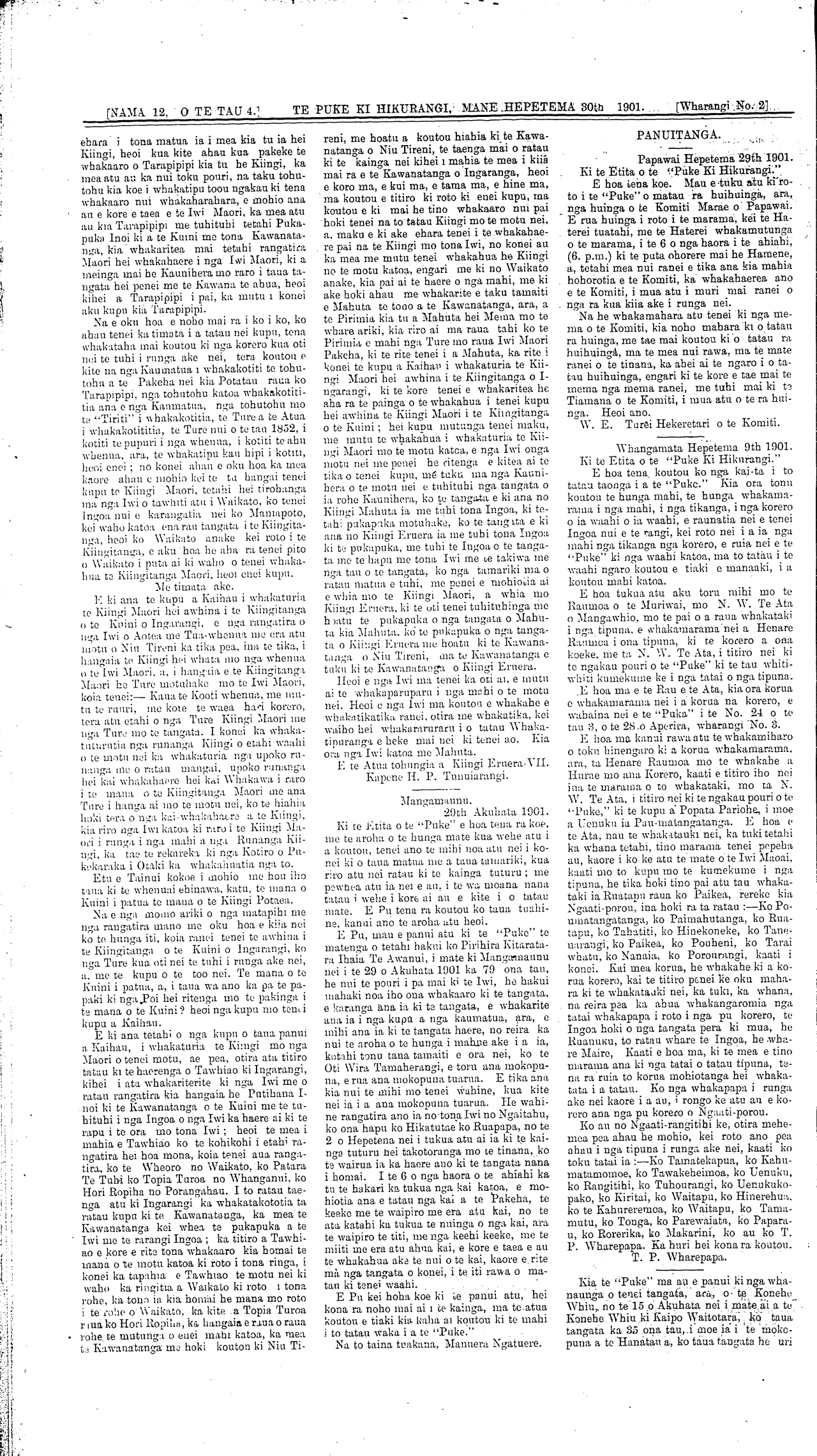 NAMA 12, O TE TAU TUAWHA 4.] WAIRARAPA. HEPETEMA MANE 30tb 1901. [Wharangi No 1]