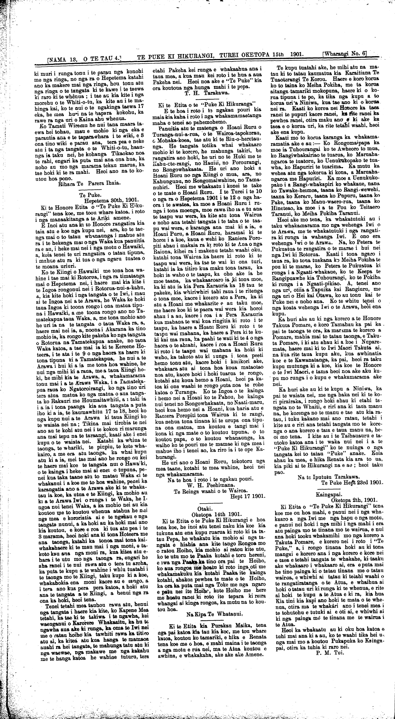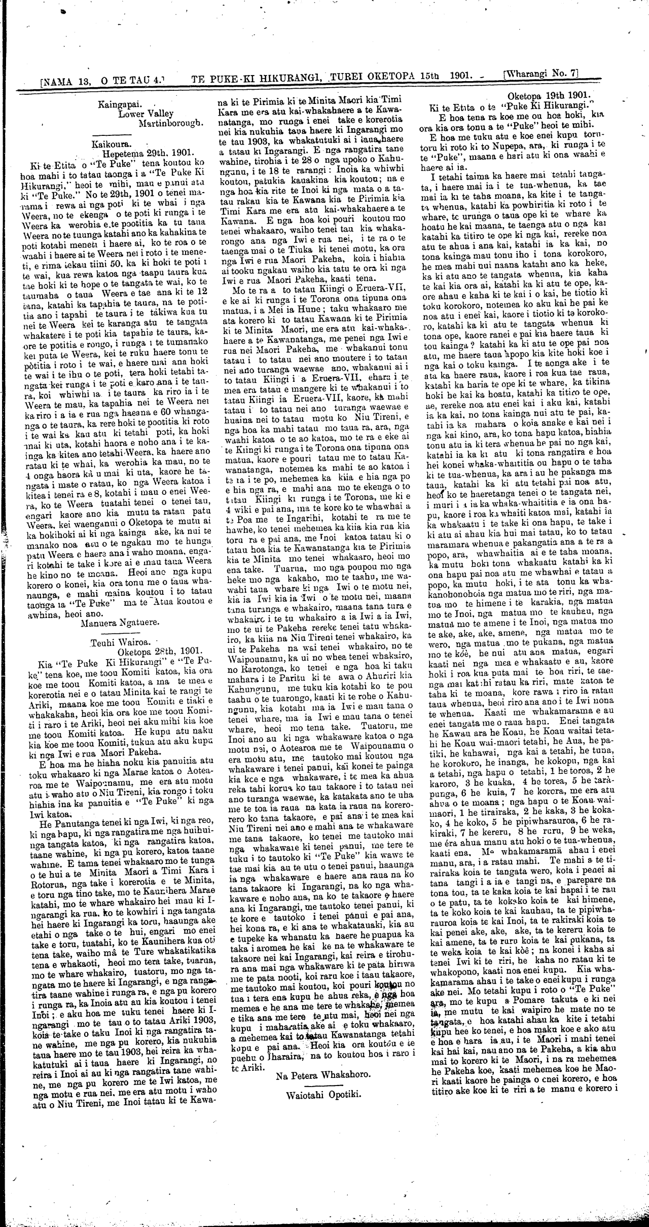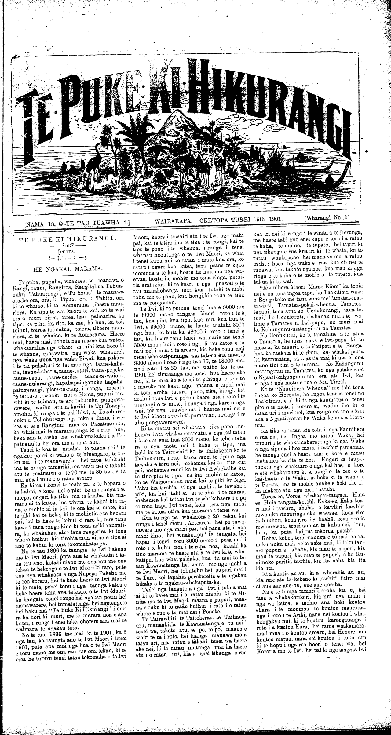 [NAMA 13, O TE TAU TUAWHA 4.]\_\_\_\_\_WAIRARAPA. OKETOPA TUREI 15th 1901.\_\_\_\_\_[Wharangi No .1].