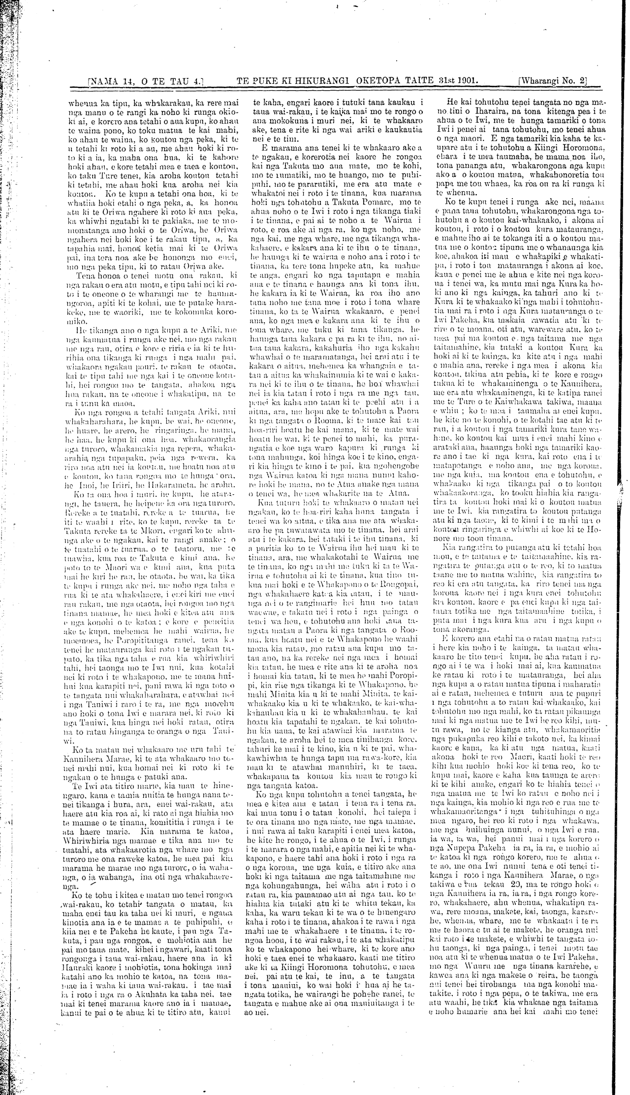 [NAMA I4, O TE TAU 4.]\_\_\_\_\_TE PUKE KI HIKURANGI OKETOPA TAITE 31st 1901.\_\_\_\_\_\_[Wharangi No. 2] Takuta Pomare Iharaira Kiingi Horomona