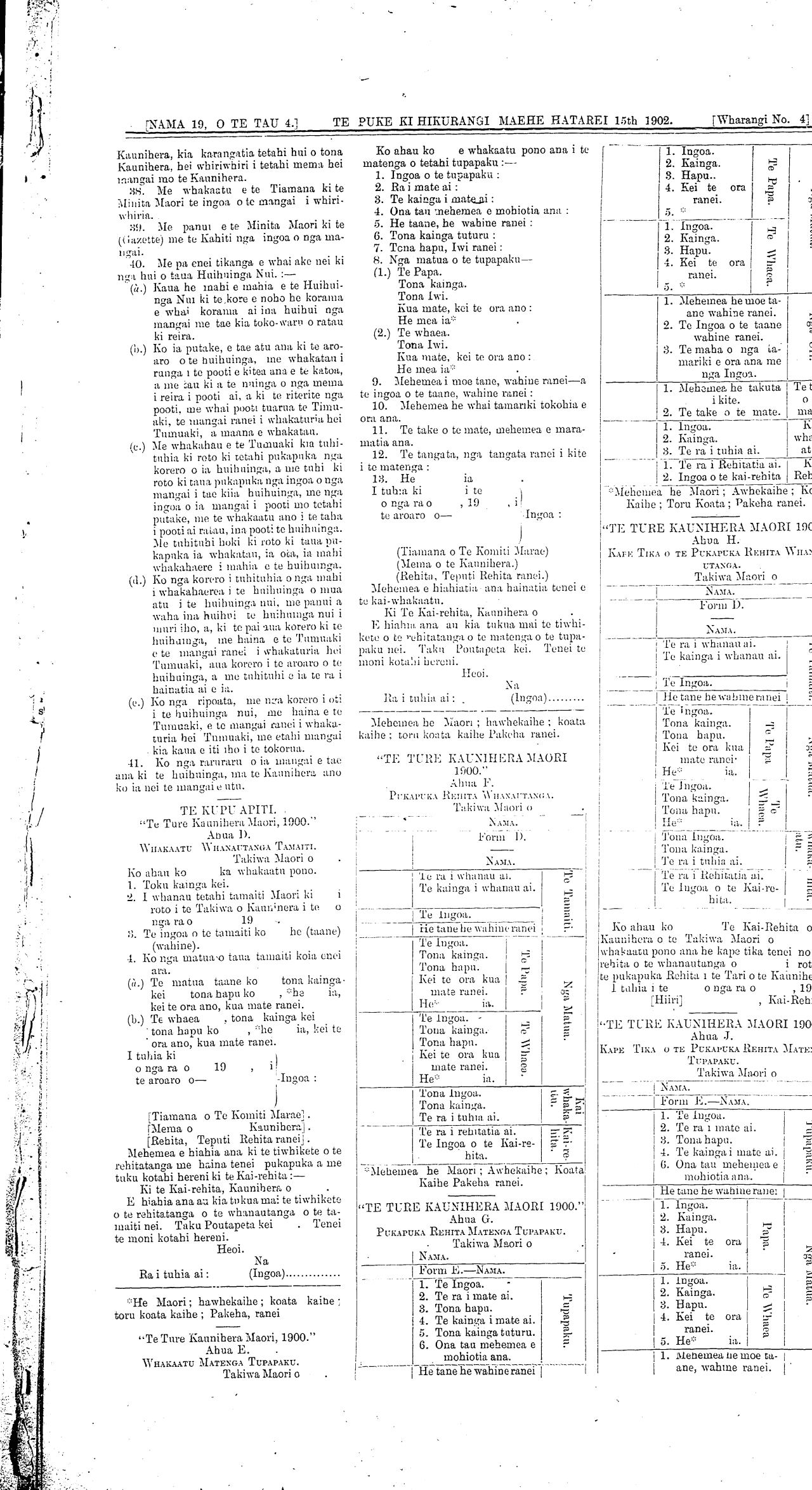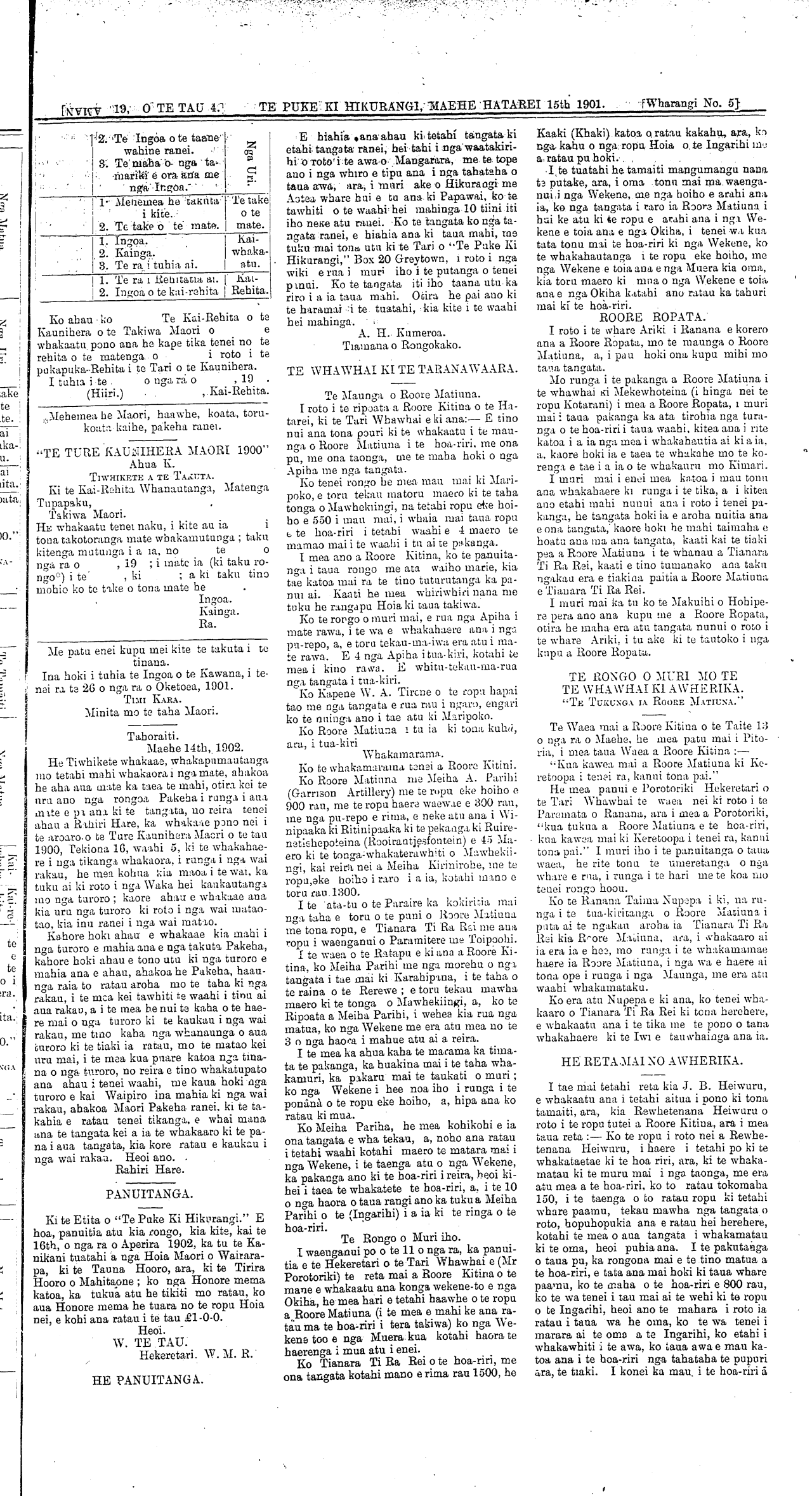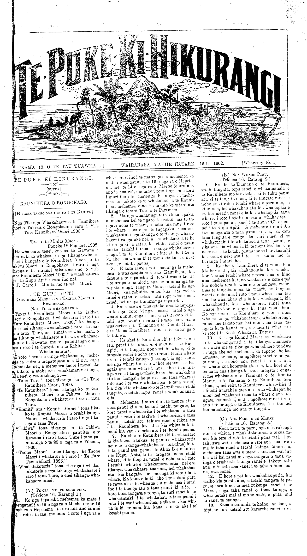 [NAMA 19, O TE TAU TUAWHA 4.] WAIRARAPA. MAEHE HATAREI 15th 1902. [Wharangi No 1]