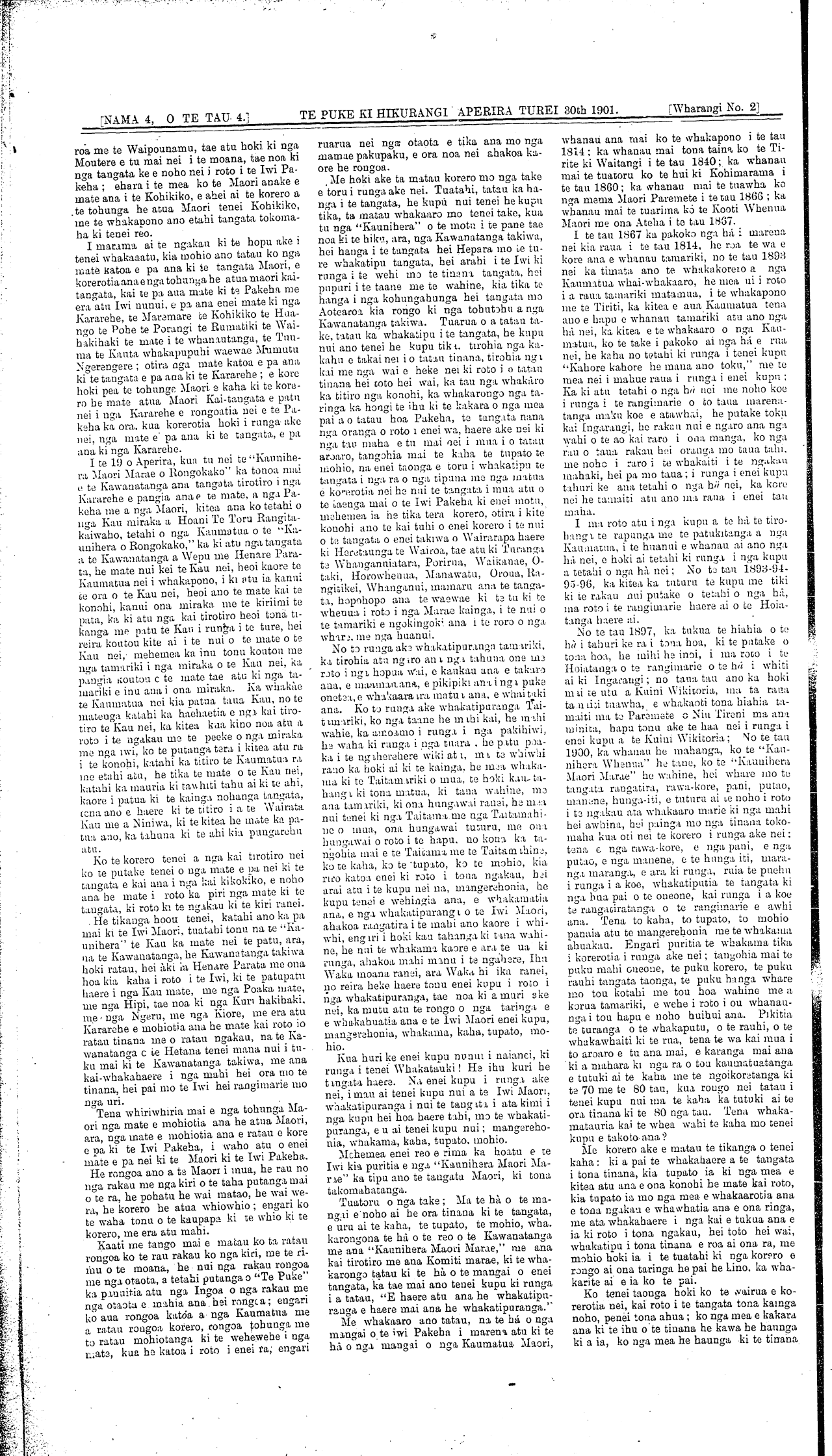 [NAMA 4, O TE TAU TUAWHA 4.] WAIRARAPA. APERIRA TUREI 80th 1901. [Wharangi No 1]