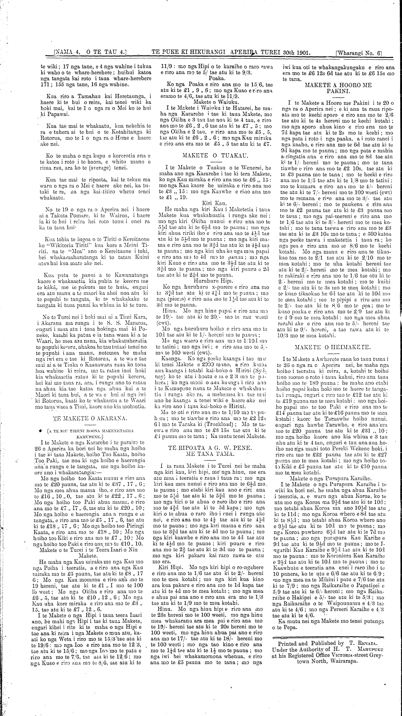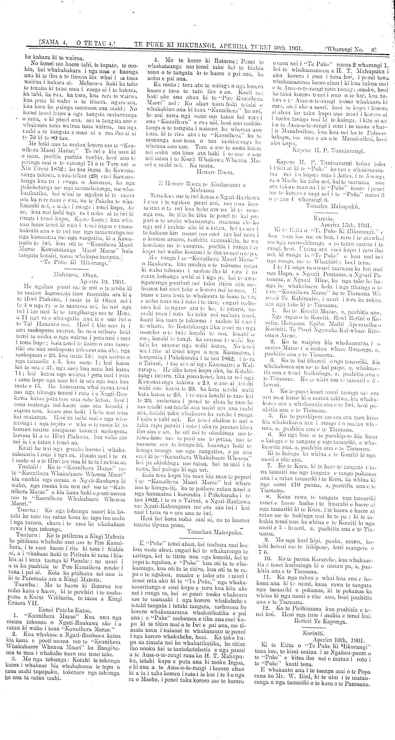 Te Puke Ki Hikurangi 1897-1913: Volume 4, Number 4. 30 April 1901 |