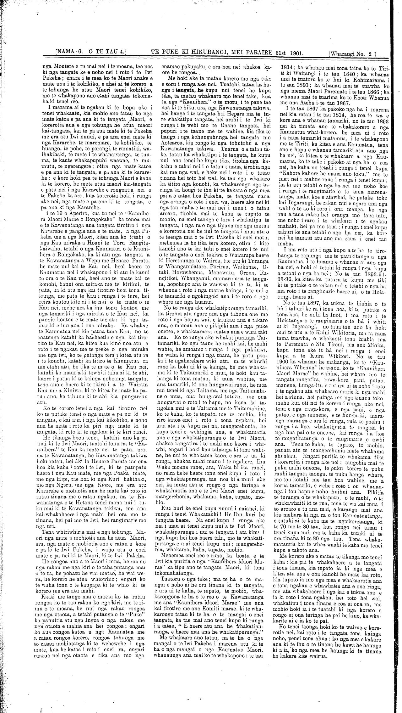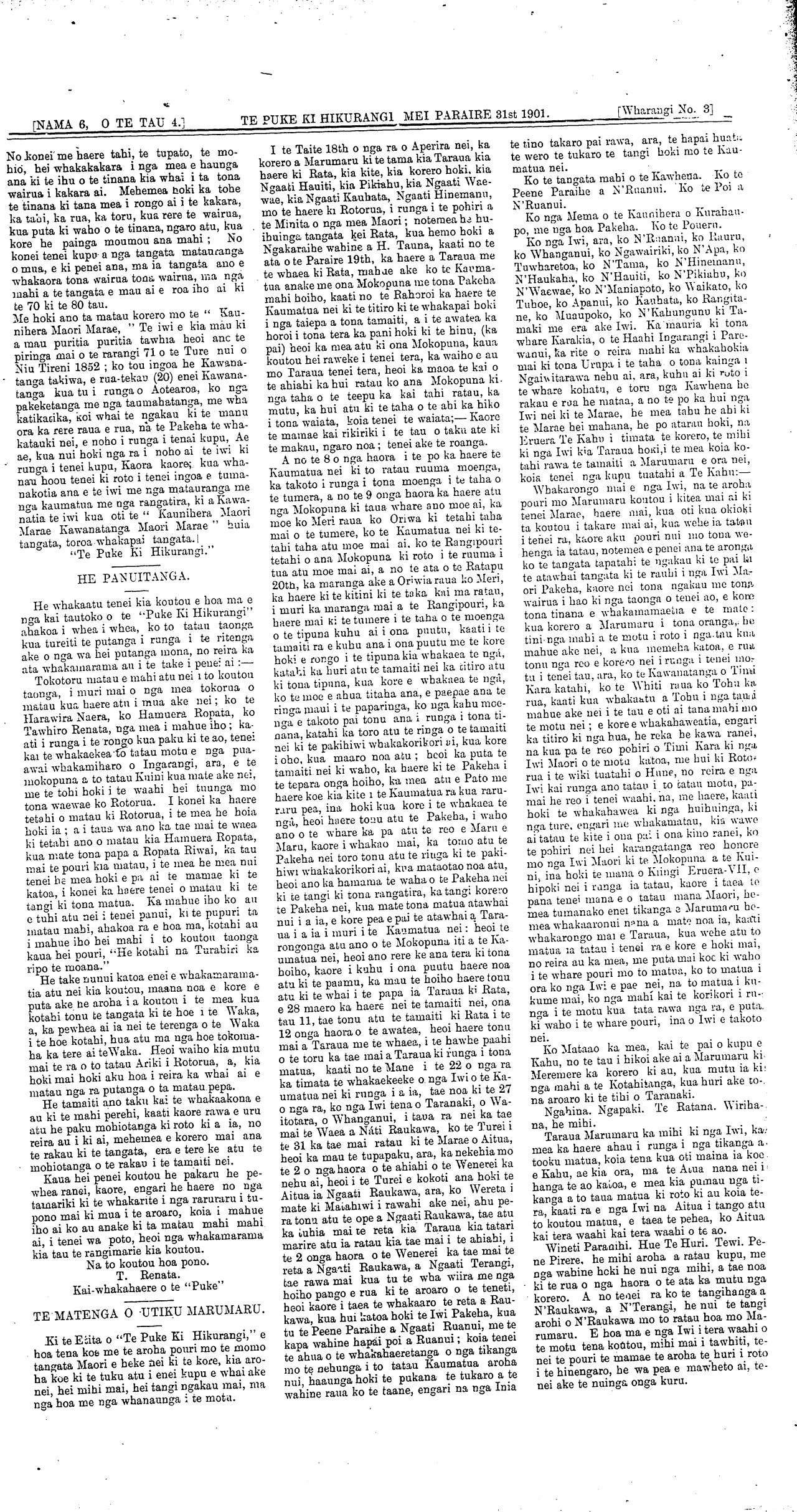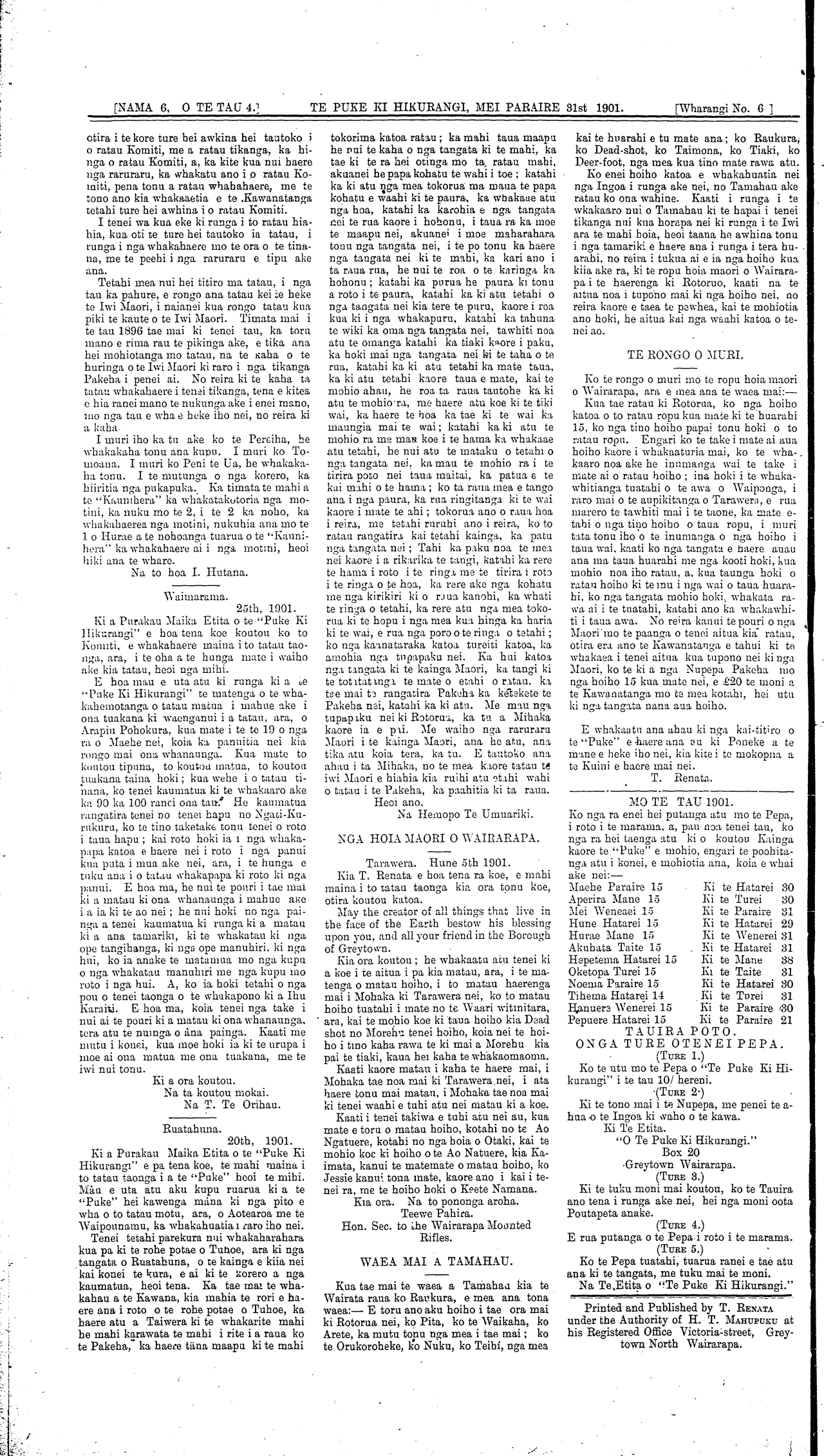 [NAMA 6, O TE TAU TUAWHA 4.]\_\_\_\_\_\_WAIRARAPA. MEI PARAIRE 81st 1901.\_\_\_\_\_\_[Wharangi No 1]