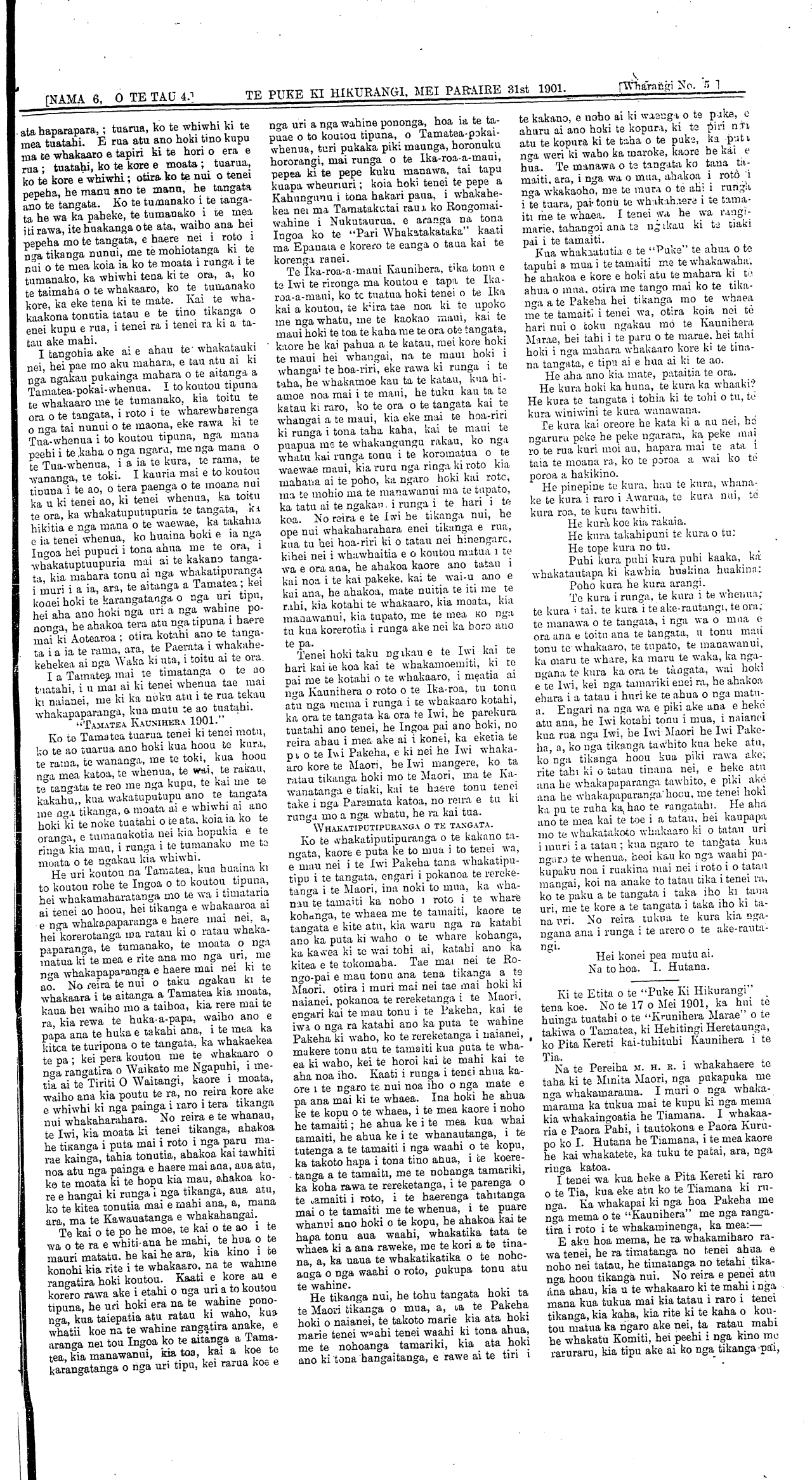 Te Puke Ki Hikurangi 1897-1913: Volume 4, Number 6. 30 June 1901 |