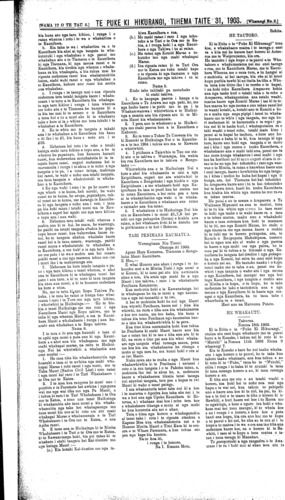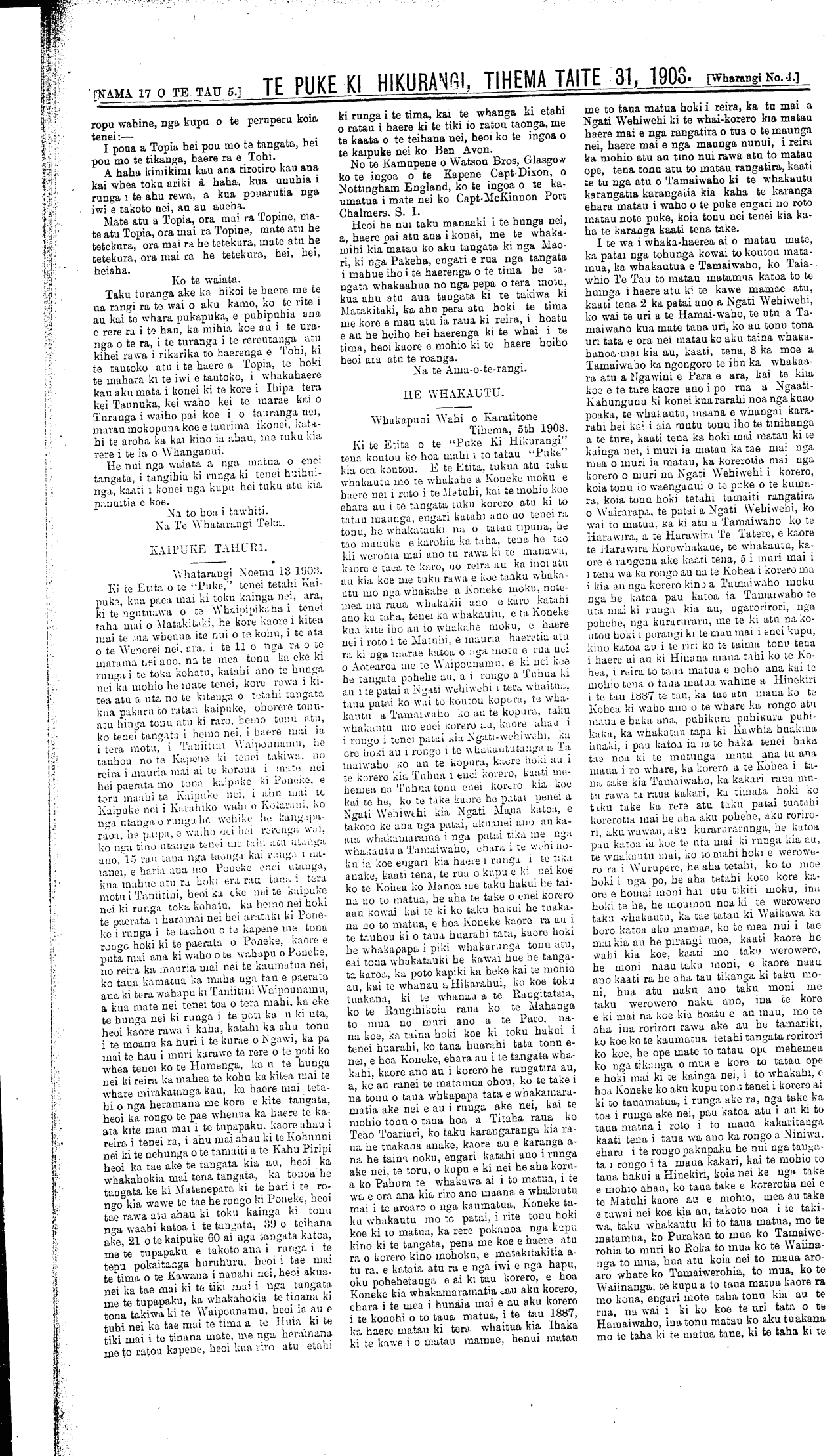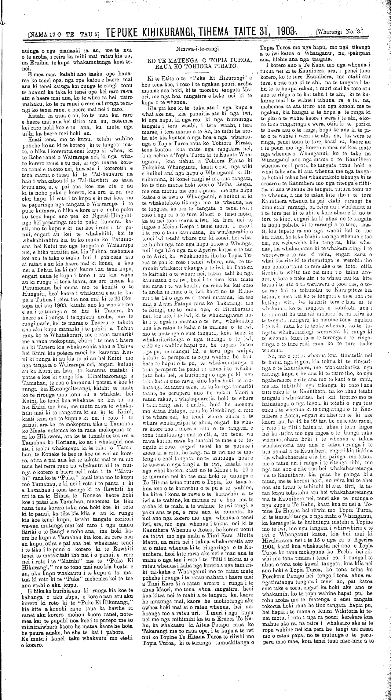 NAMA 17 O TE TAU 5.] TE PUKE KI HIKURANGI. TIHEMA; TAHE 31, 1903, Wharangi No. 2.