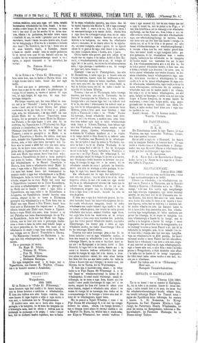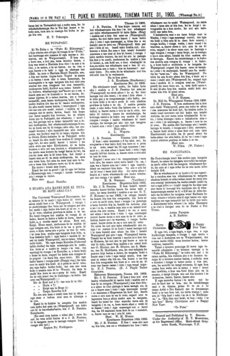 Te Puke Ki Hikurangi 1897-1913: Volume 5, Number 17. 31 December 1903 |