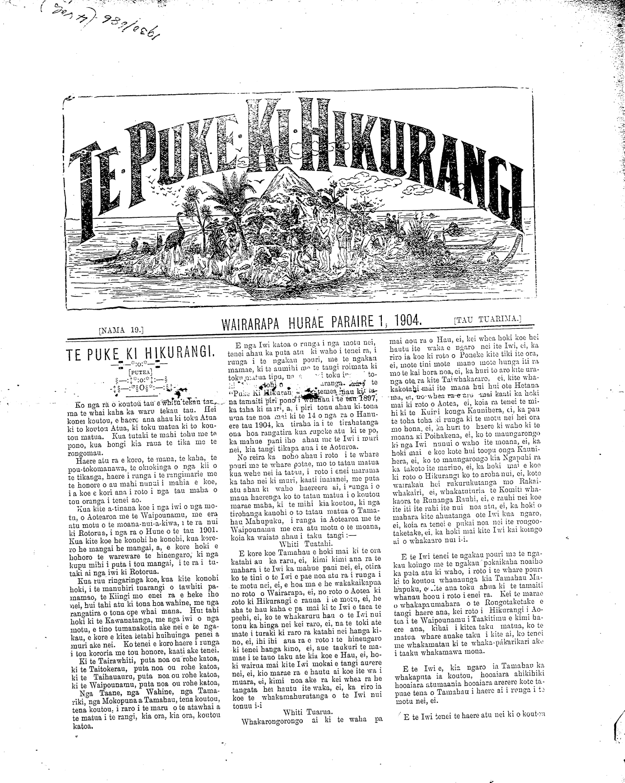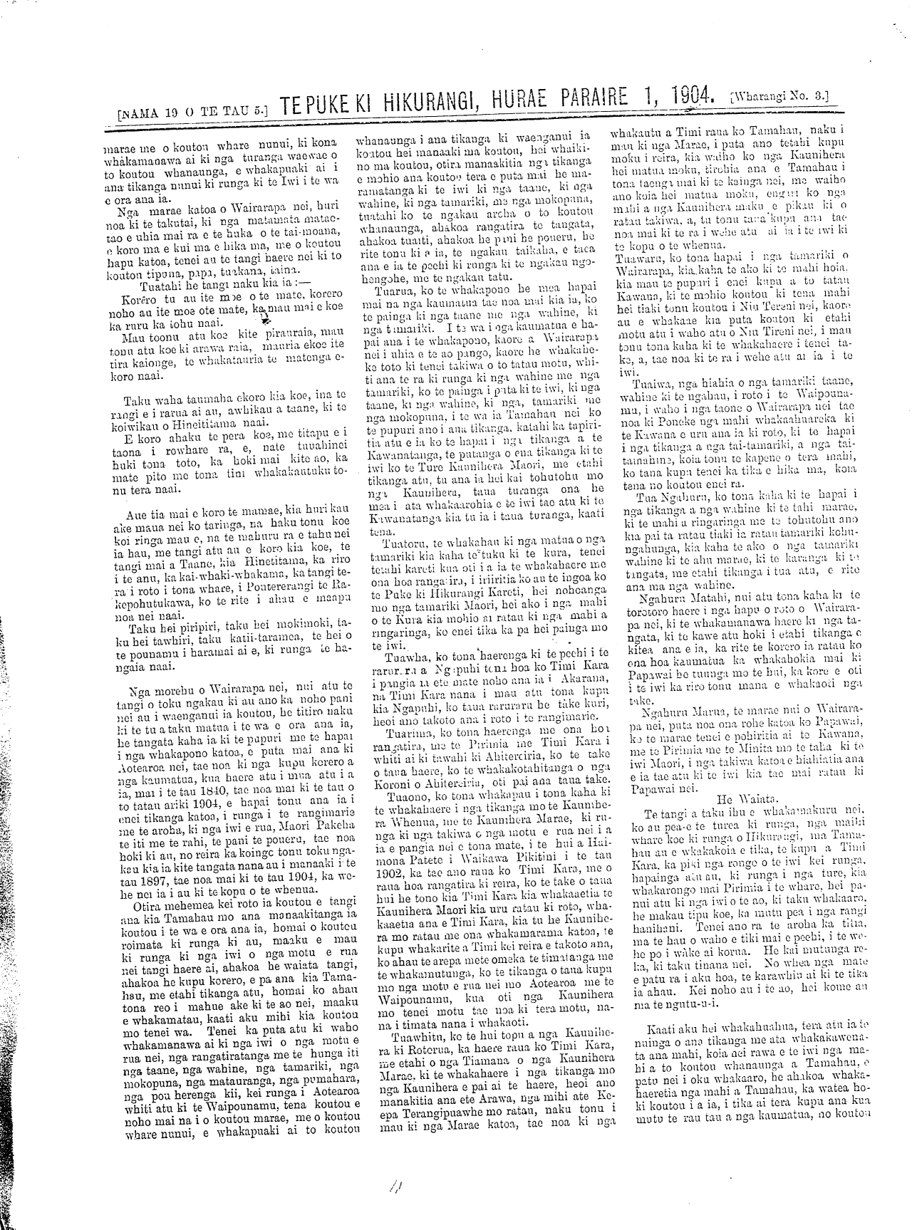 [NAMA.] WAIRARAPA HURAE PARAI RE 1, 1904. ITAU TUARIMA.]