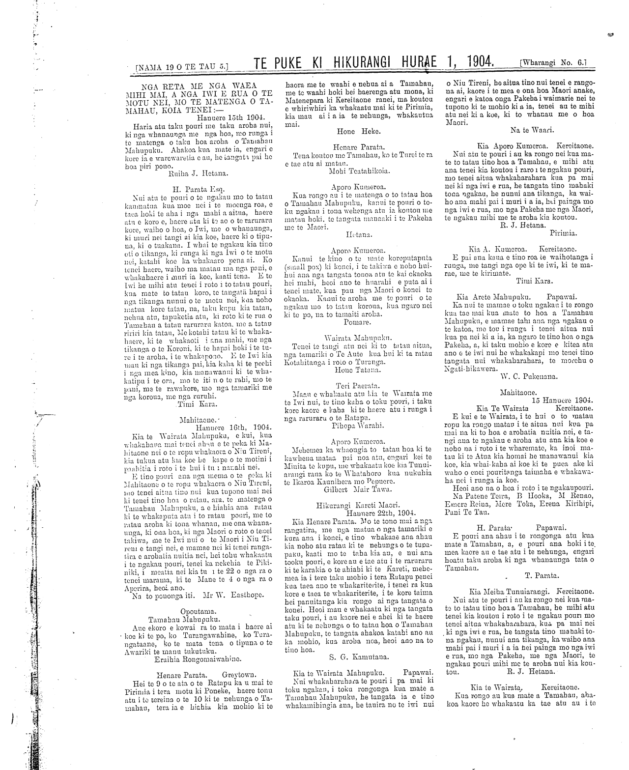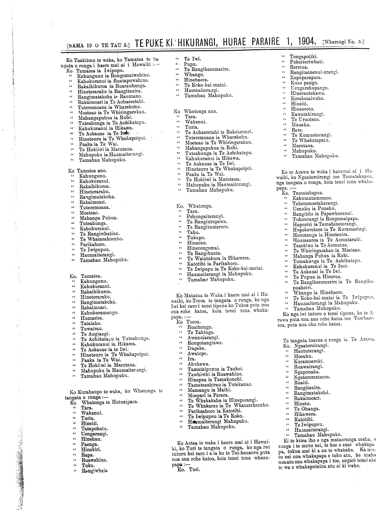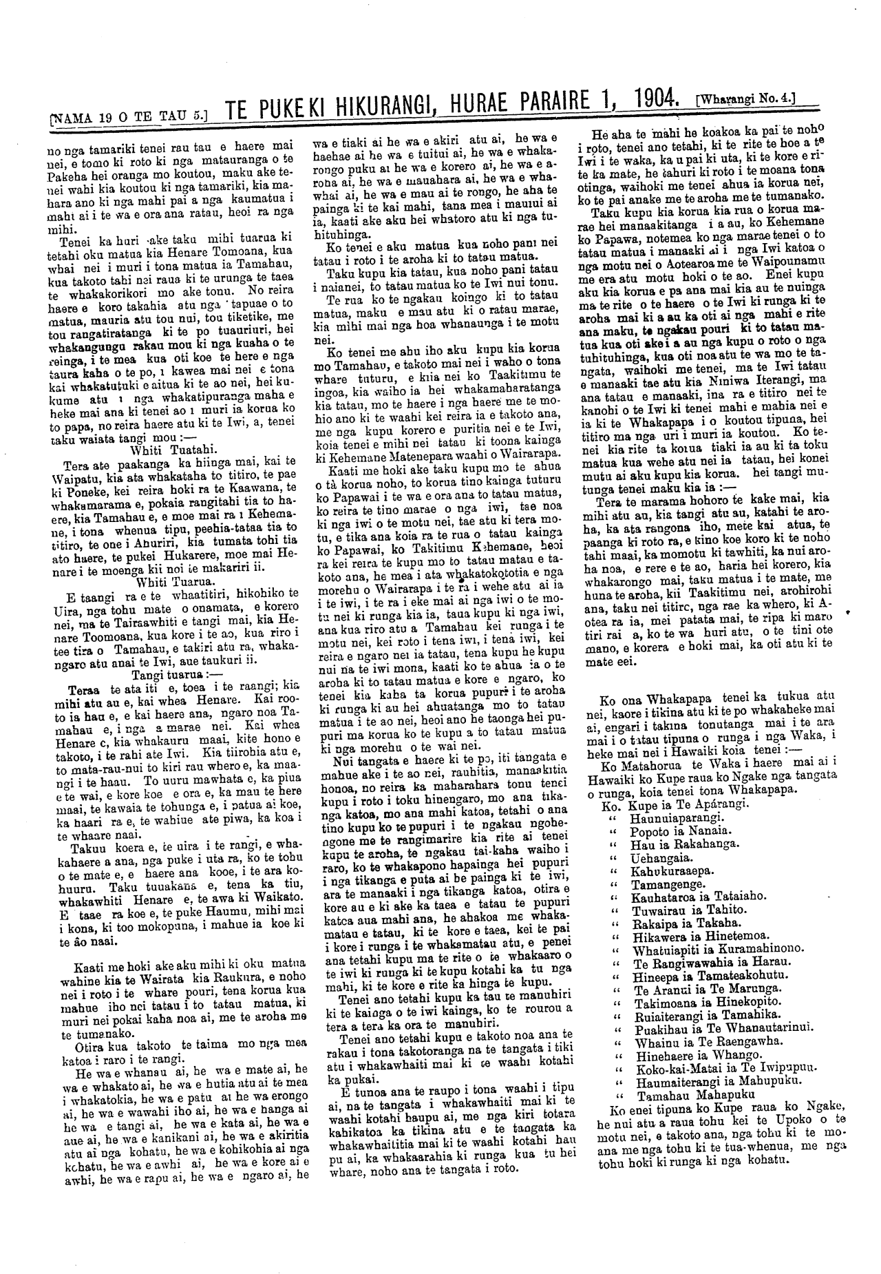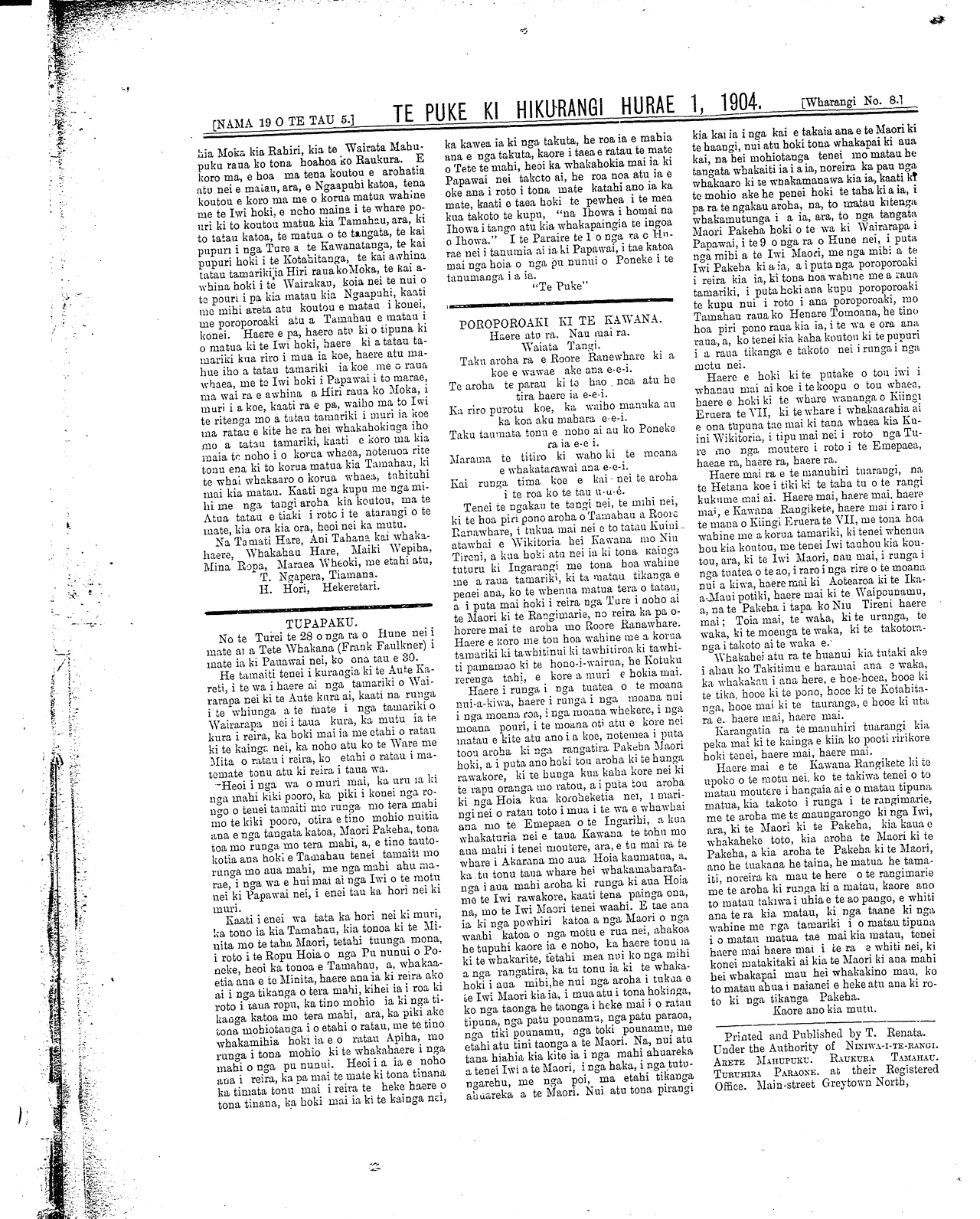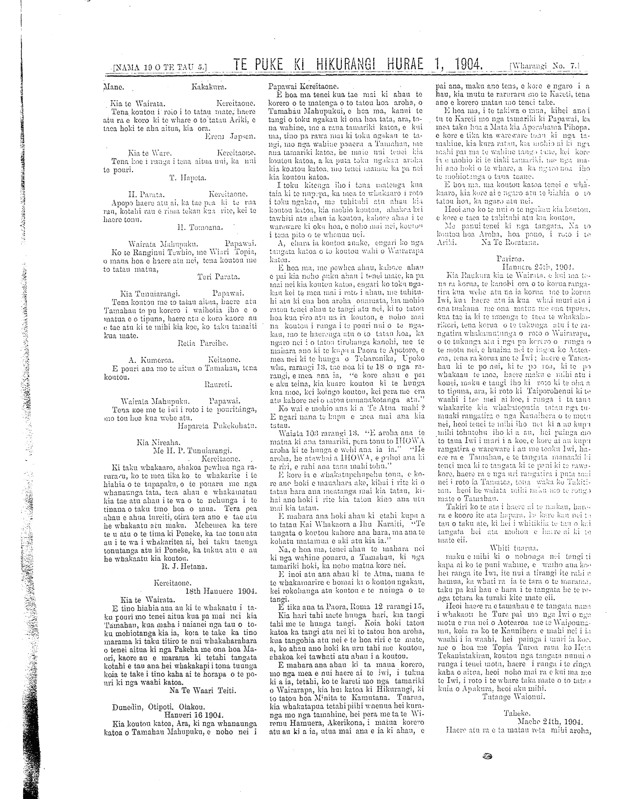 Te Puke Ki Hikurangi 1897-1913: Volume 5, Number 19. 01 July 1904 |
