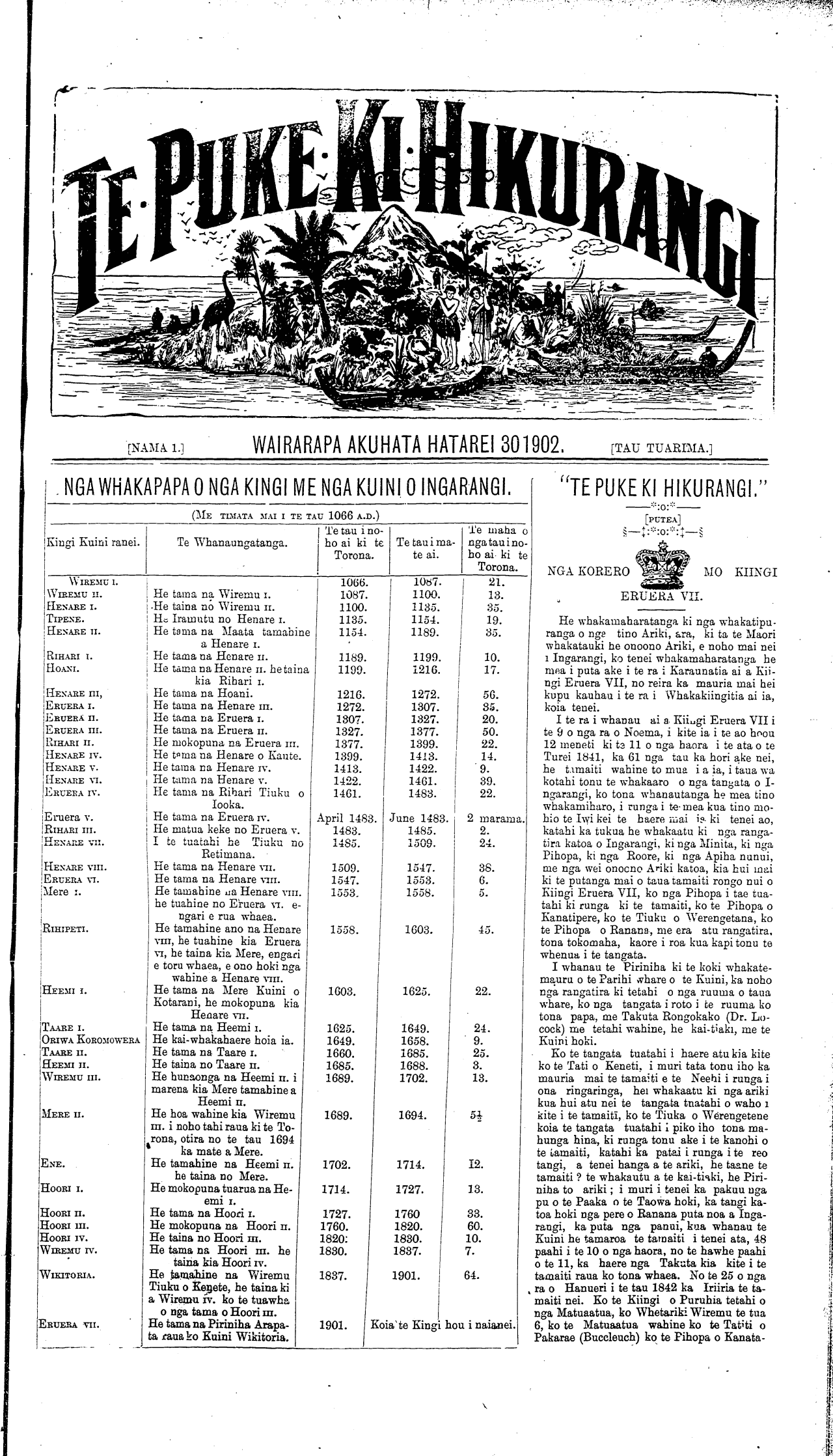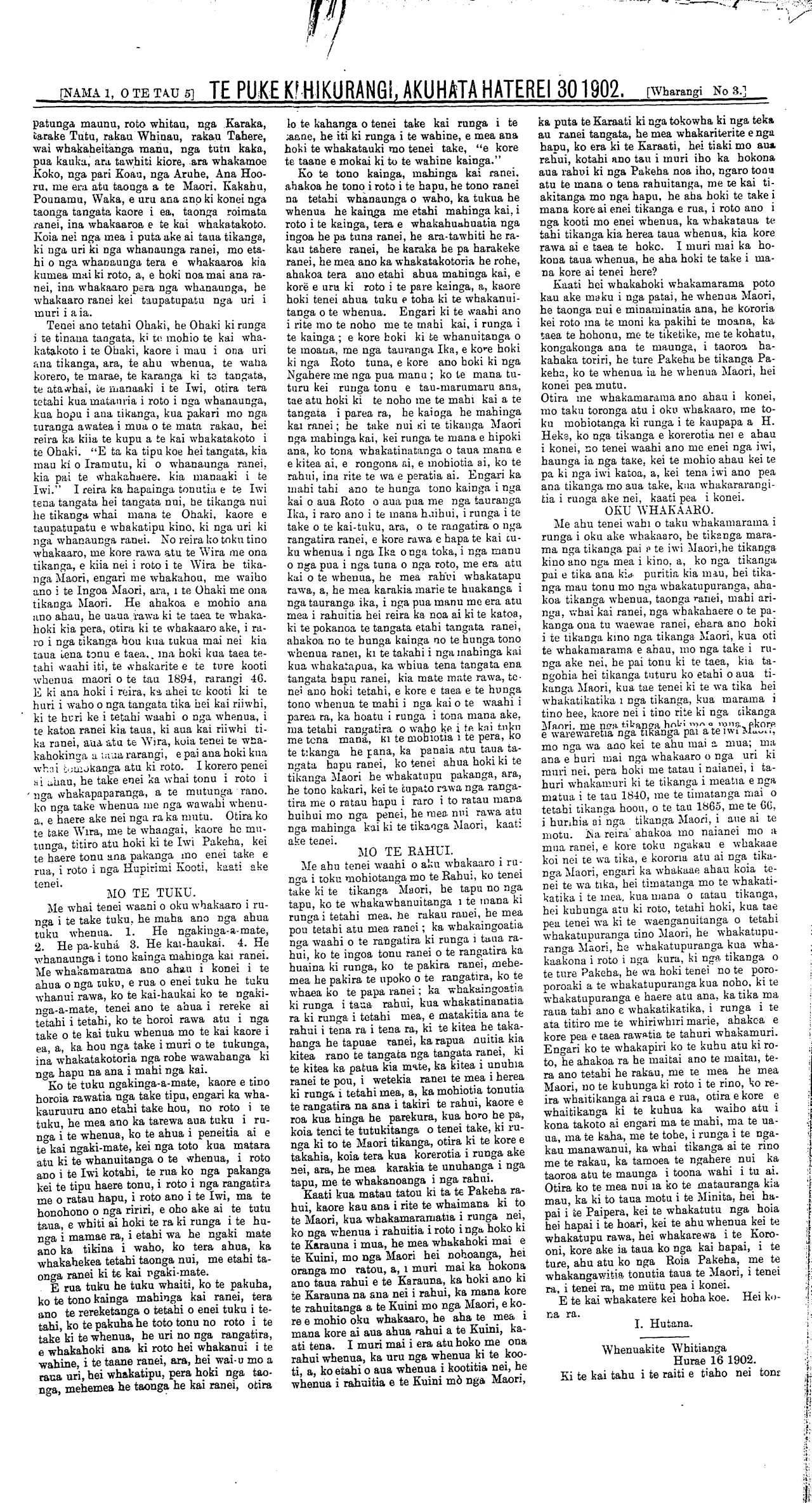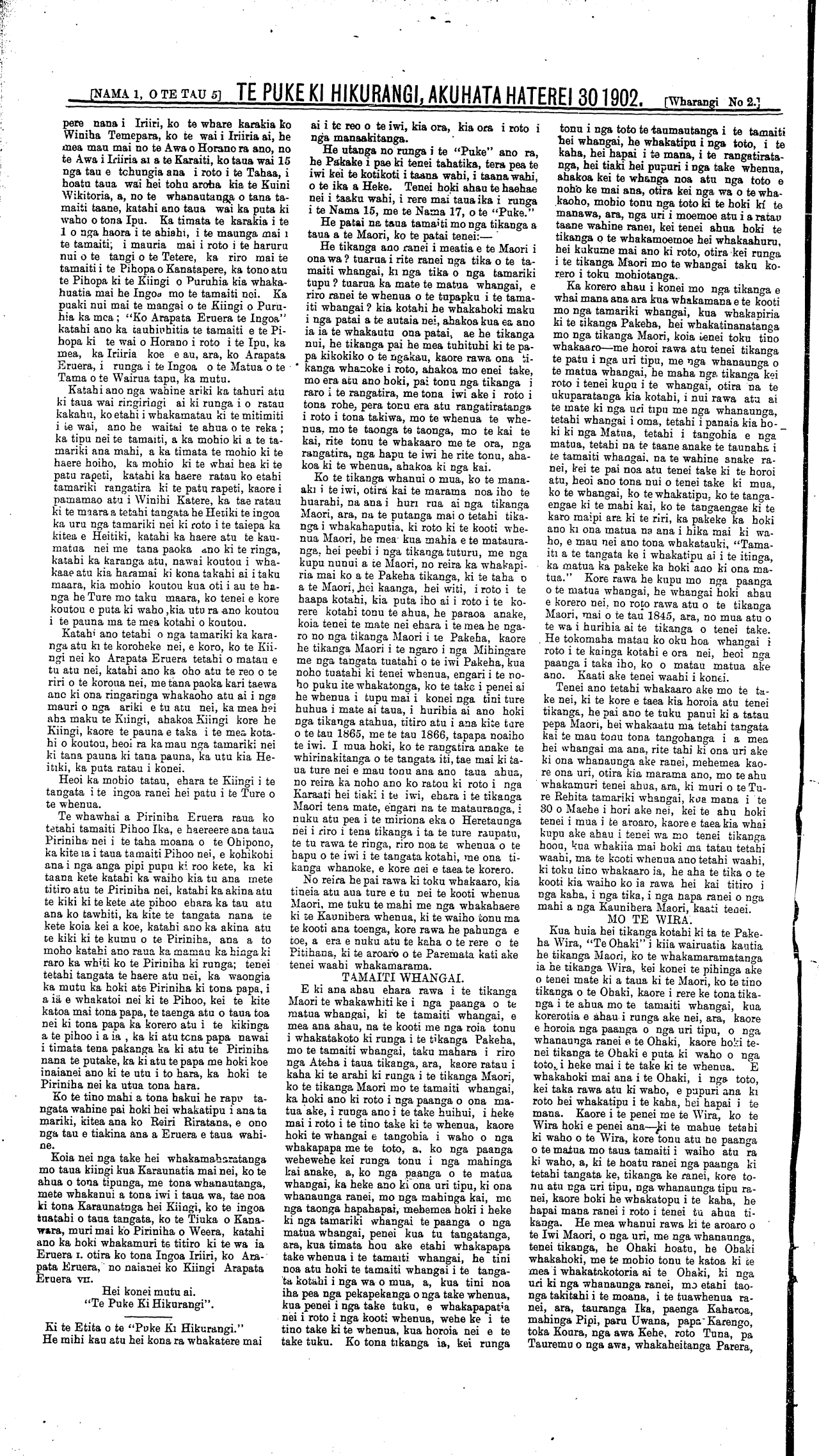 \_ [NAMA 2, o TE TAU 5 TE PUKE KI HIKURANGI. AKUHATA HATEREI 30 1902. Wharangi No 2