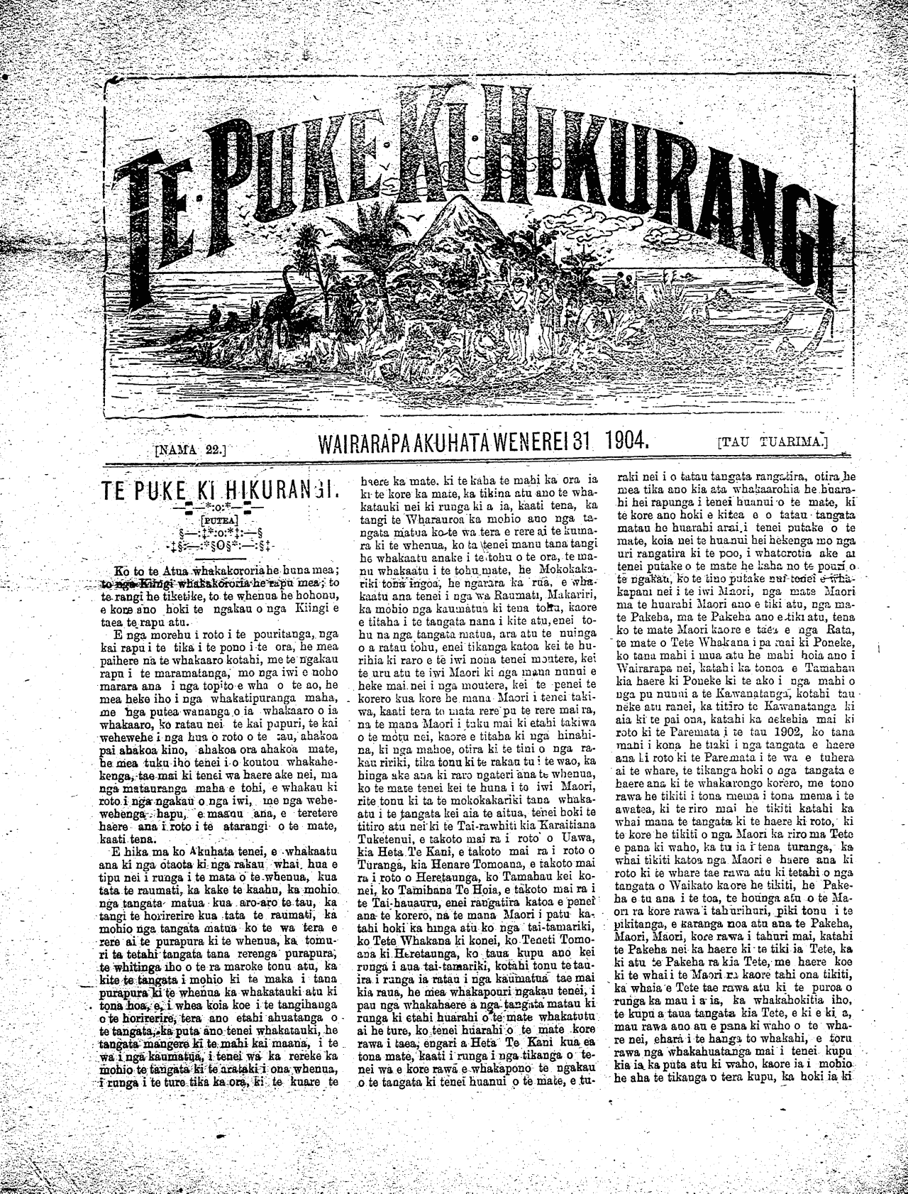 [NAMA 22 O TE TAU 5 TE PUKE KI HIKURANGI, AKUHATA WENEREI 31,1904. [Wharangi No. 7