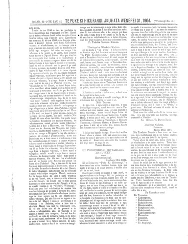 NAMA 22 O TE TAU 5 TE PUKI KI HIKURANGI, AKUHATA WENEREI 31, 1904 Wharangi No. 6