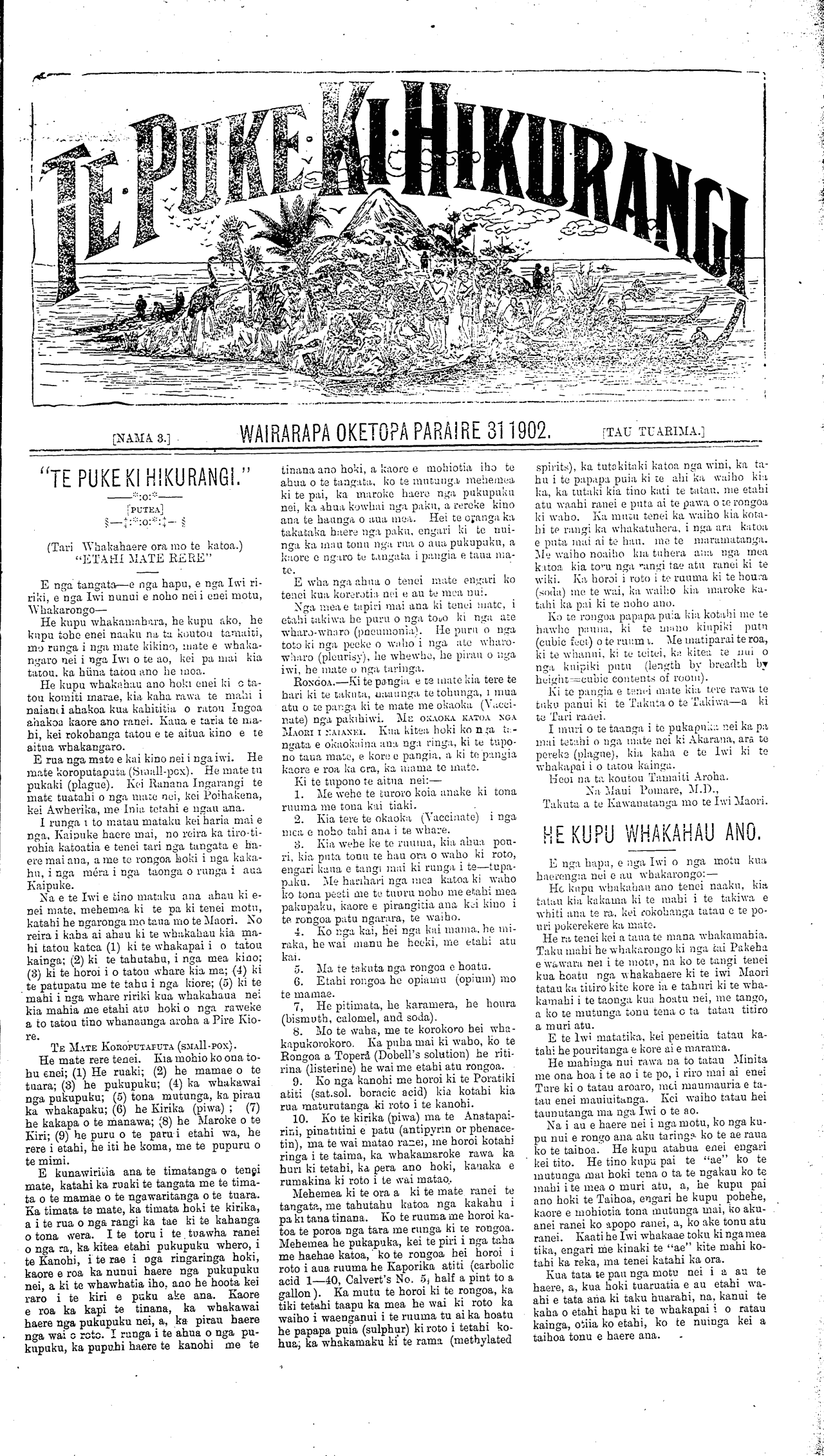 [NAMA 3.]. WAIRARAPA OKETOPA PARAIRE 31 1902. TAU TUARIMA.]