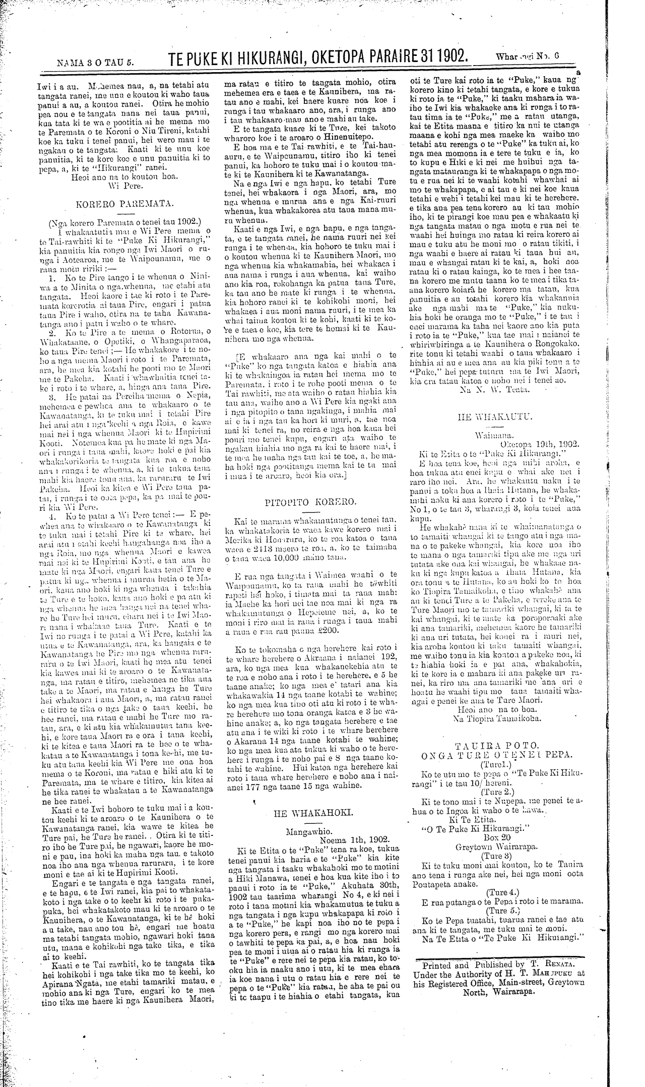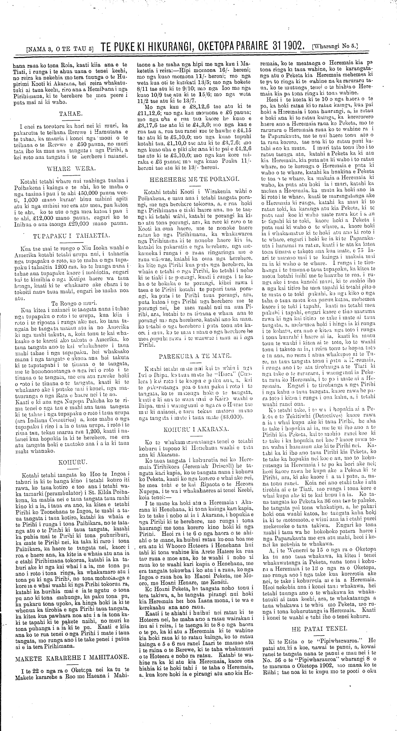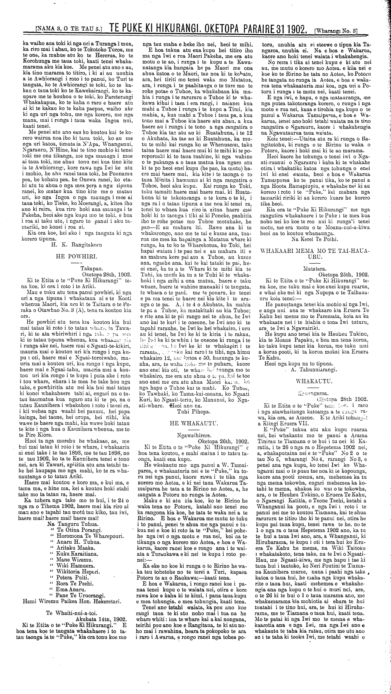 Te Puke Ki Hikurangi 1897-1913: Volume 5, Number 3. 31 October 1902 |