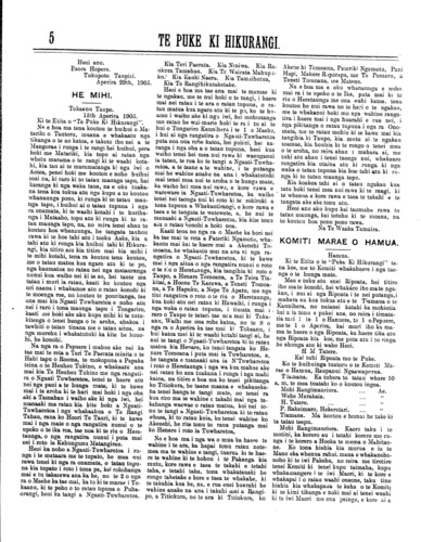ni, e 5/- hereni ranei, i te putanga tuatahi