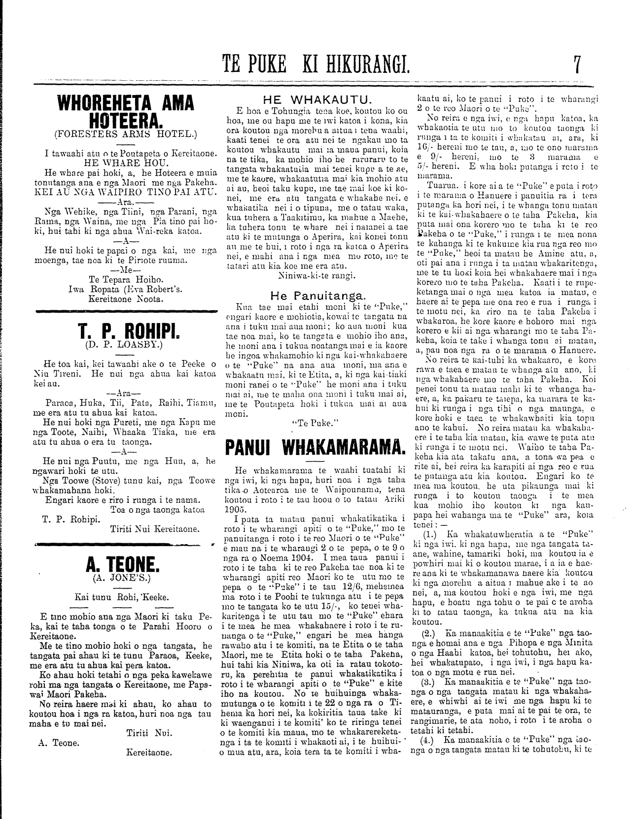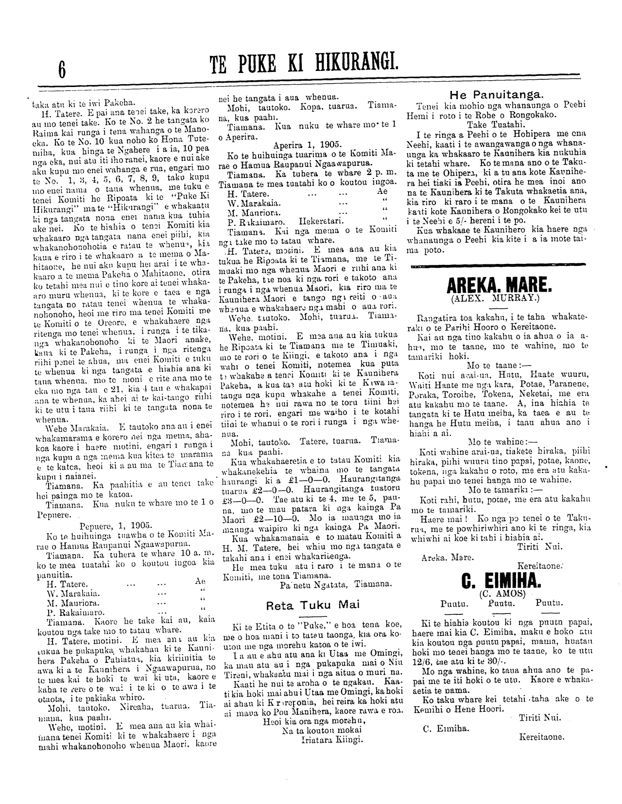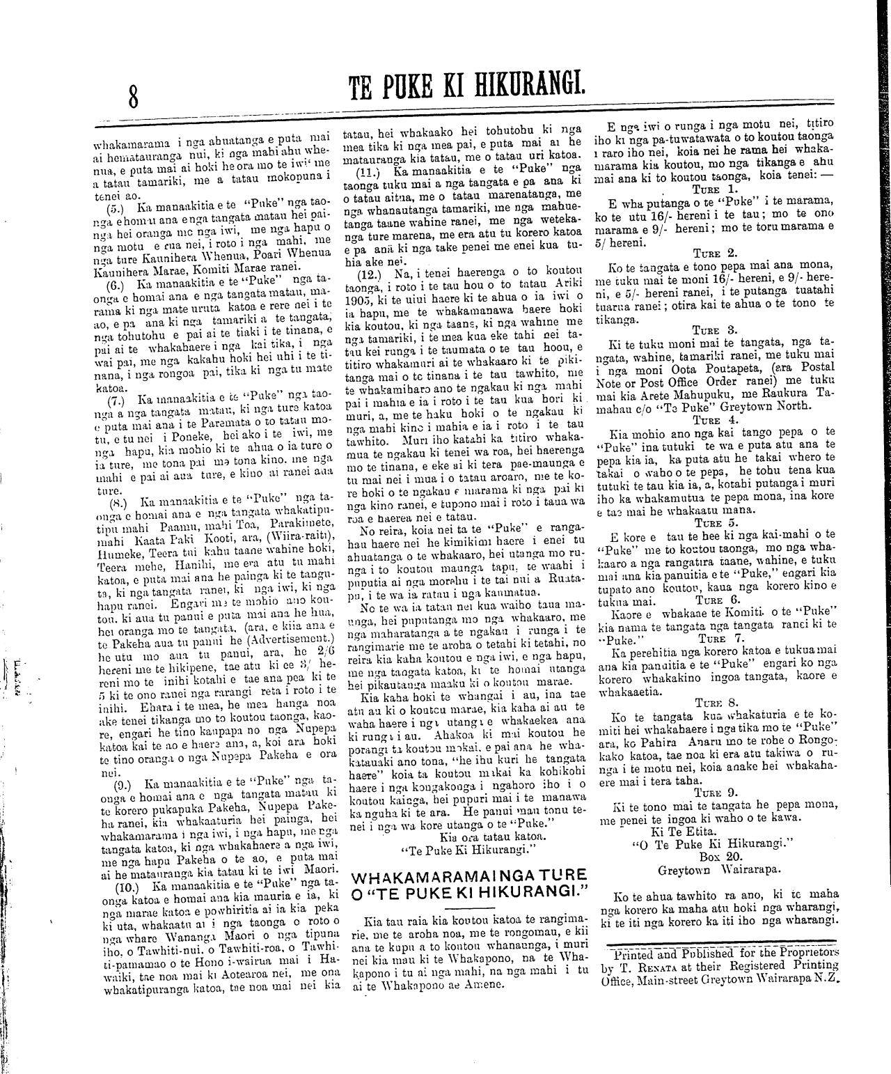 Te Puke Ki Hikurangi 1897-1913: Volume 6, Number 10. 15 May 1905 |