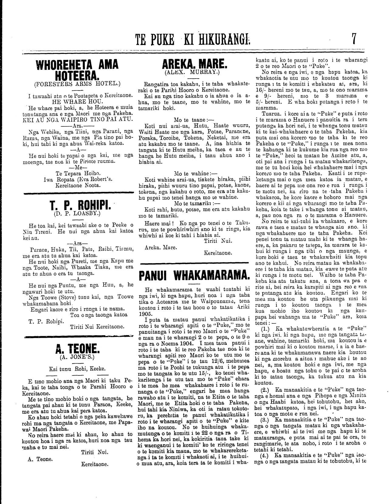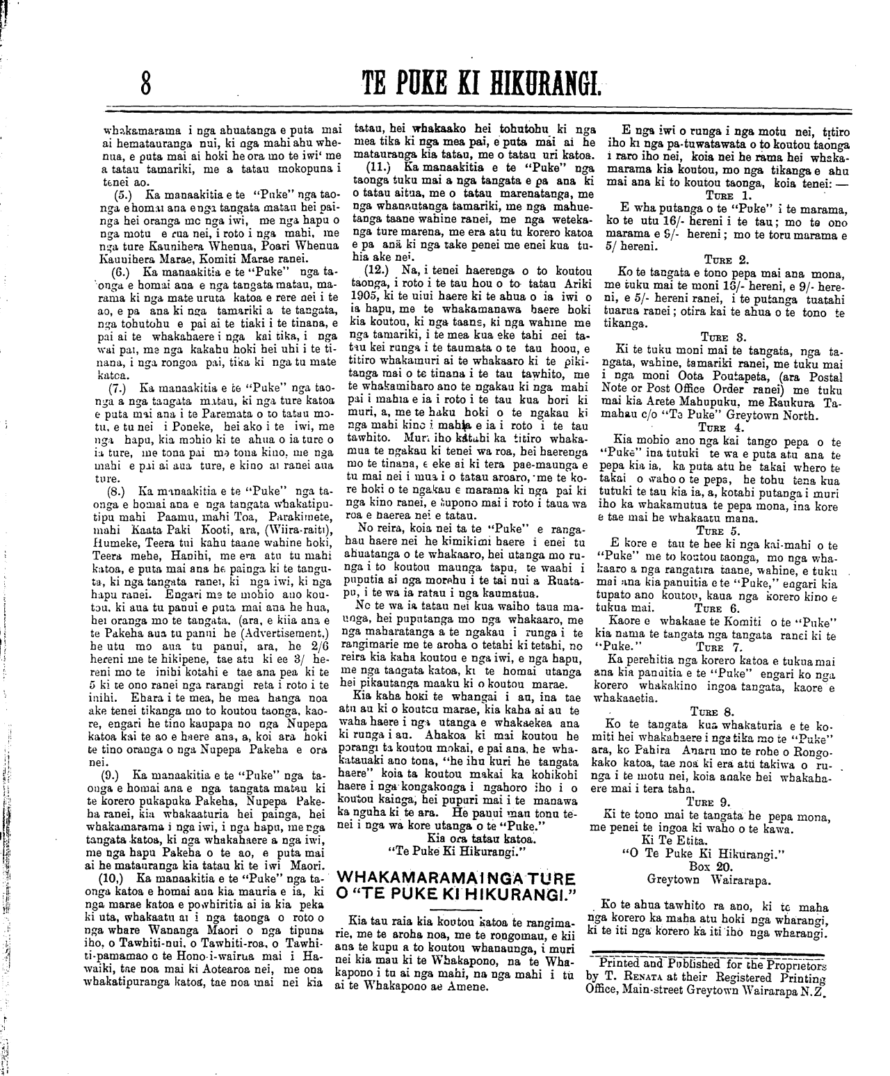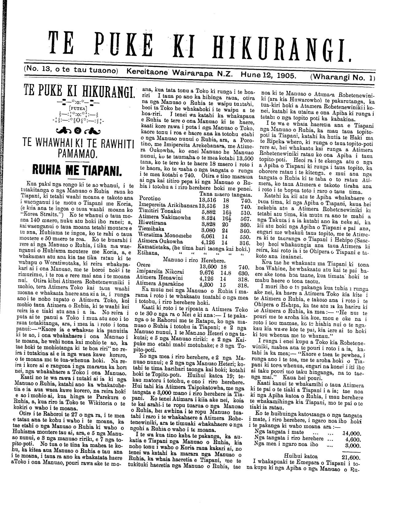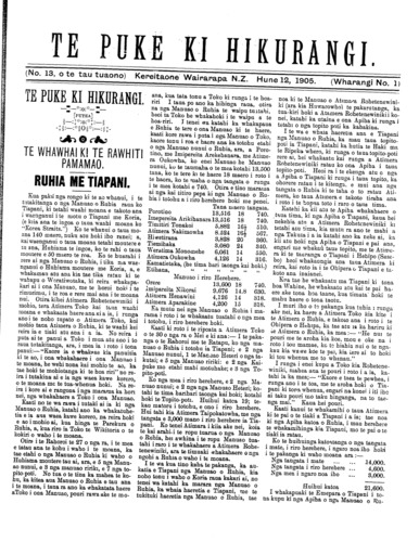 (No. 13, o te tau tuaono) Kereitaone Wairarapa N.Z. Hune 12, 1905. (Wharangi No. 1)