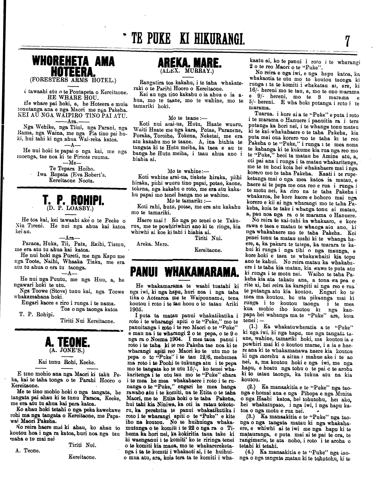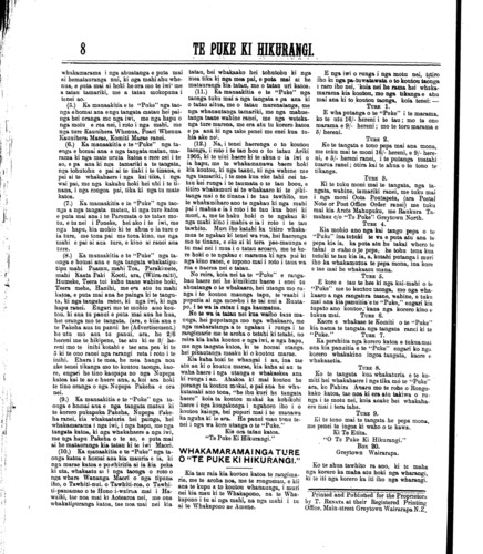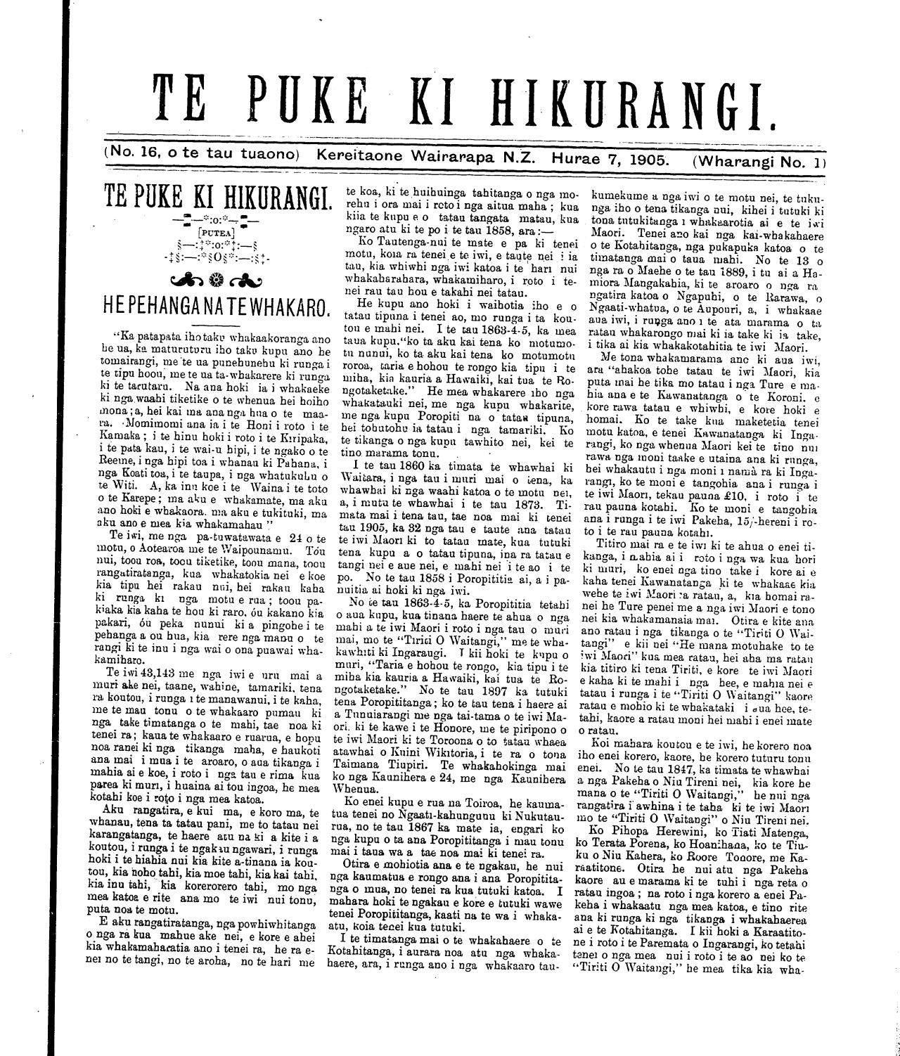 (No. 16, o te tau tuaono) Kereitaone Wairarapa N.Z. Hurae 7, 1905. (Wharangi No. 1)