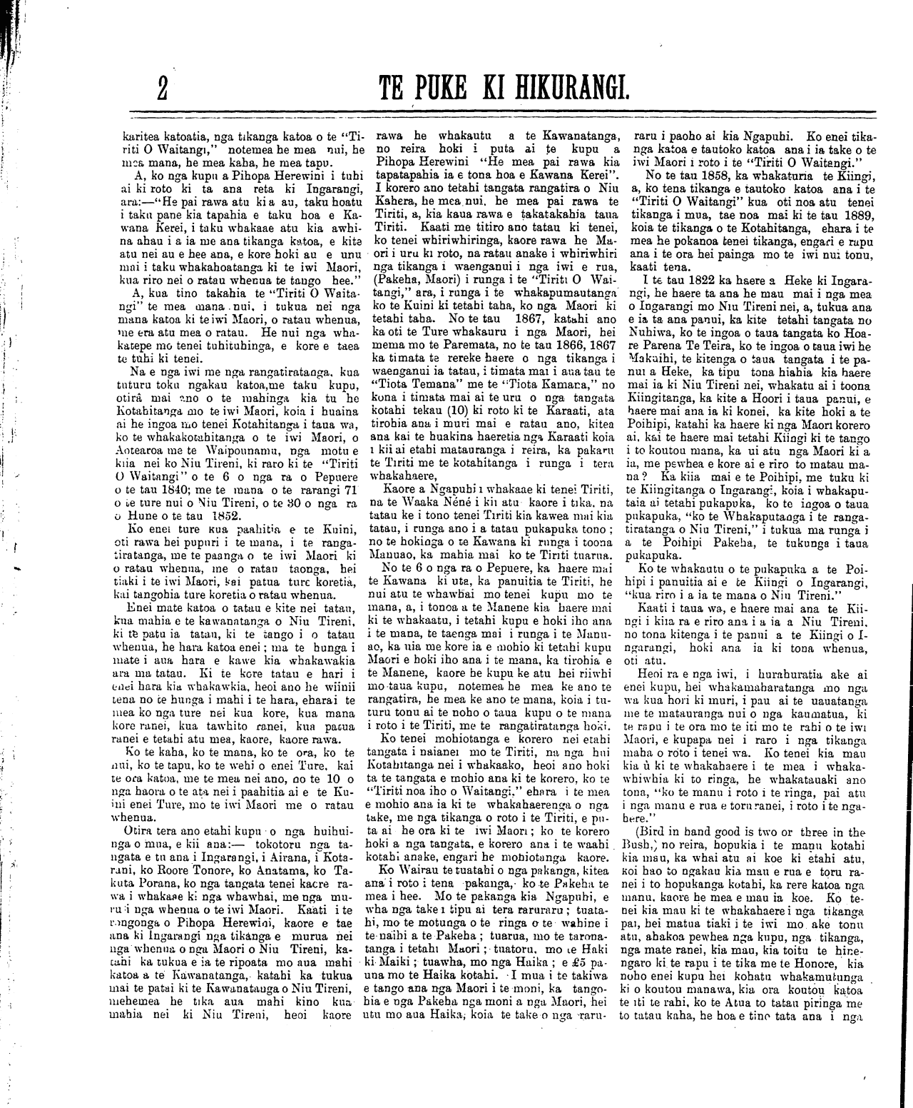 mai, mo te "Tiriti O Waitangi," me te wha-