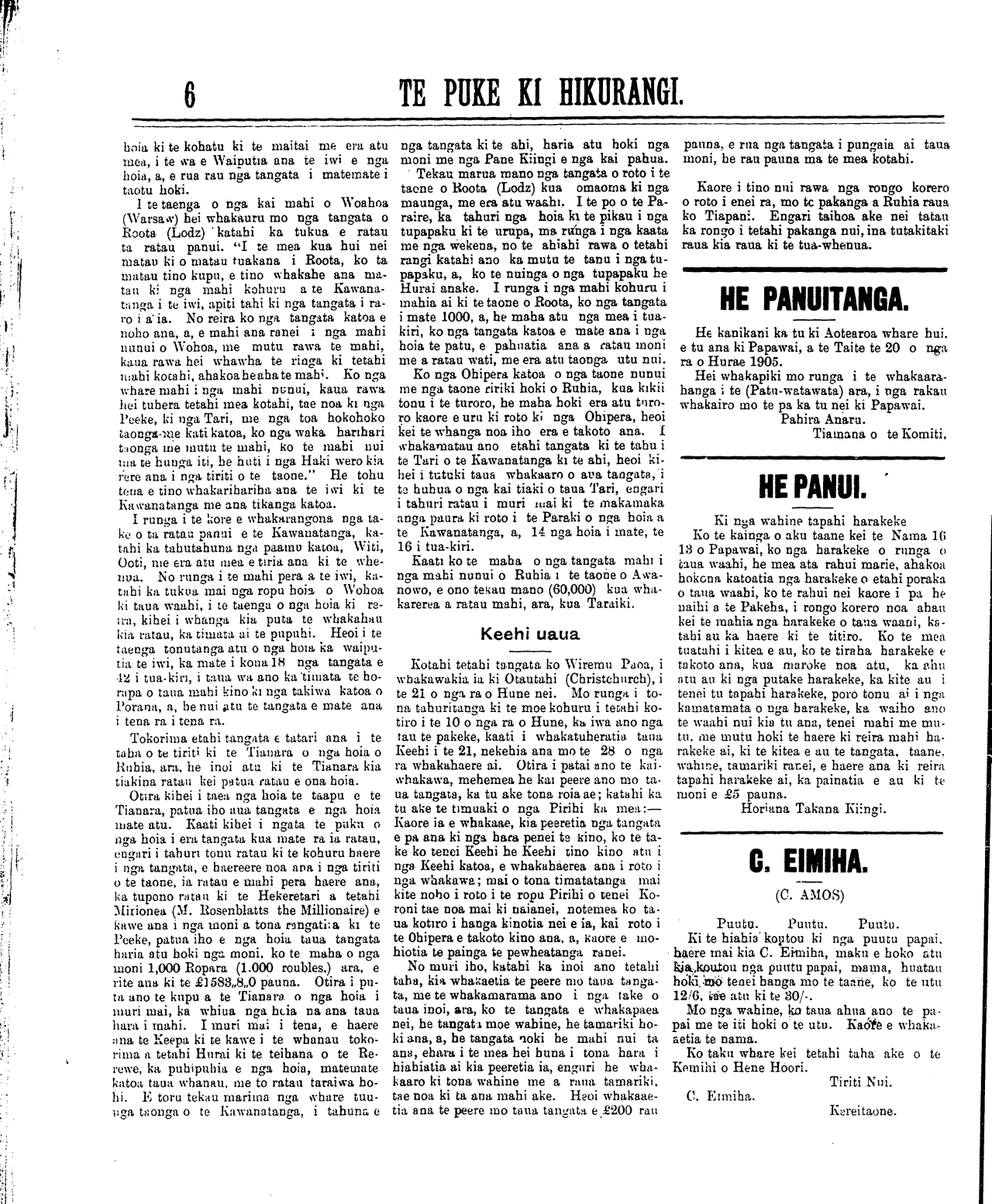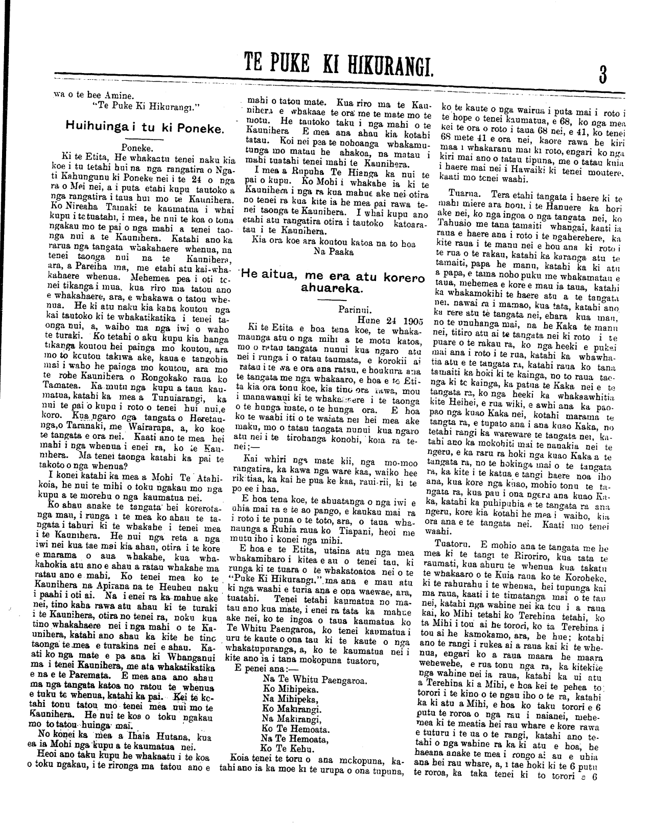 Te Puke Ki Hikurangi 1897-1913: Volume 6, Number 16. 07 July 1905 |