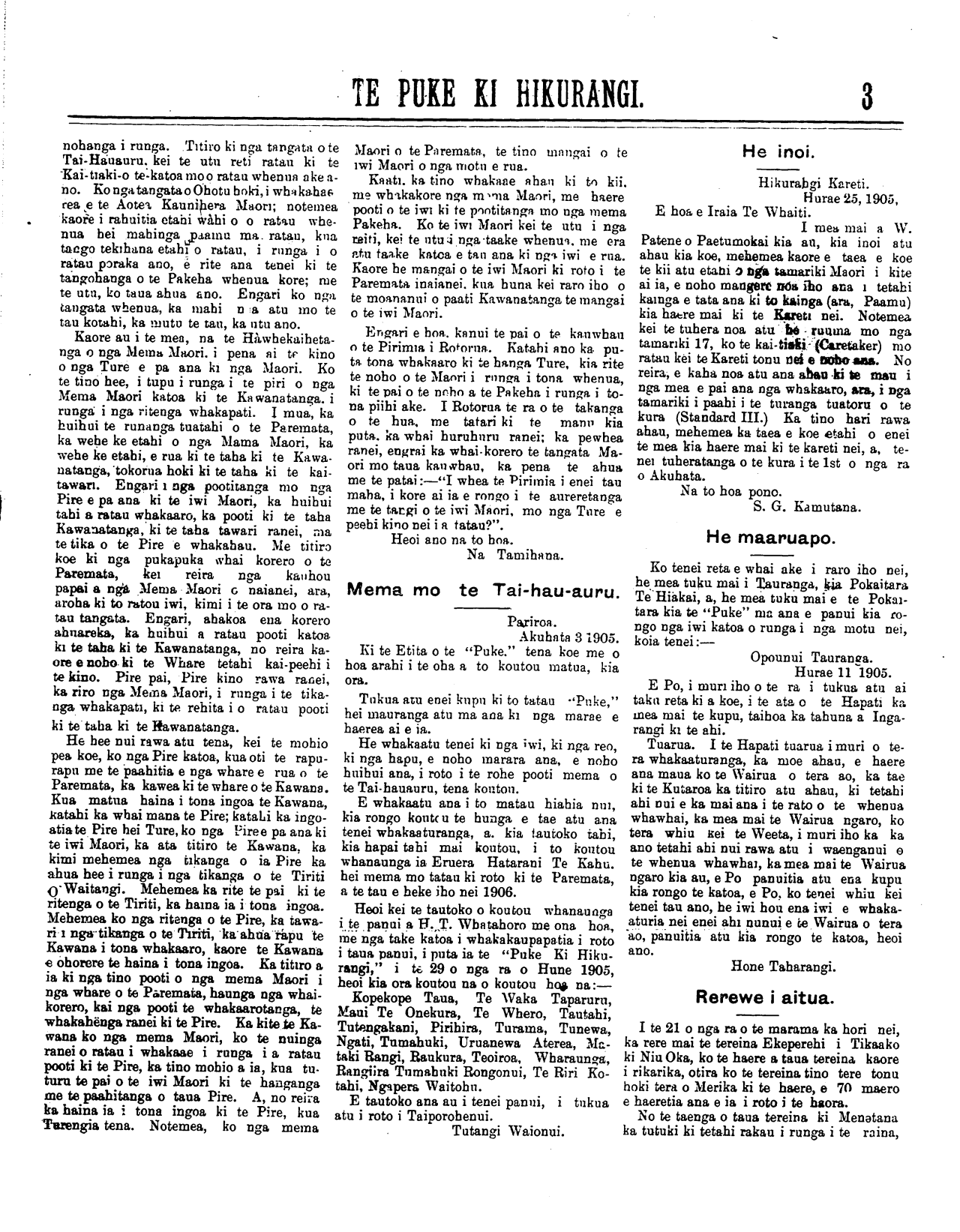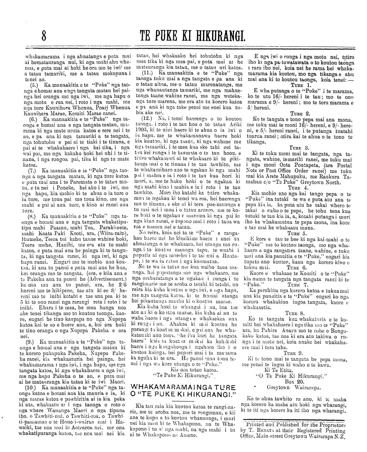 Te Puke Ki Hikurangi 1897-1913: Volume 6, Number 19. 12 August 1905 |