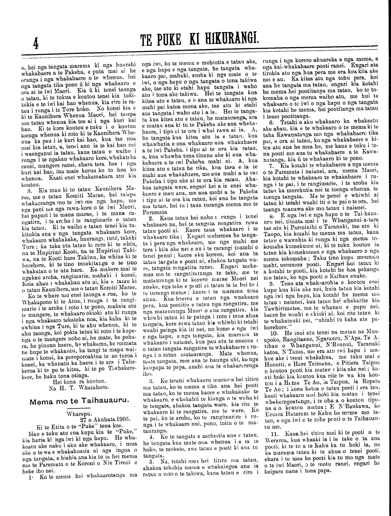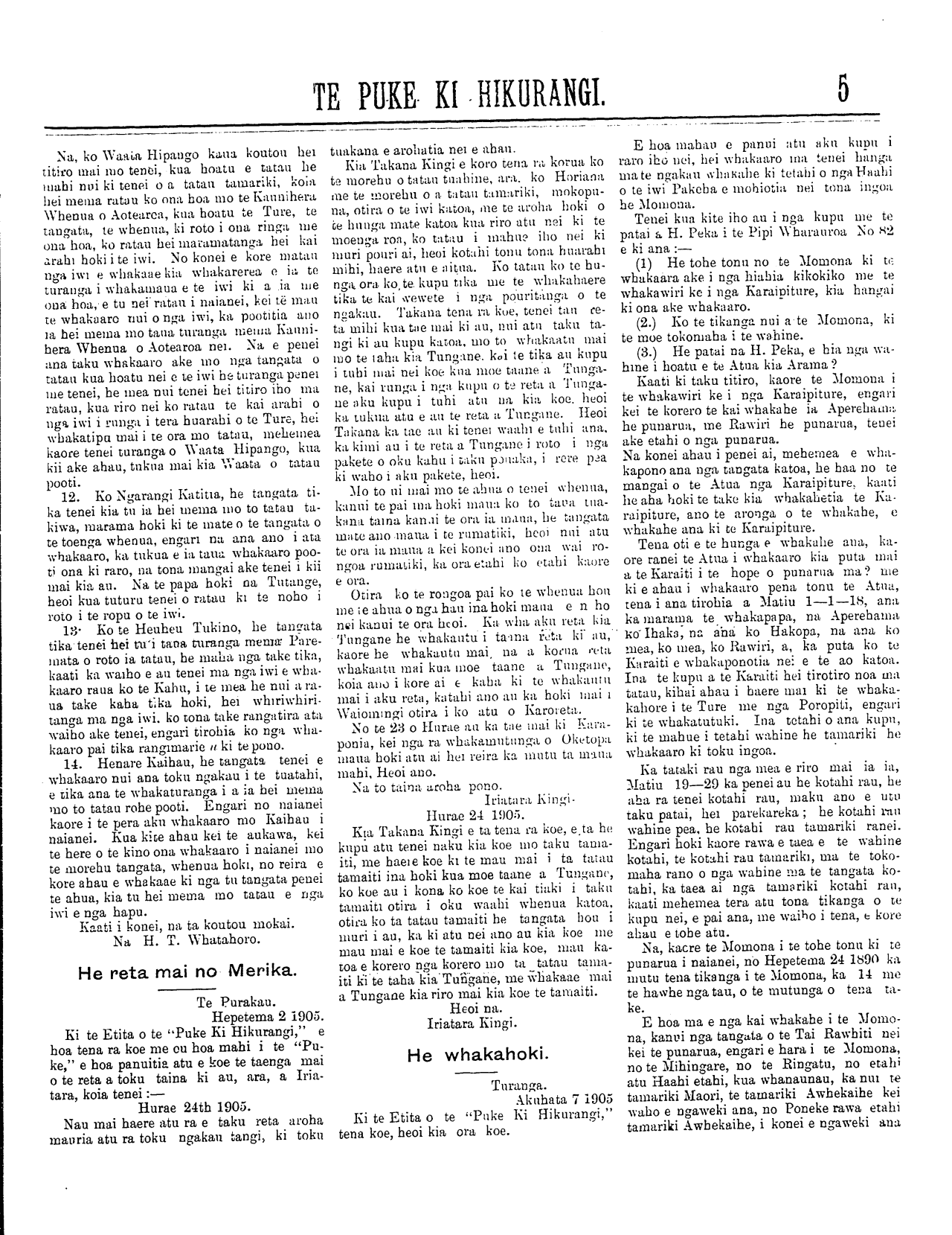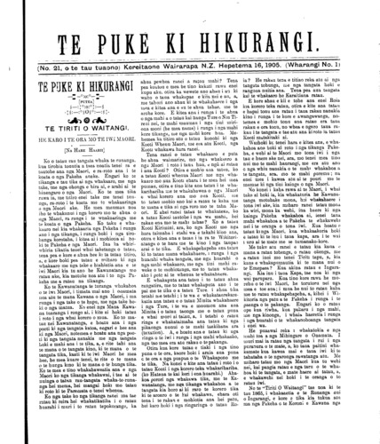 (No. 21, o te tau tuaono) Kereitaone Wairarapa N.Z. Hepetema 16, 1905. (Wharangi No. 1)