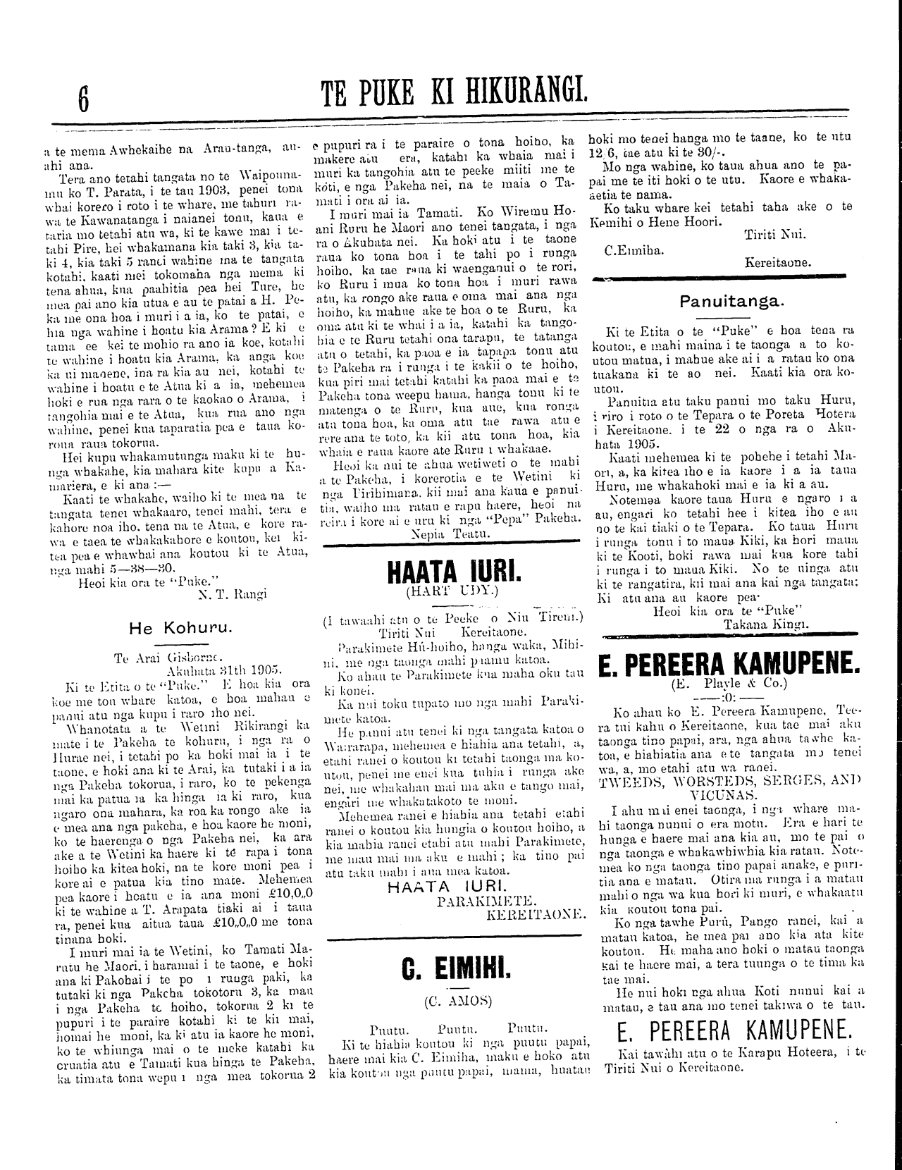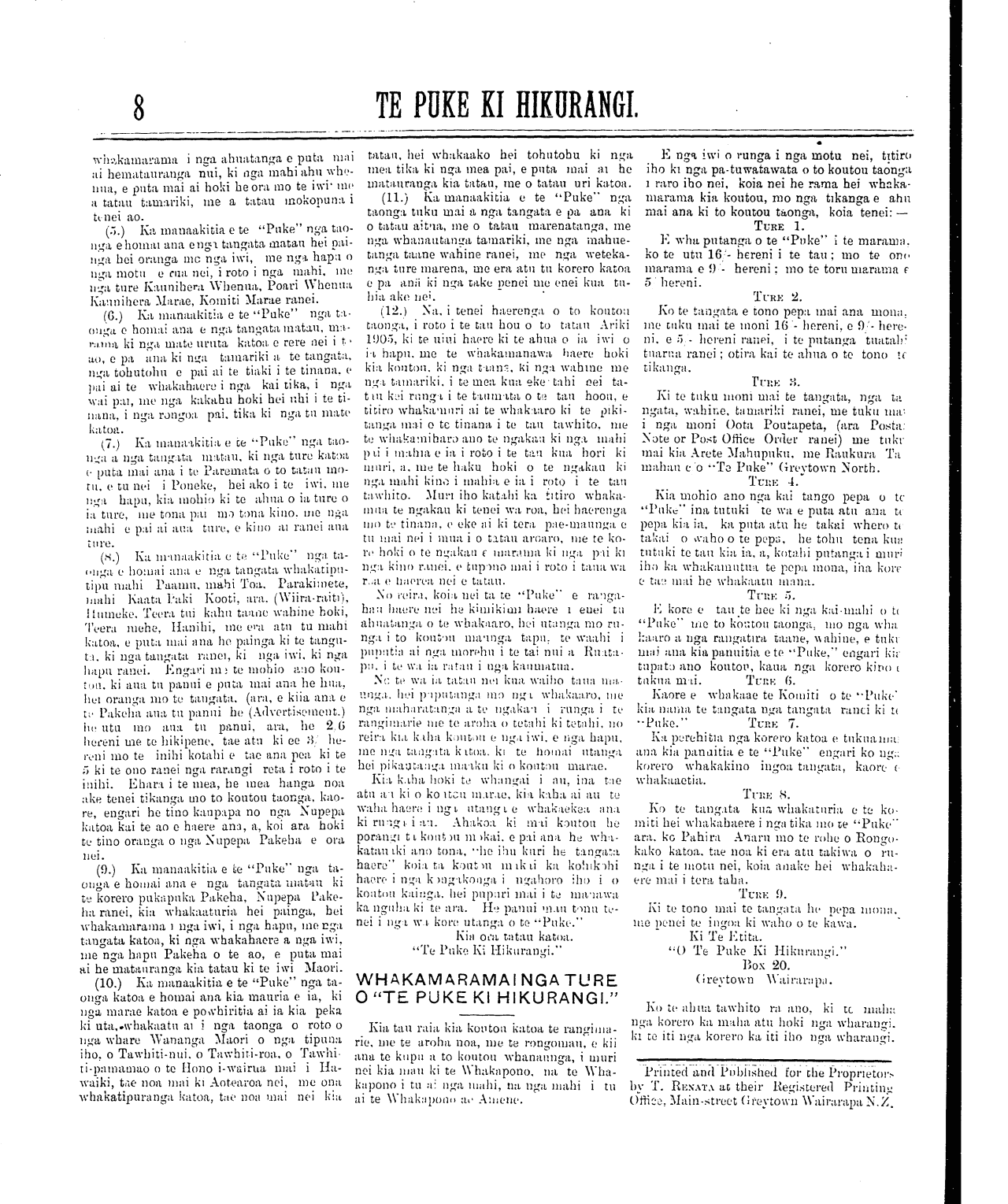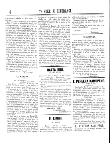 Te Puke Ki Hikurangi 1897-1913: Volume 6, Number 21. 16 September 1905 |