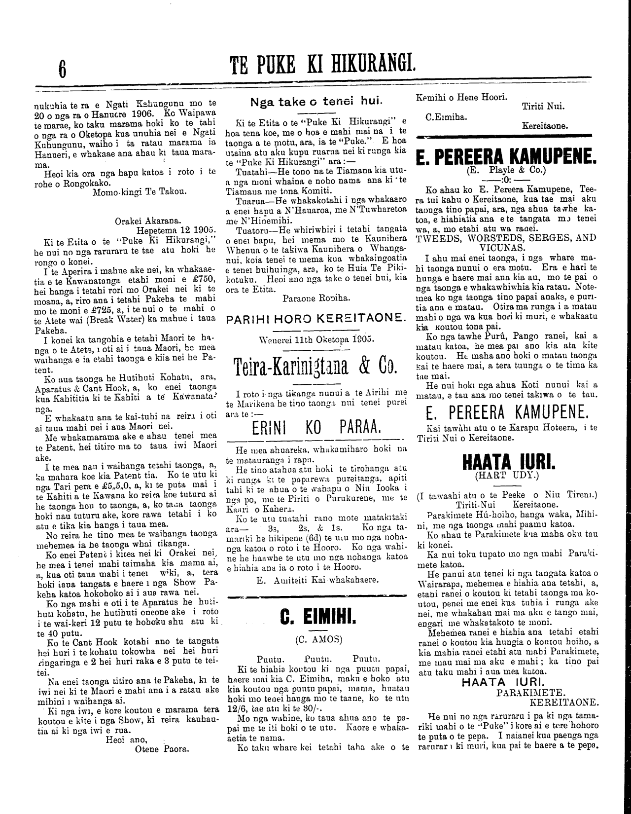 Te Puke Ki Hikurangi 1897-1913: Volume 6, Number 22. 27 October 1905 |