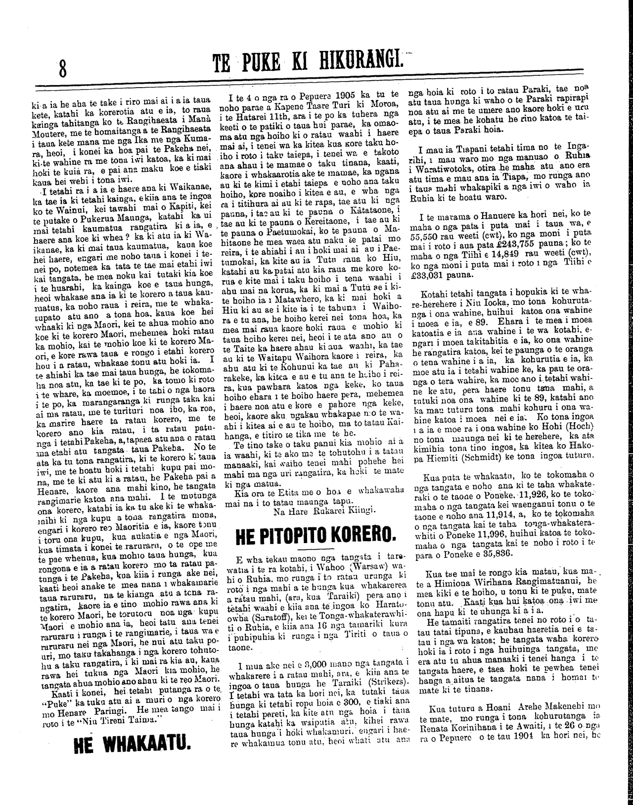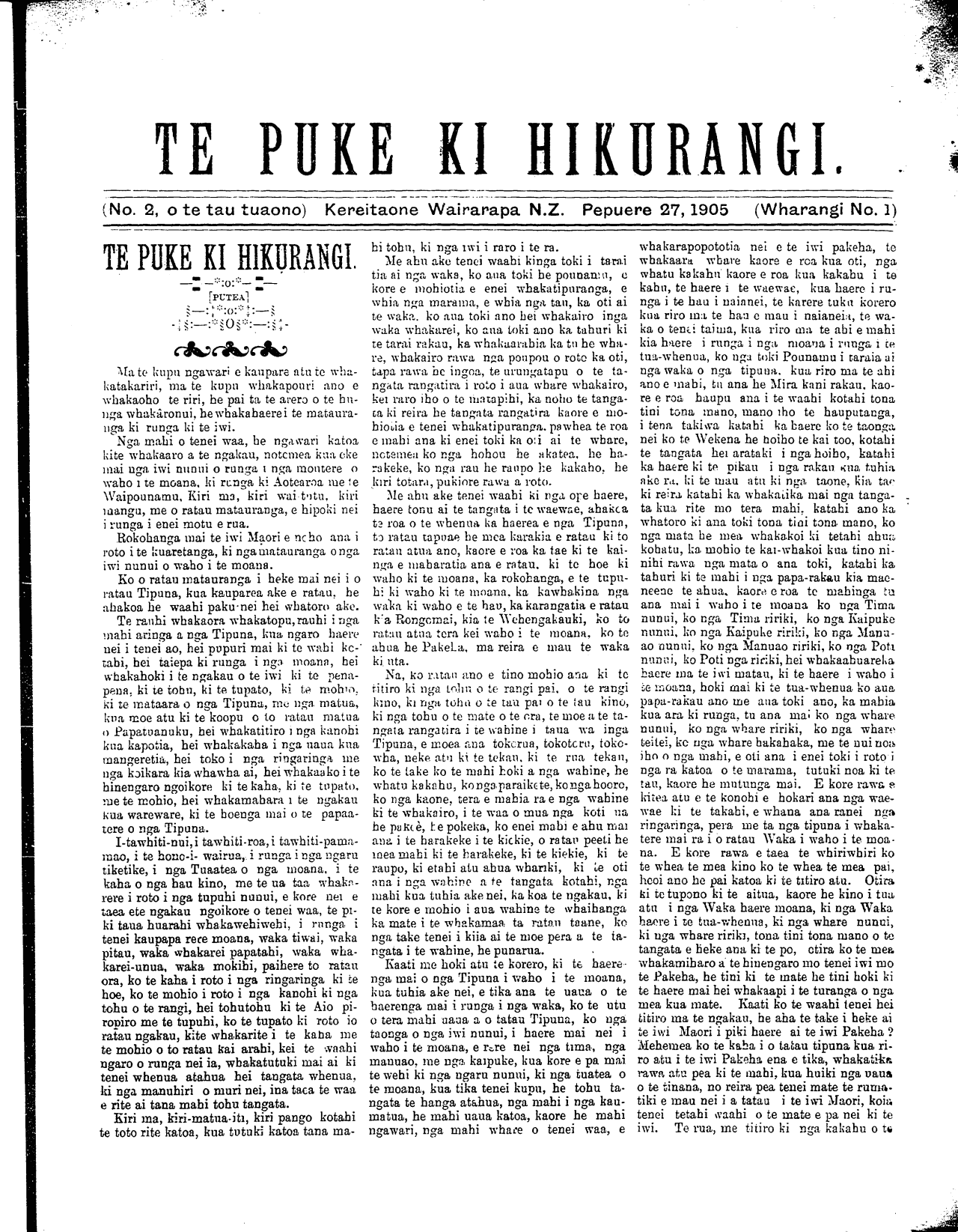 (No. 2, o te tau tuaono) Kereitaone Wairarapa N.Z. Pepuere 27, 1905 (Wharangi No. 1)