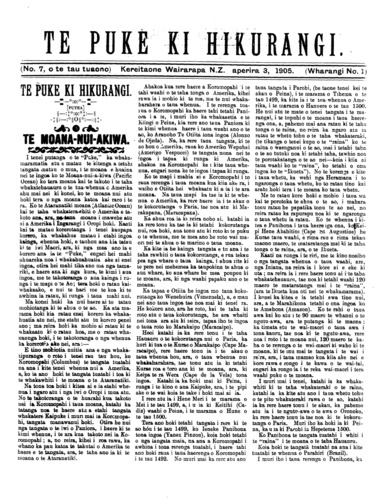 (No. 7, o te tau tuaono) Kereitaone Wairarapa N.Z. aperira 3, 1905. (Wharangi No. 1)