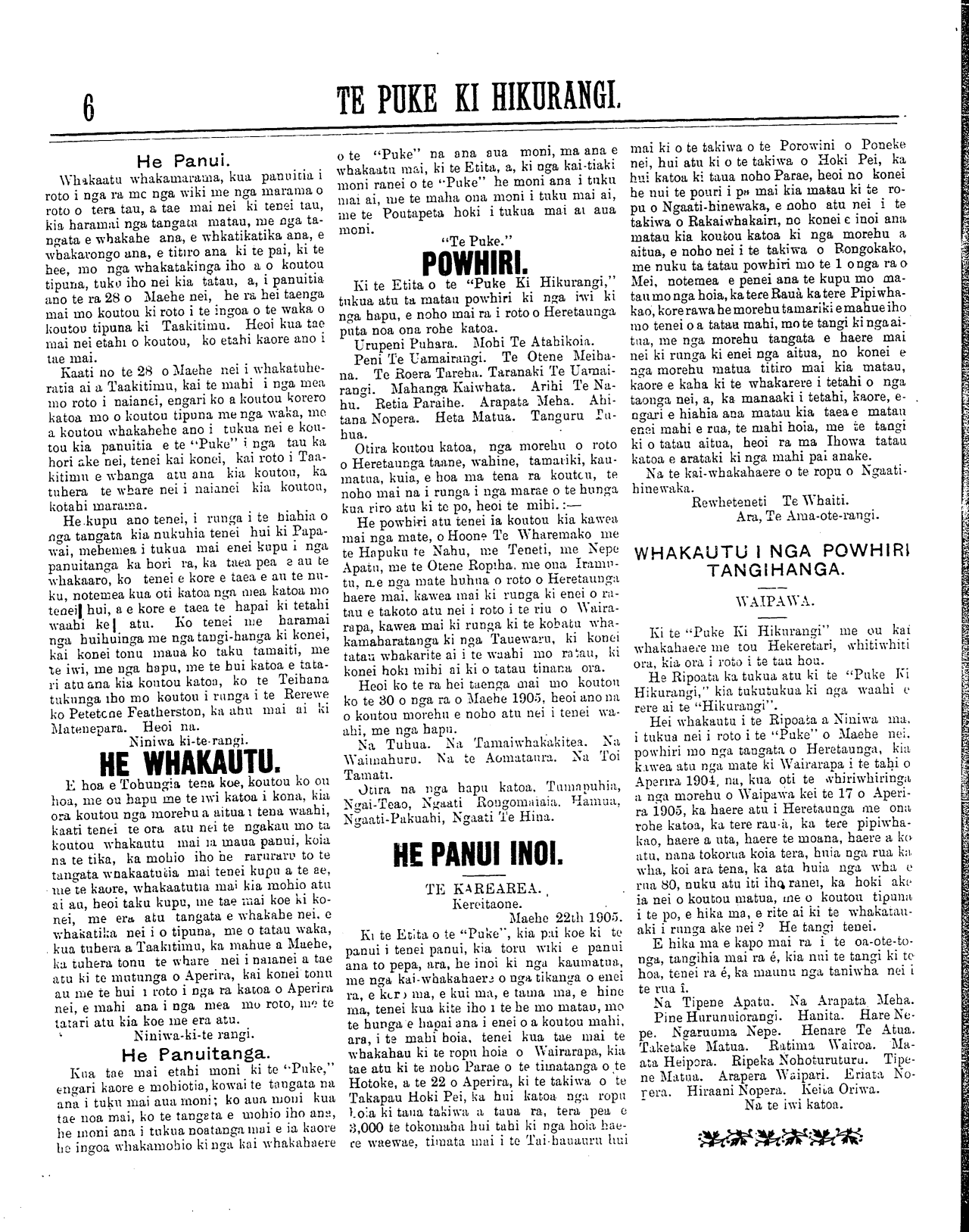 Te Puke Ki Hikurangi 1897-1913: Volume 6, Number 7. 03 April 1905 |