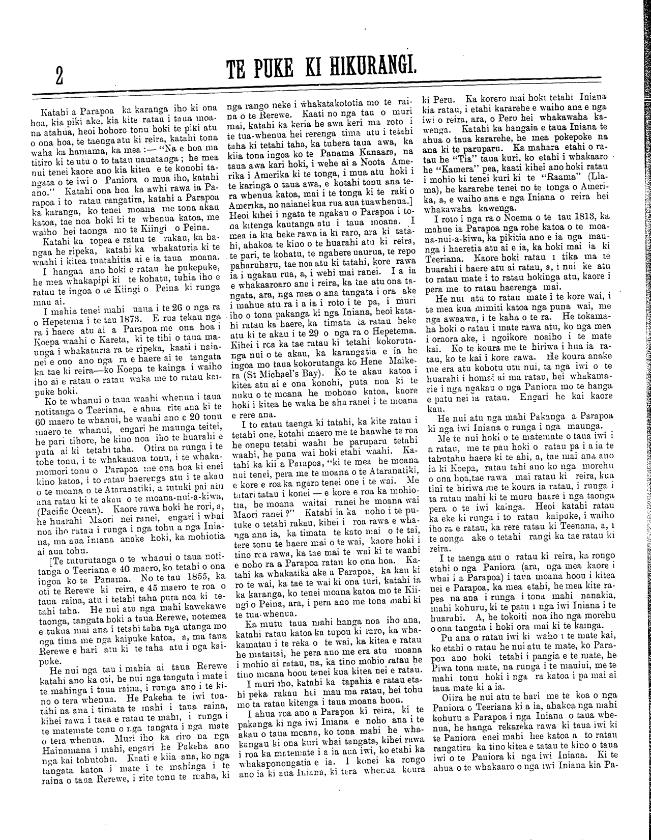 oma ai te tino rangatira o taua iwi Iniana,