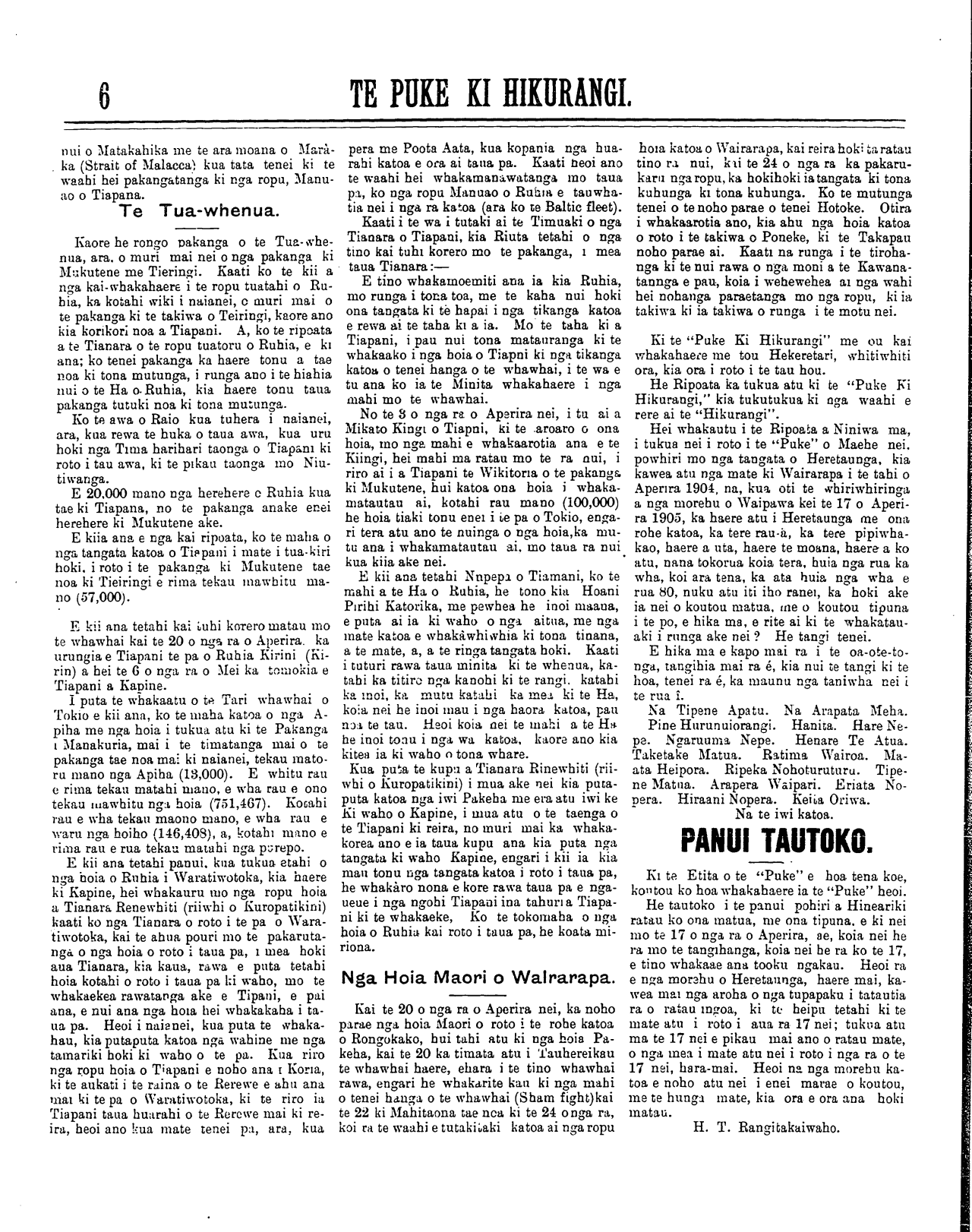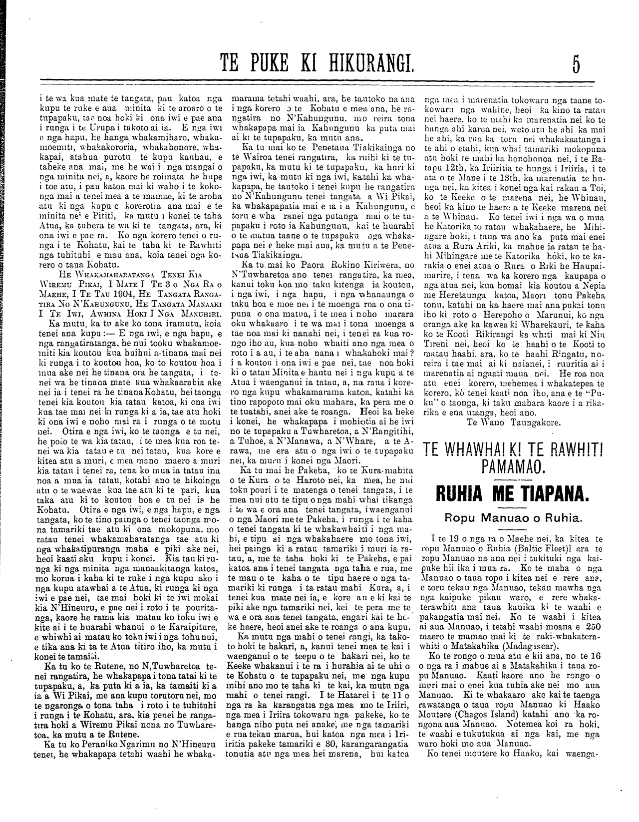 Te Puke Ki Hikurangi 1897-1913: Volume 6, Number 8. 10 April 1905 |