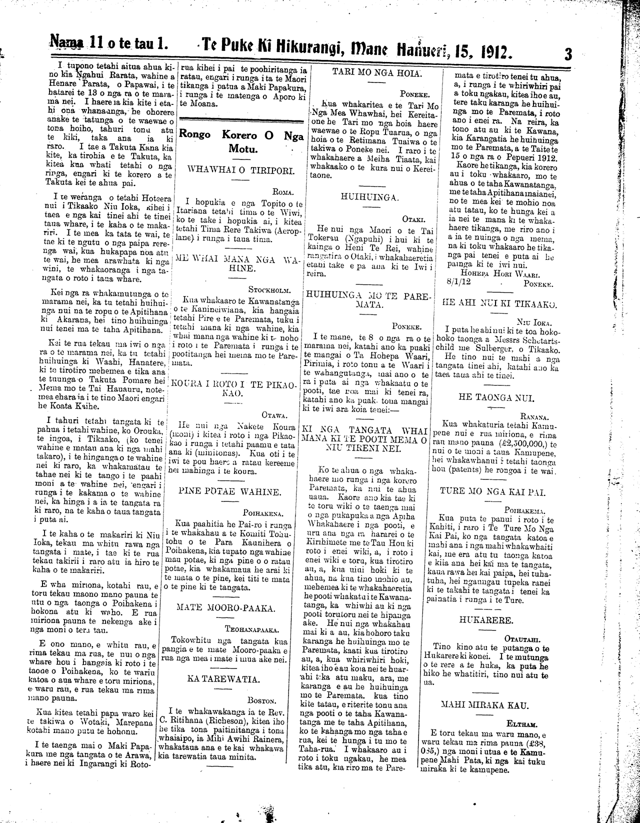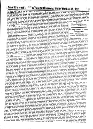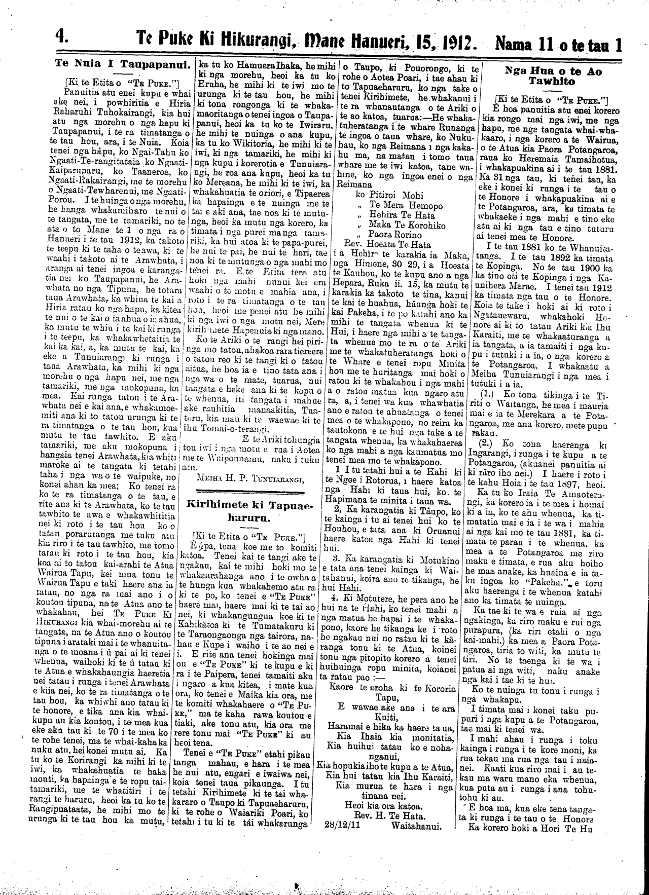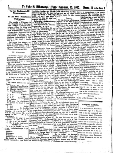 2. Te Puke Ki Hikurangi, Mane Hanueri, 15,1912. Nama 11 o te tau 1