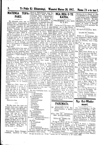 Te Puke Ki Hikurangi 1897-1913: Volume 7, Number 21. 26 July 1912 |