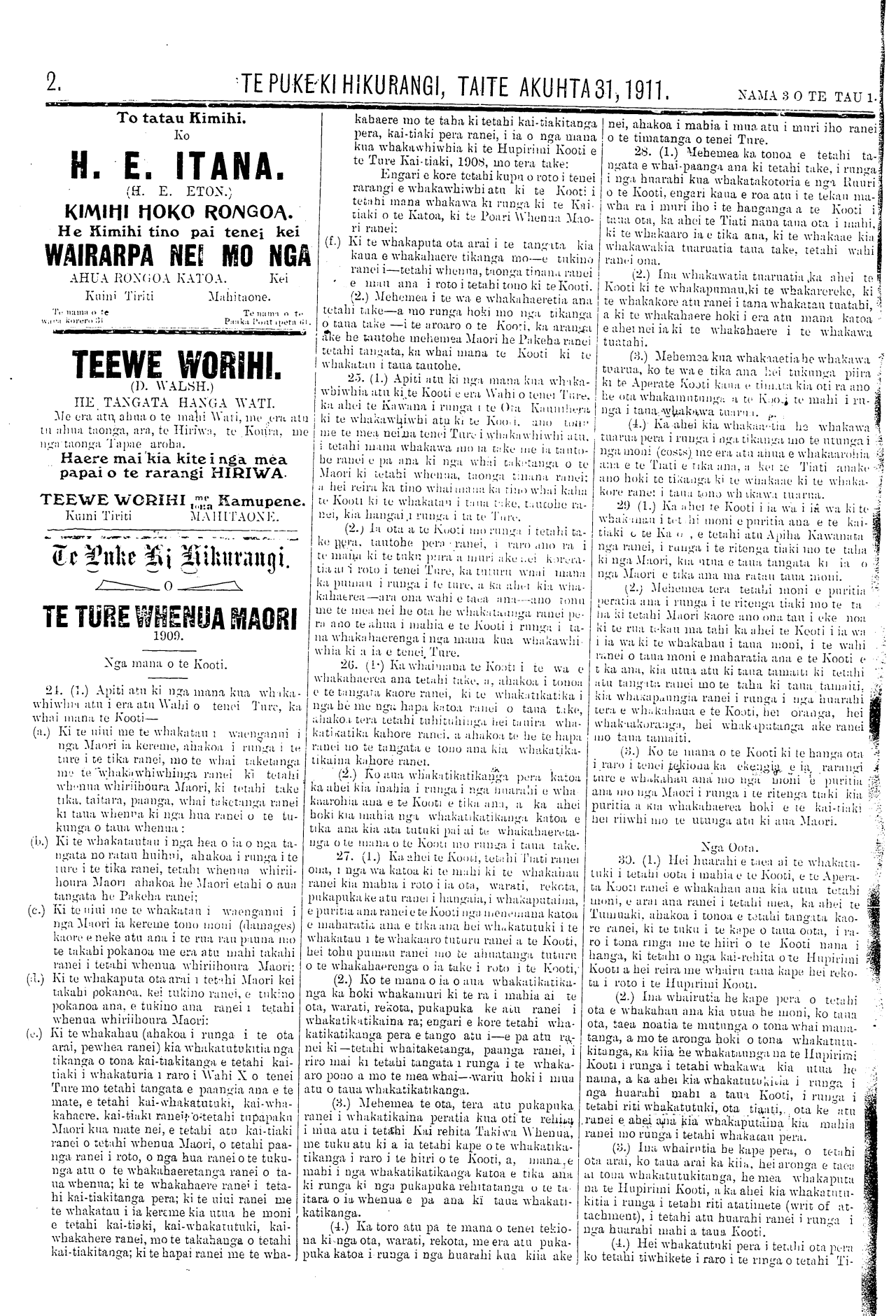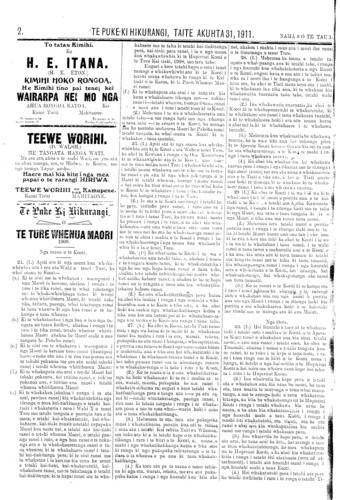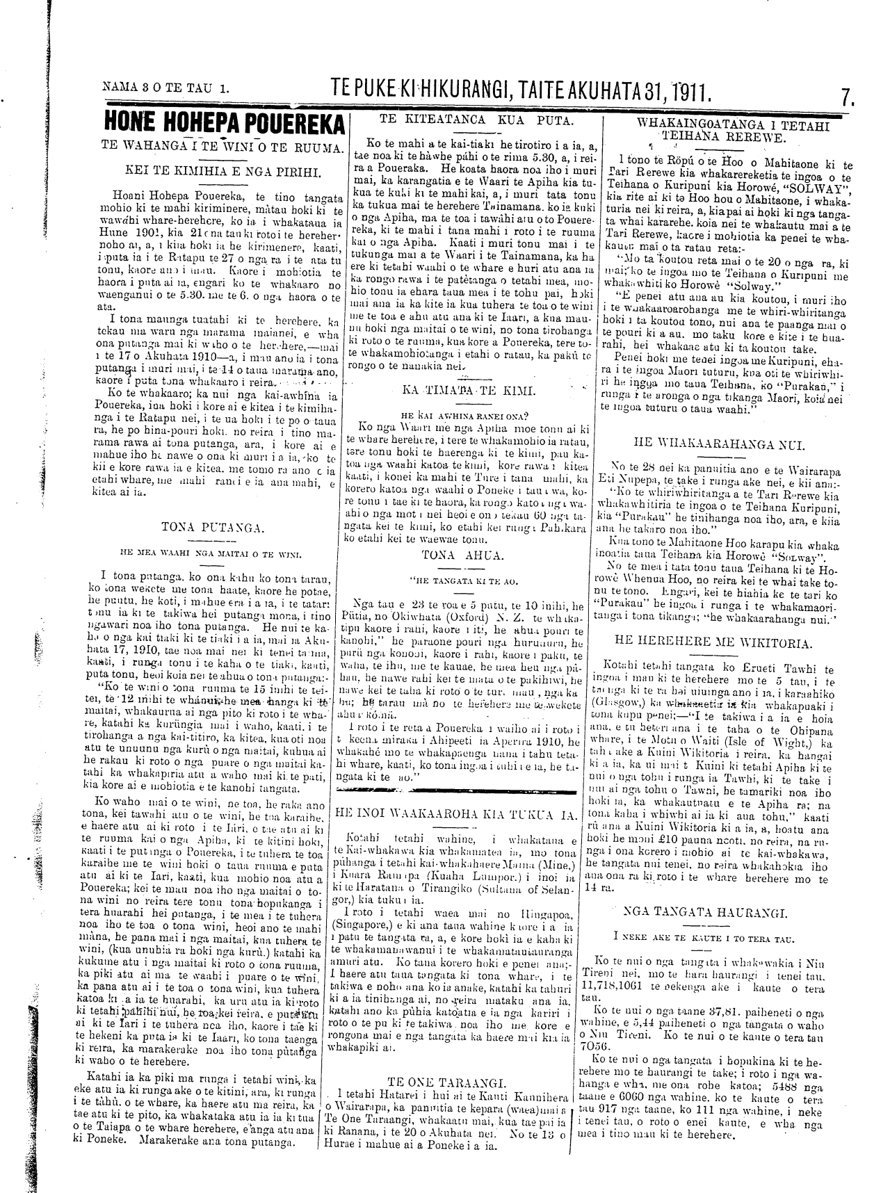 2. \_\_\_ TE PUKE KI HIKURANGI, TAITE AKUHTA 31,1911. NAMA 3 O TE TAU .