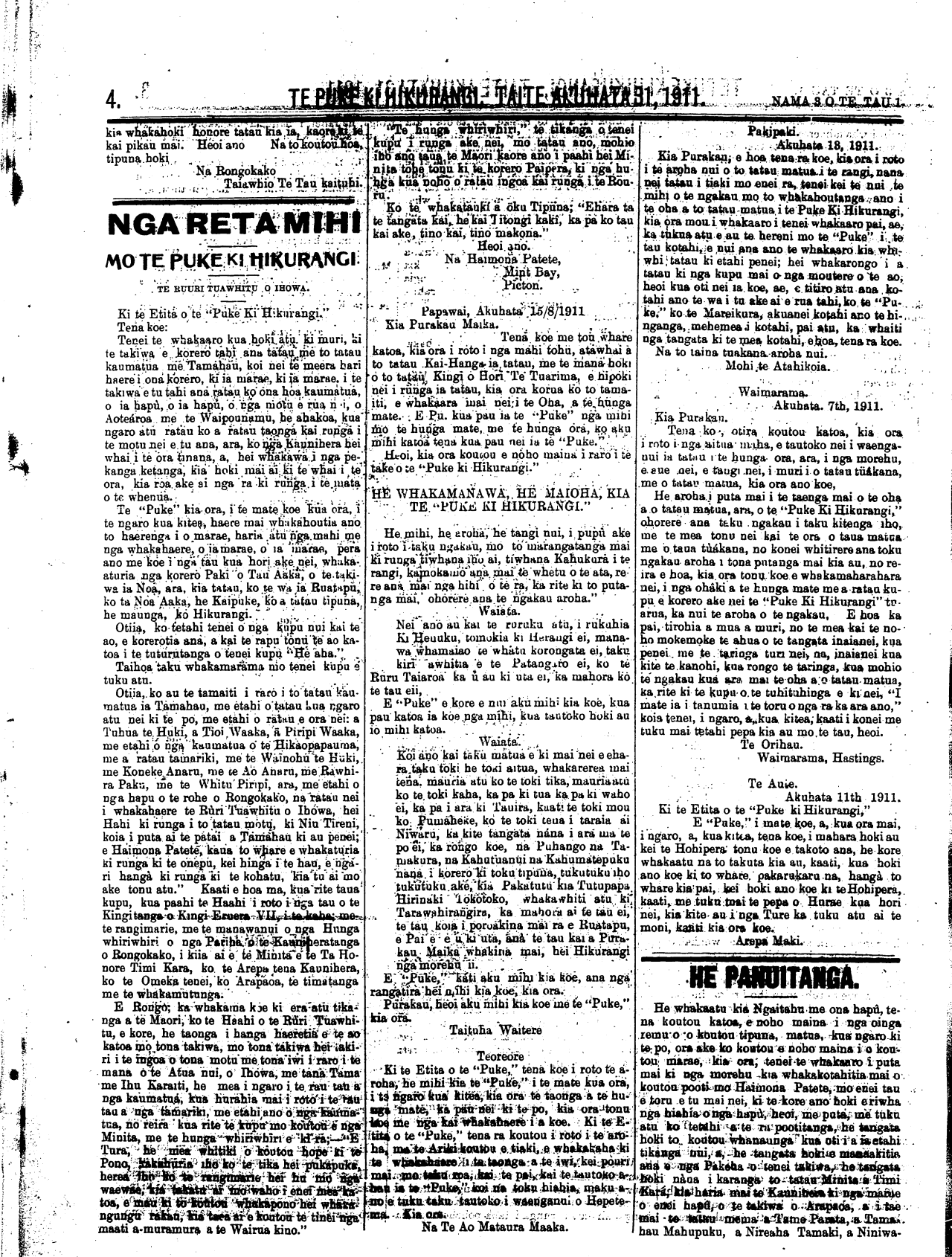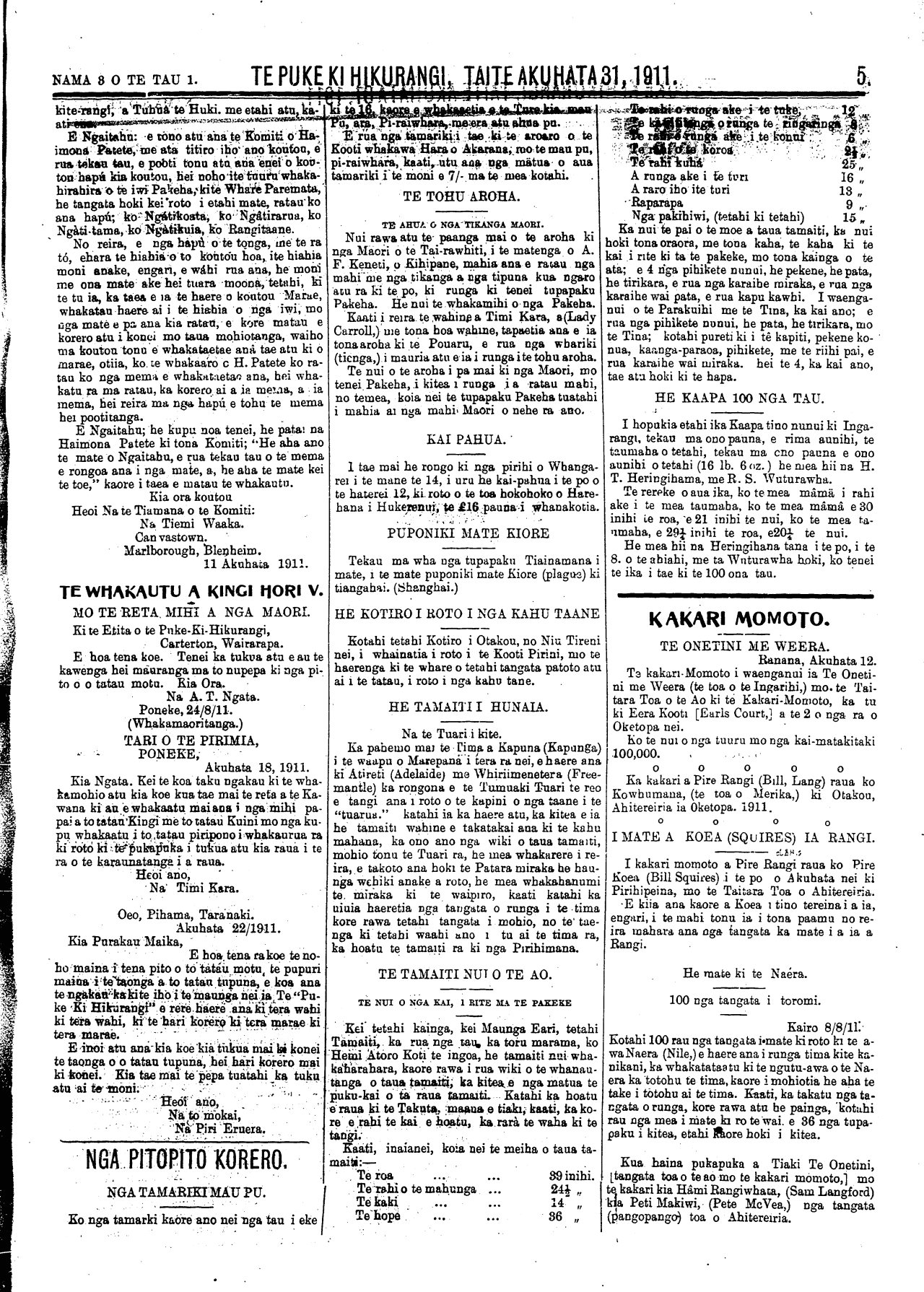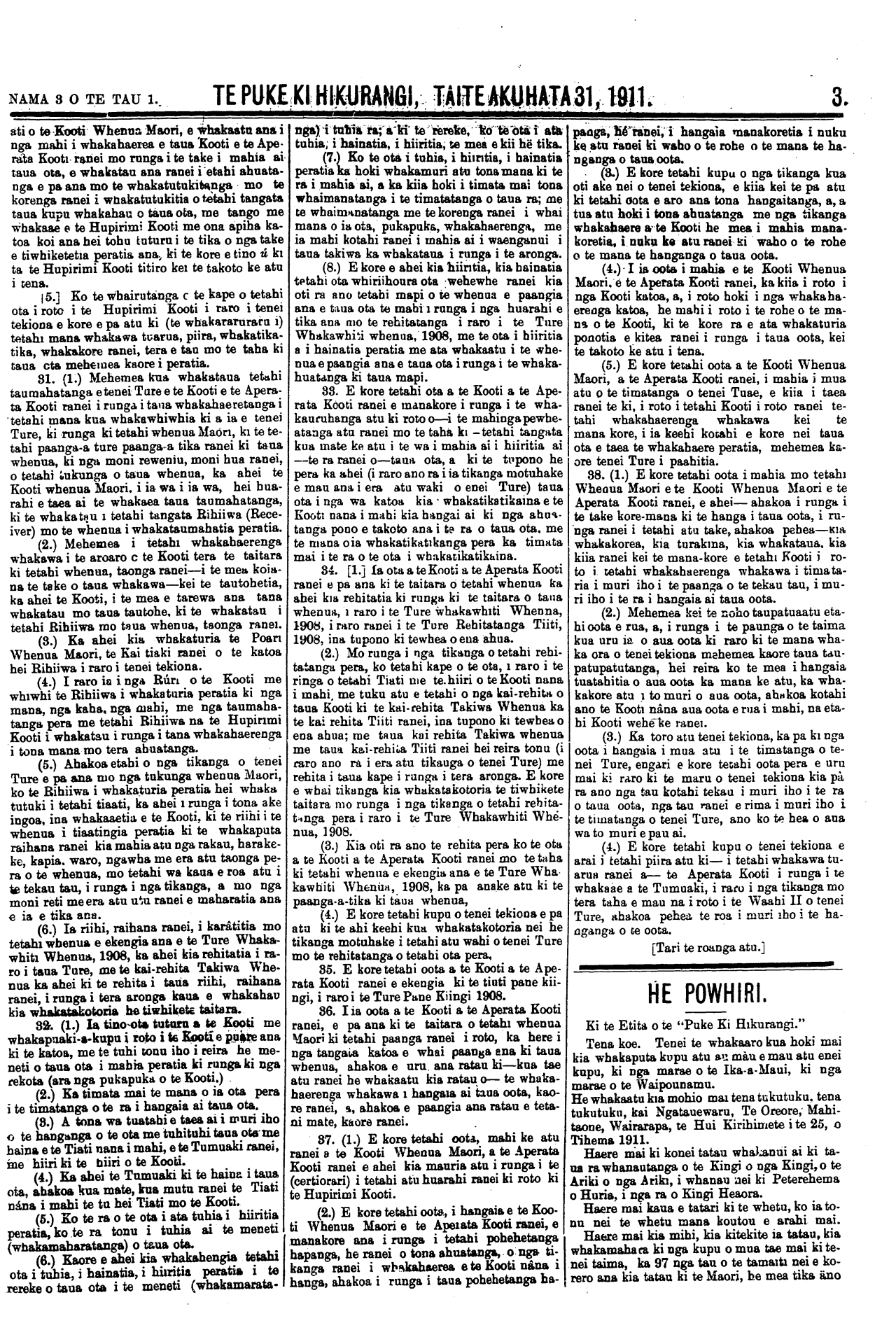 NAMA 3 O TE TAU 1, TE PUKE KI HIKURANGI, TAITE AKUHATA 31, 1911 3.