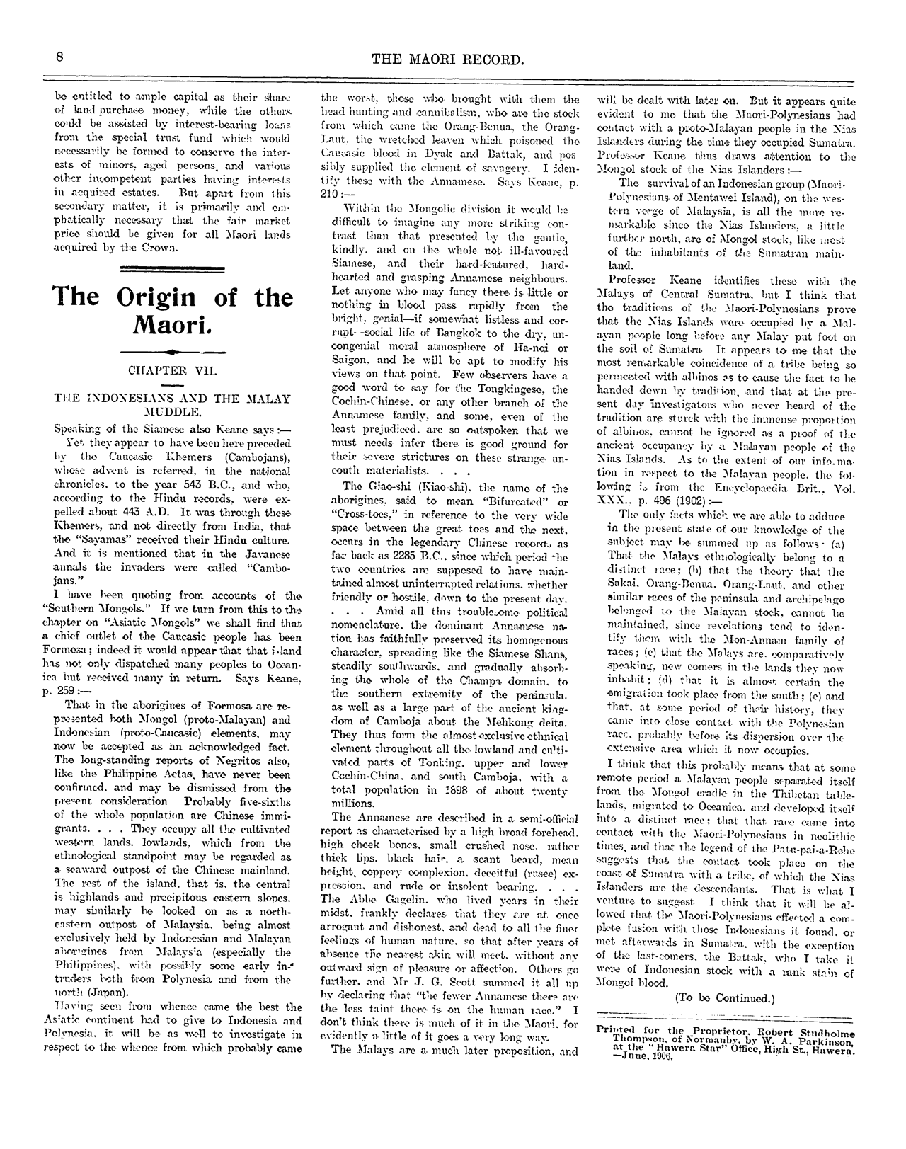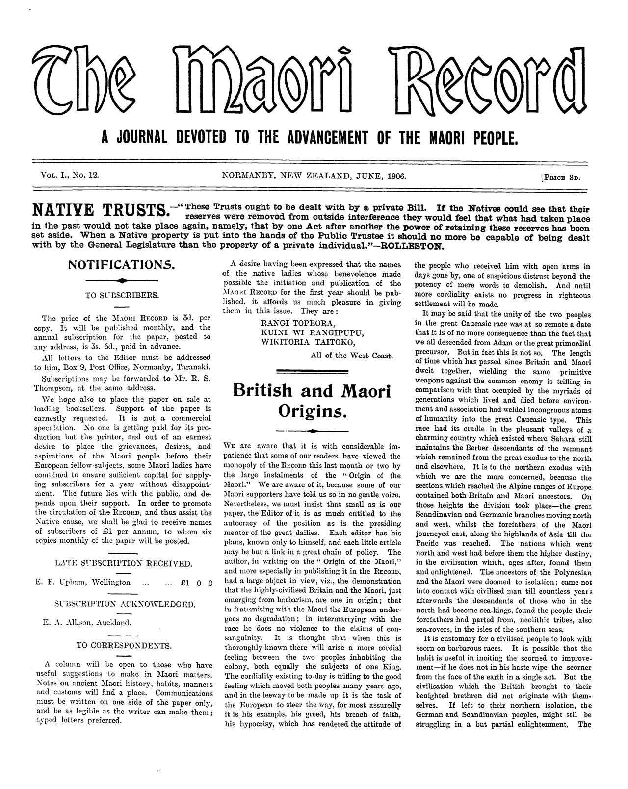 The Maori Record 1905-1907: Volume 1, Number 12. 01 June 1906 |