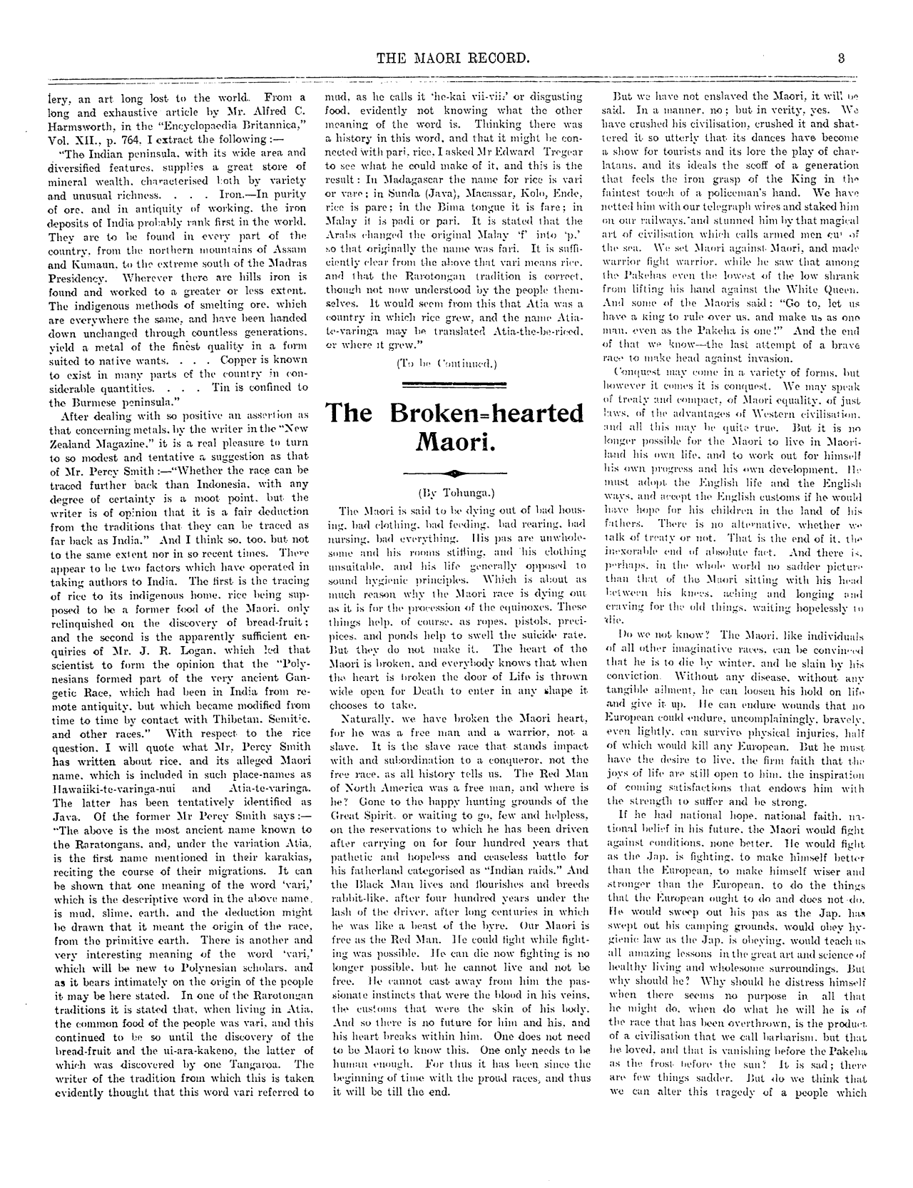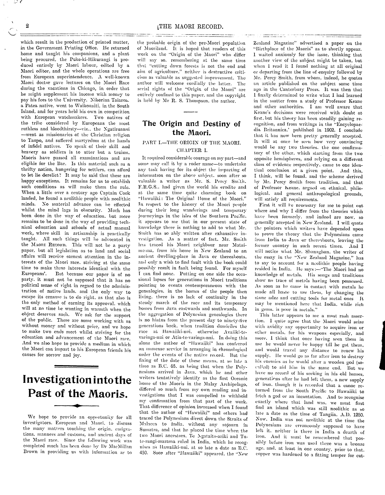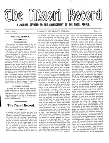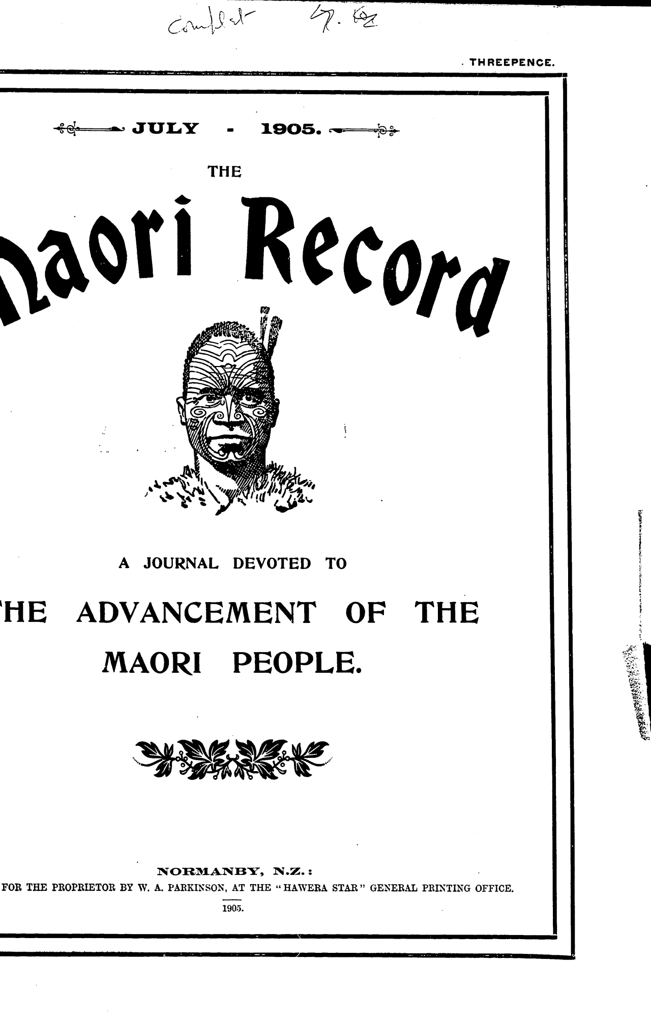 The Maori Record 1905-1907: Volume 1, Number 1. 01 July 1905 |