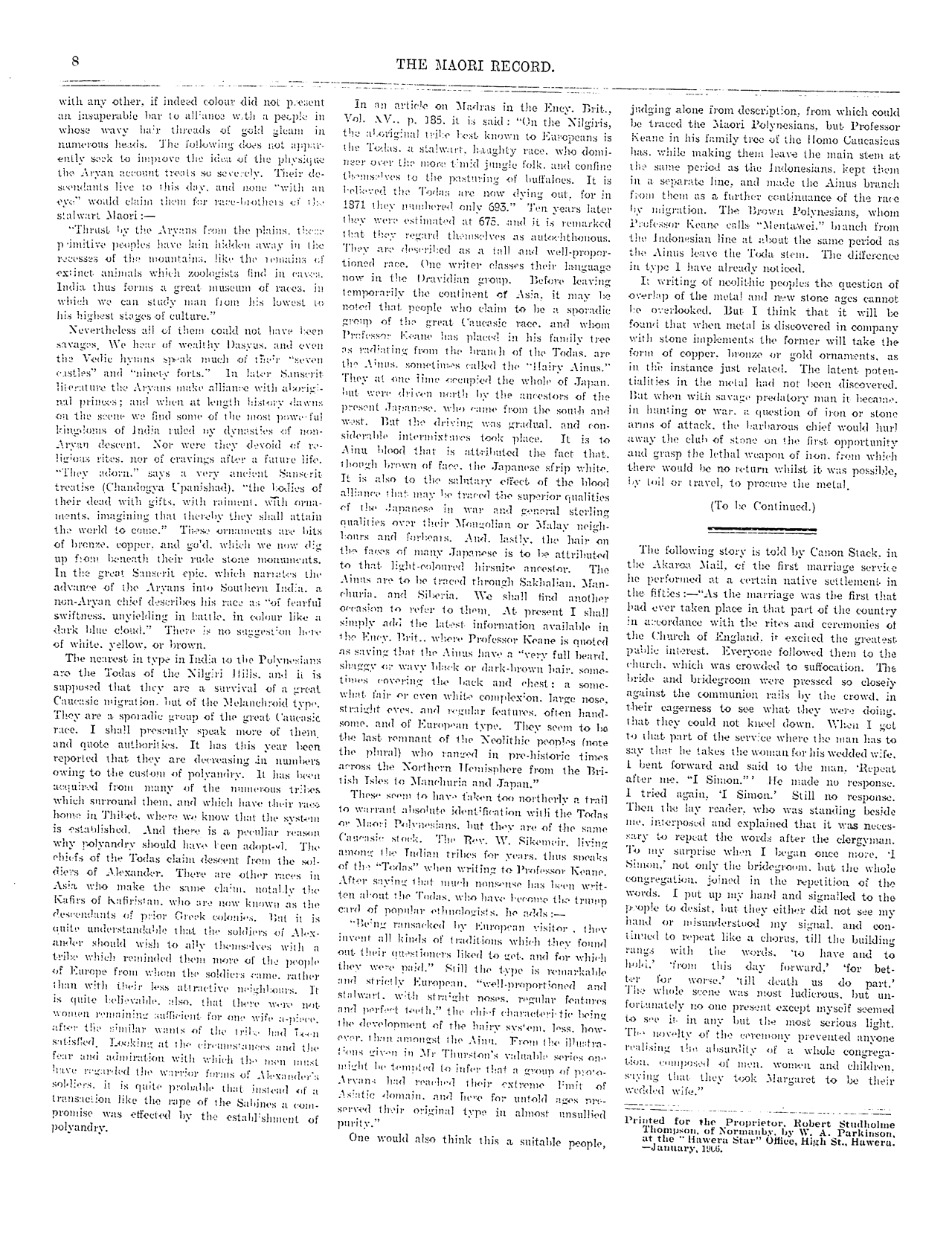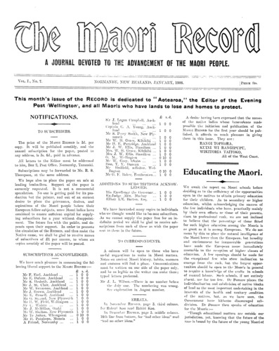 The Maori Record 1905-1907: Volume 1, Number 7. 01 January 1906 |