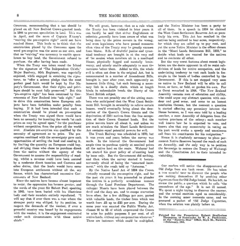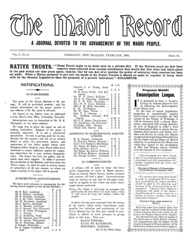 The Maori Record 1905-1907: Volume 1, Number 8. 01 February 1906 |