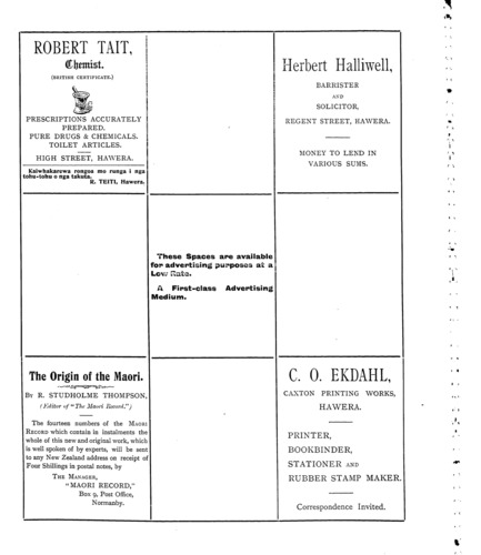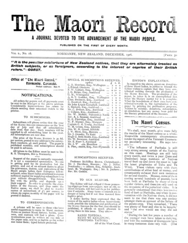 The Maori Record 1905-1907: Volume 2, Number 18. 01 December 1906 |