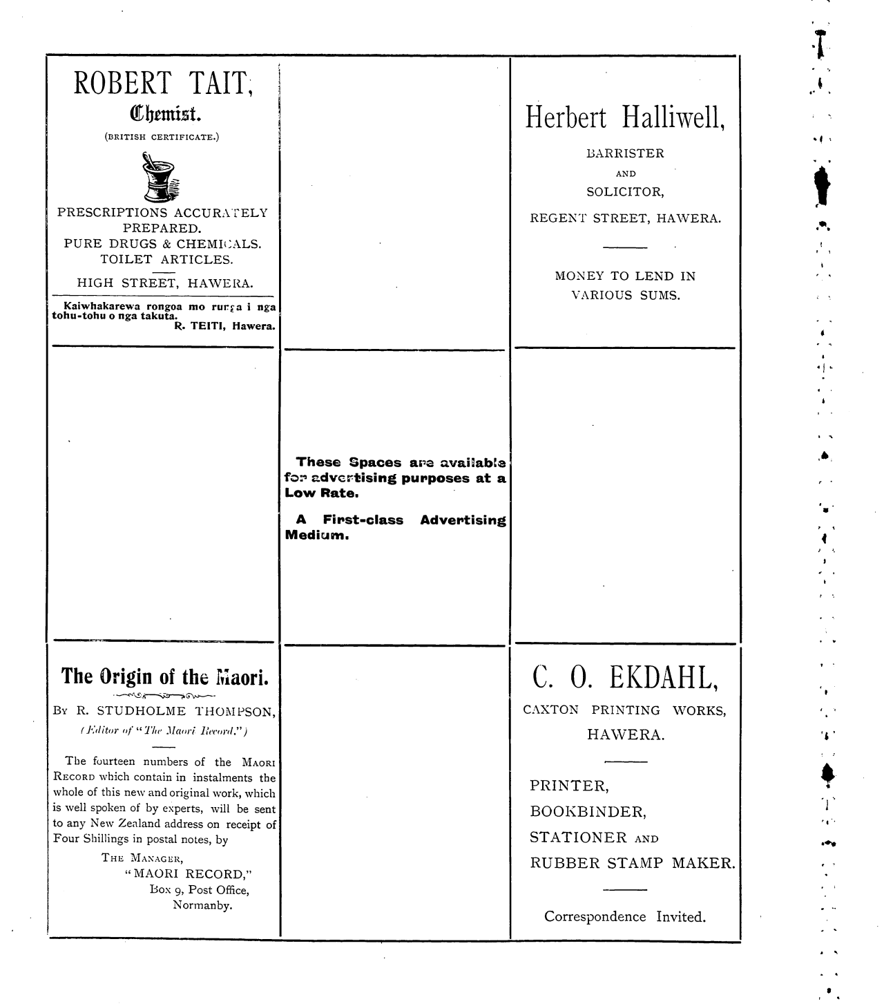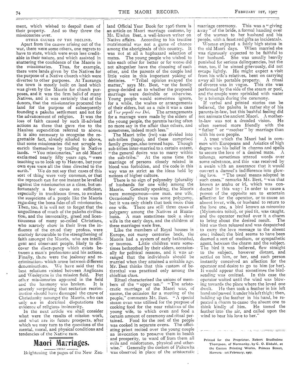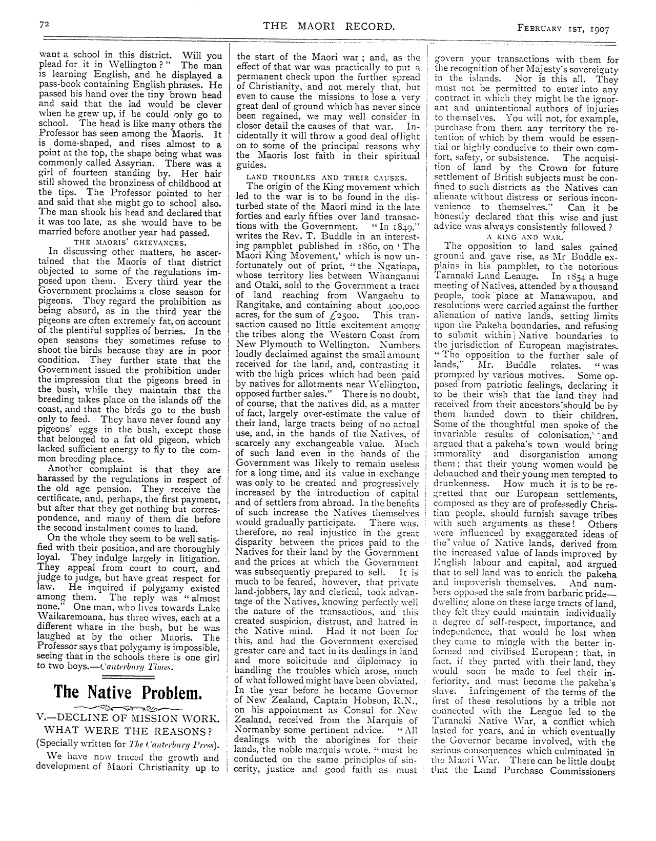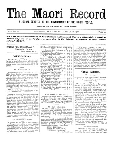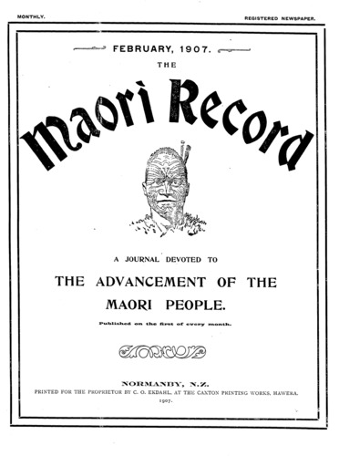 The Maori Record 1905-1907: Volume 2, Number 20. 01 February 1907 |