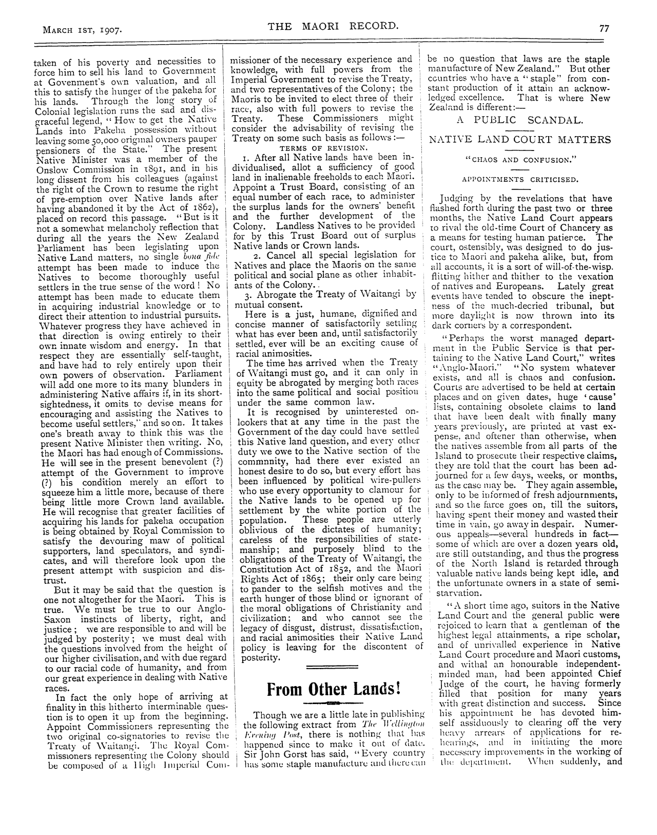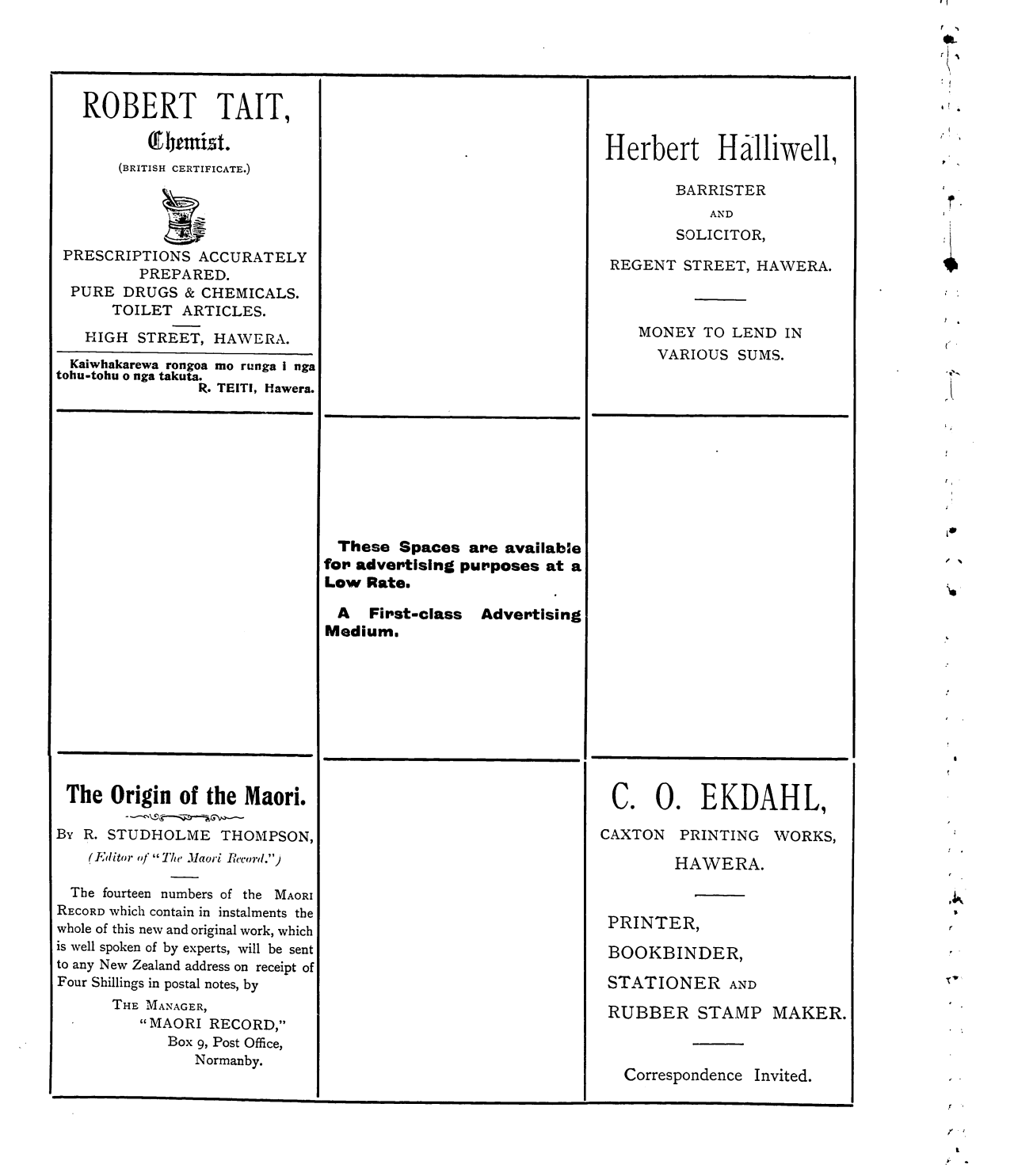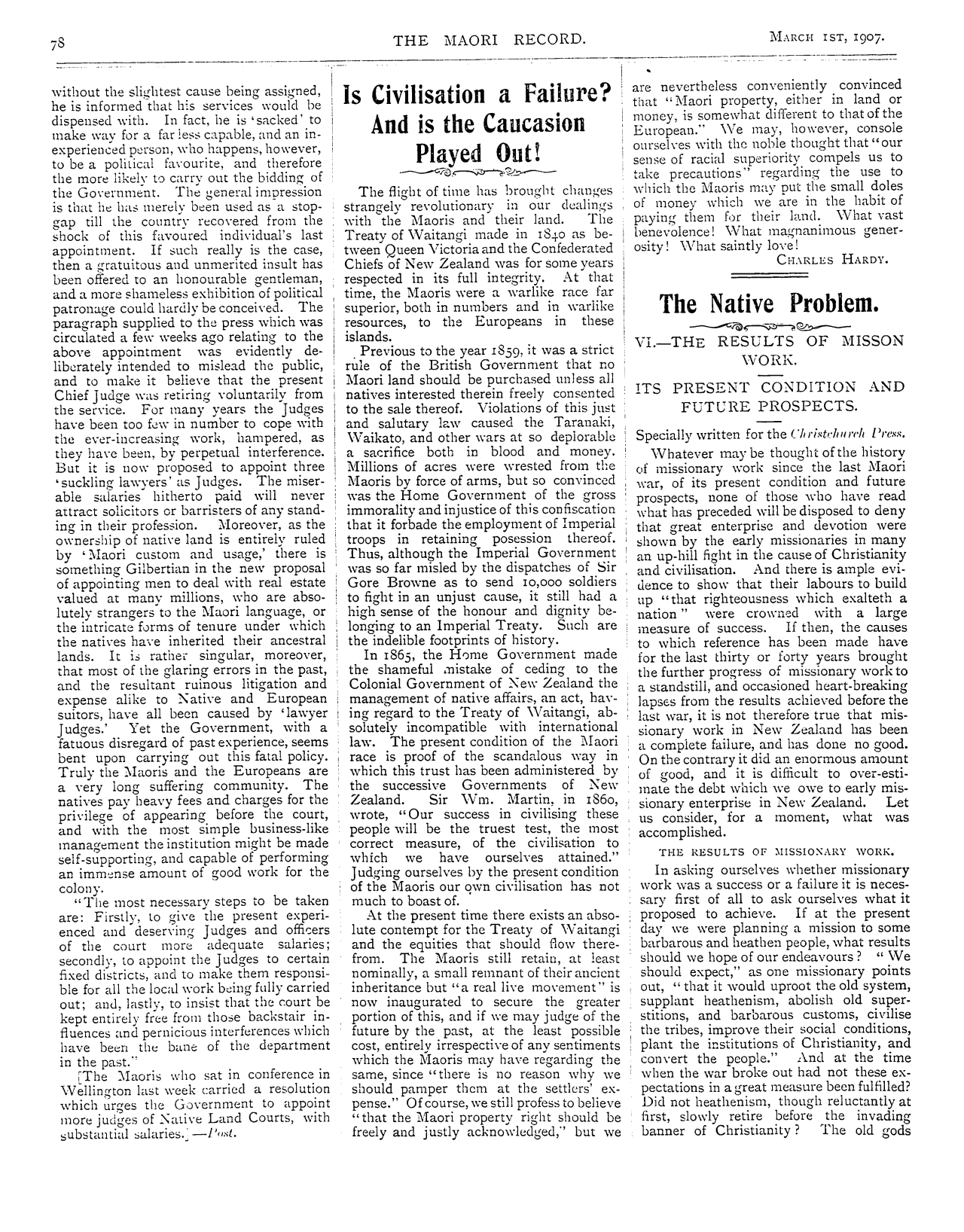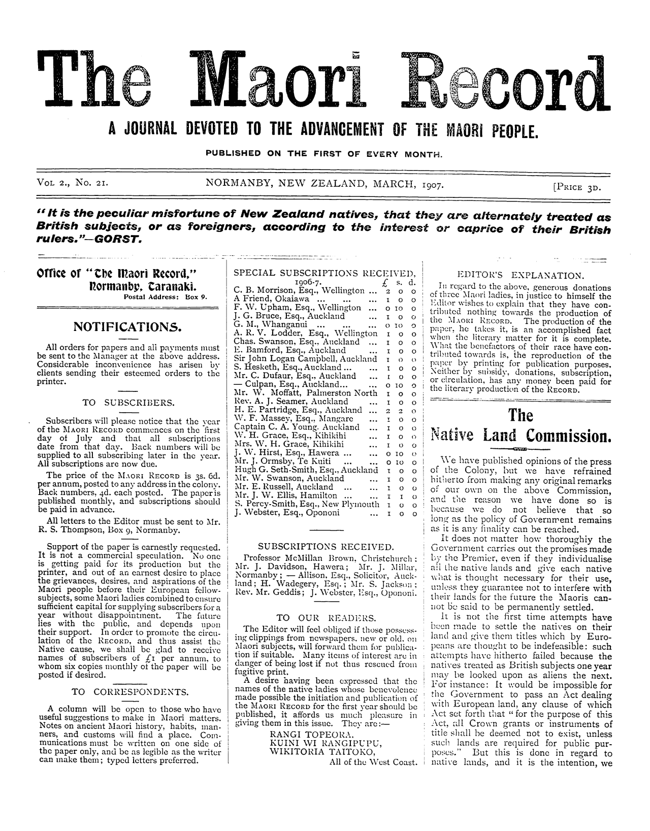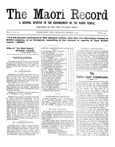 The Maori Record 1905-1907: Volume 2, Number 21. 01 March 1907 |