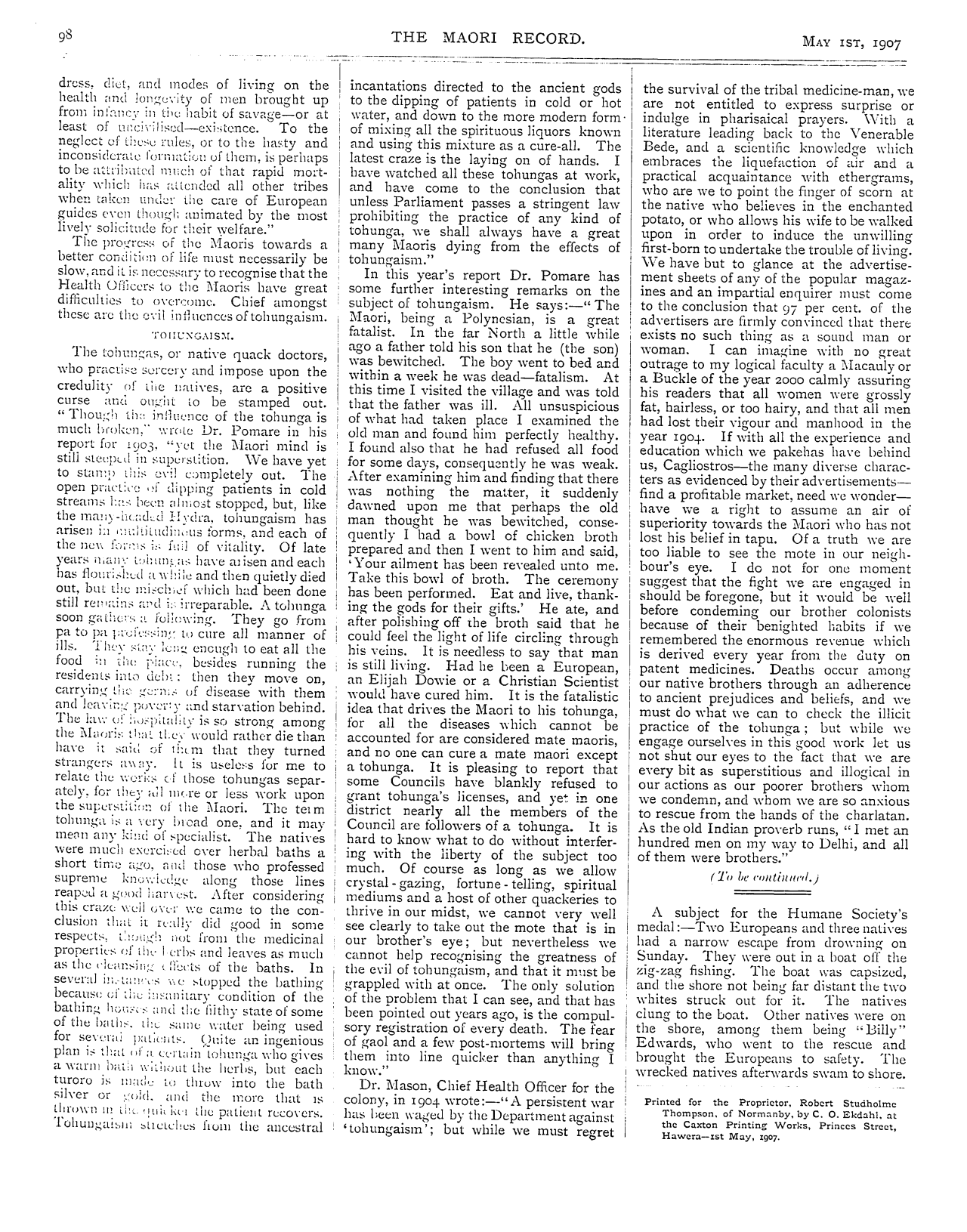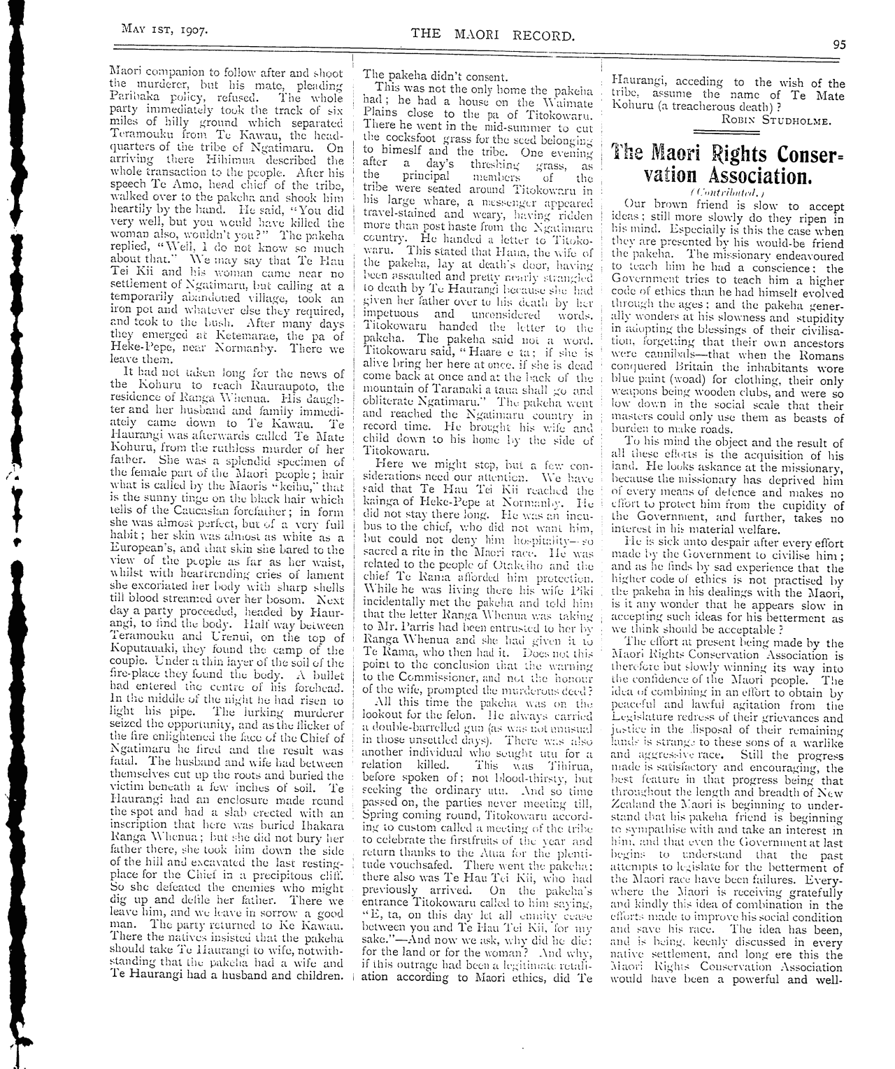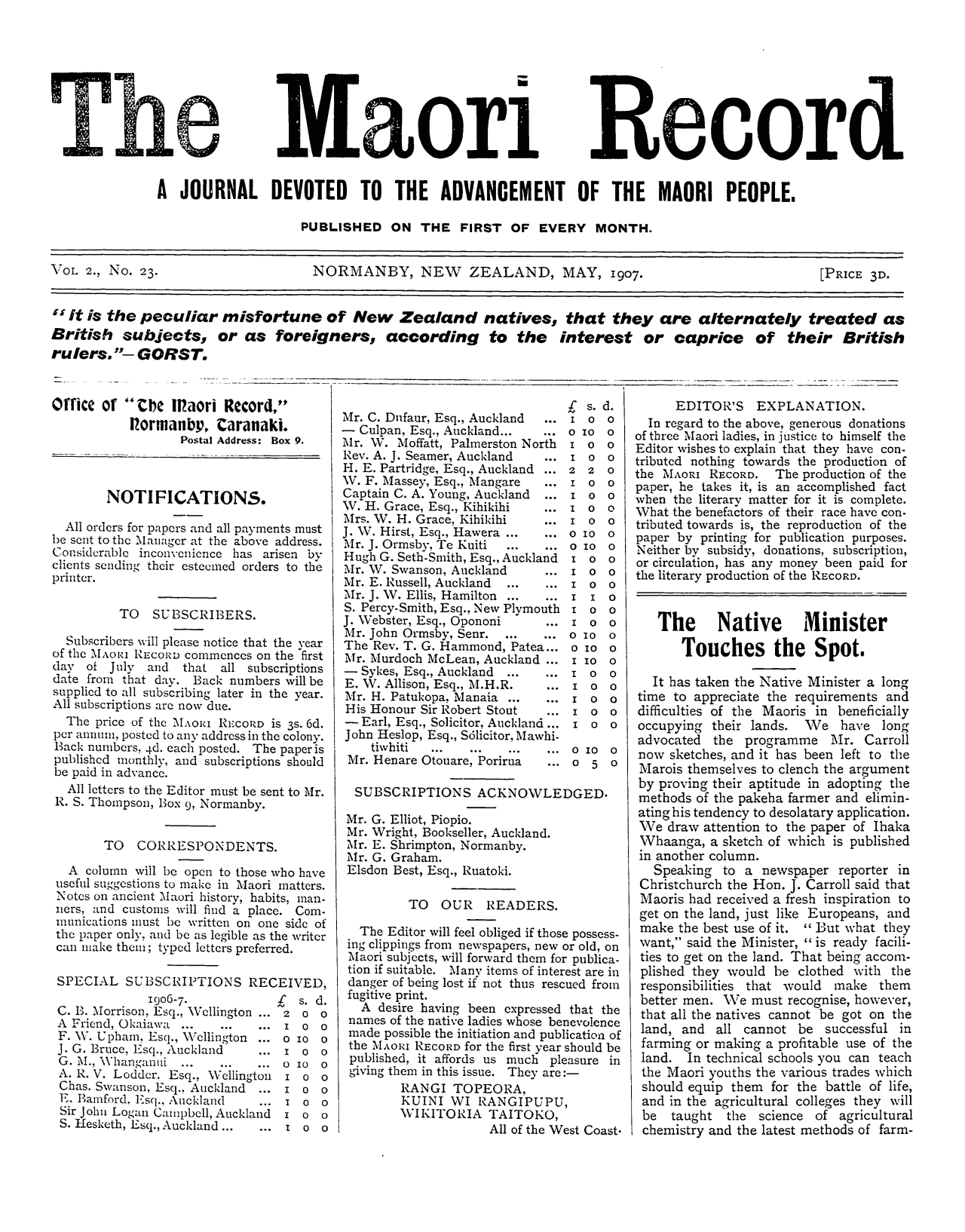 The Maori Record 1905-1907: Volume 2, Number 23. 01 May 1907 |
