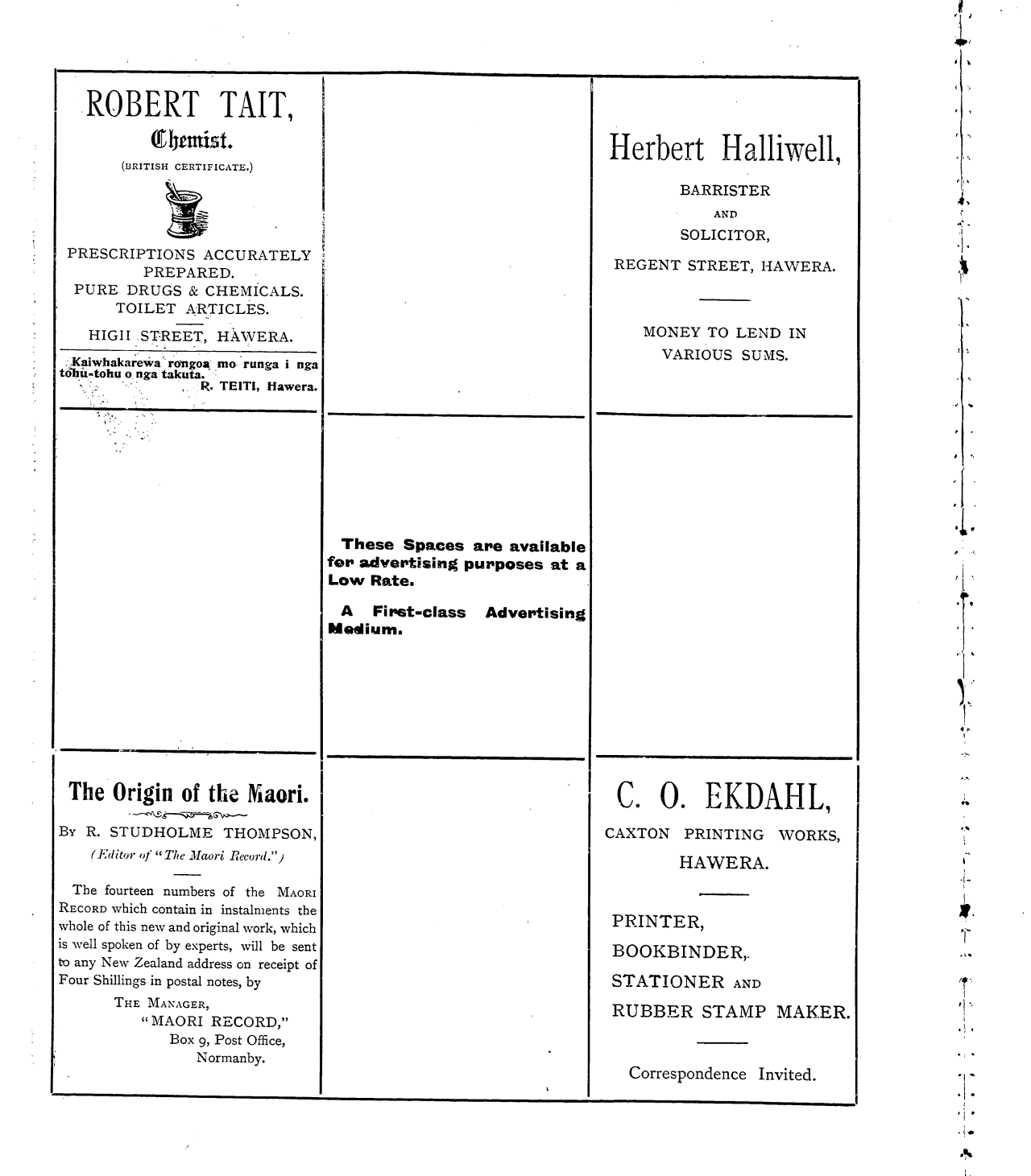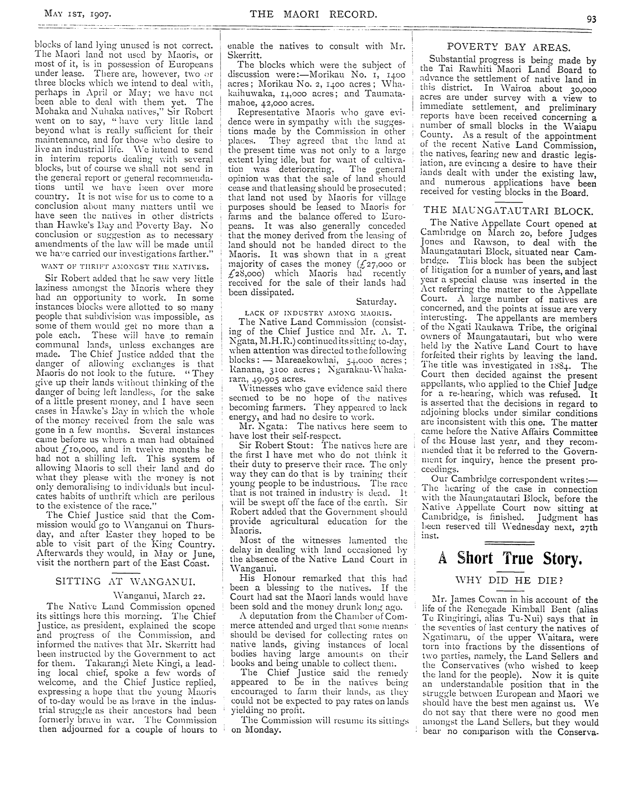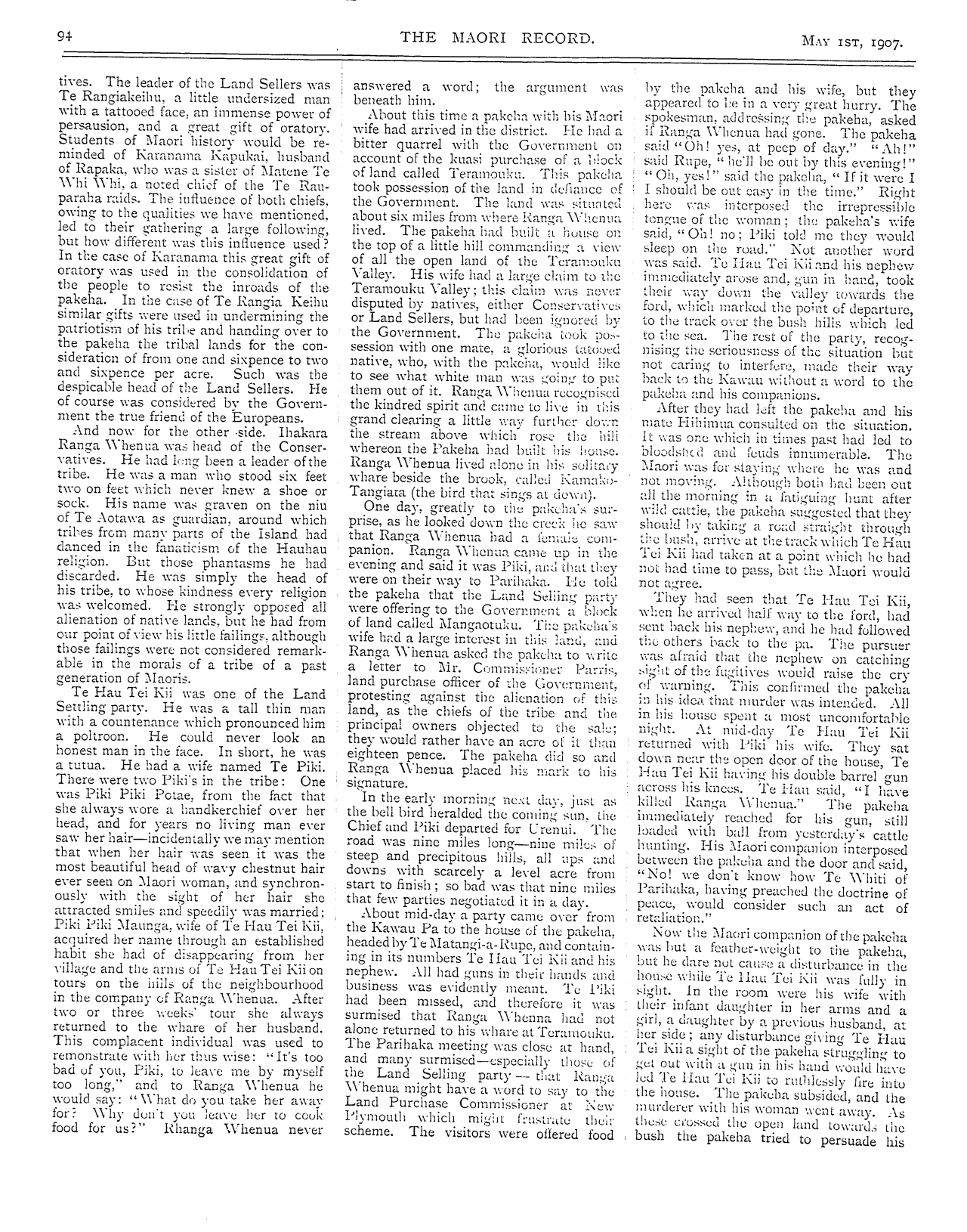 The Maori Record 1905-1907: Volume 2, Number 23. 01 May 1907 |